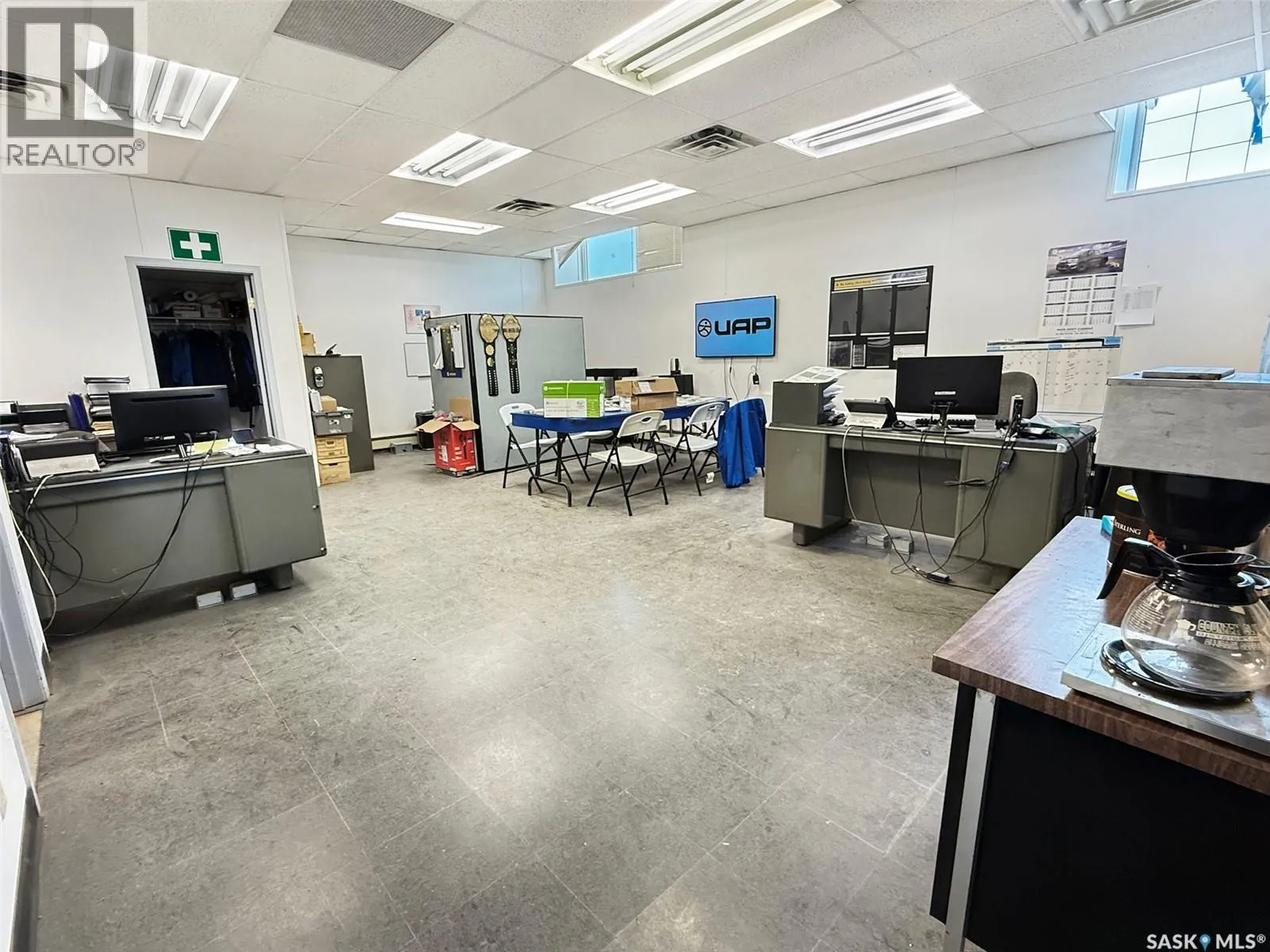 Explore the possibilities at this prestigious building in the heart of downtown. Centrally situated, this property boasts excellent visibility, prominent frontage, and exceptional advertising potential along this bustling street. The curb appeal is remarkable, featuring a newly renovated exterior façade that exudes top-notch professionalism. This space is ideal for both investors and entrepreneurs. The property includes an outstanding long-term lease with a national company on the first level, leasing 13,500 square feet, while offering an additional 5,700 square feet of potential on the upper level. The main floor storefront area is cleverly designed for retail, featuring a spacious showroom with an upscale corner till and a substantial amount of storage behind, including a mezzanine area. Down the hall, you will find 1,160 square feet of office space, currently accommodating two private offices, a two-piece staff washroom, and ample open space, which can be utilized for a staff room or additional offices. The second story is partially utilized, with one office space currently rented out and five apartment suites (three one-bedroom and two bachelor suites) that are currently not in use, yet present an excellent opportunity to address the city's ongoing rental inventory shortage. The shop at the rear, added in the late 1980s, spans 8,100 square feet (90x90) and is currently used as a warehouse by the tenant. This steel frame building features a secure steel exterior and includes two overhead doors measuring 11x14 and 11.6x12, providing abundant storage space, a two-piece washroom, a loading dock at the back, and access to the main building. The basement is suitable for storage and houses two boilers for heating, with a hot water tank replaced in 2019. The building is equipped with two central air conditioning units, the roof was spray-foamed in 2017, and some windows have been replaced. For additional information or to schedule a viewing, please contact today. (id:27476)