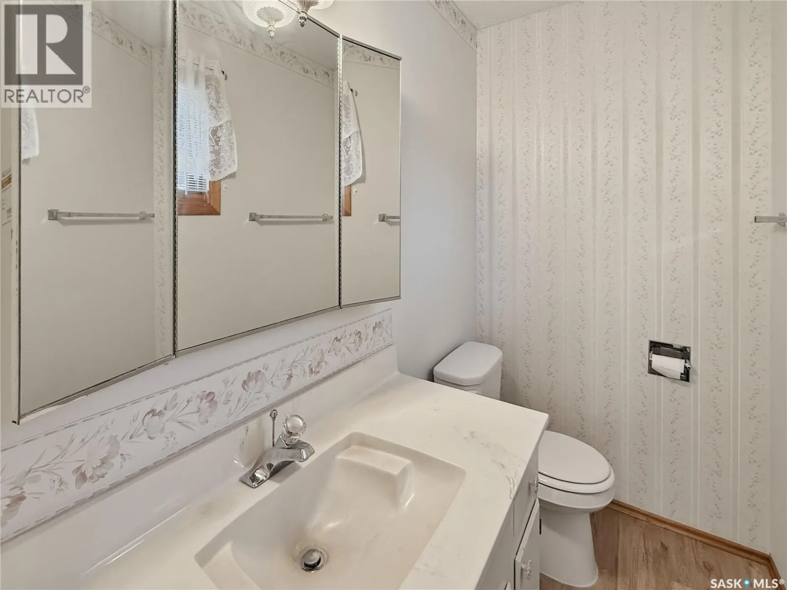 Enjoy beautiful city views from the front window of this well-maintained reverse walkout home, ideally located on a quiet cul-de-sac just steps from a K-8 school, the S3 Arenas, parks, and the outdoor pool. Set on an oversized pie-shaped lot with mature trees, the fully fenced yard offers space for additional parking, RV storage, or garden areas. The east fence has been recently replaced, and plum trees in both the front and back add charm to the yard. A deck off the dining room as well as a lower ground-level deck provide great outdoor spaces for relaxing or entertaining. The ground level welcomes you through the front foyer with access to the attached garage. The impressive 13 à 29 garage runs the full length of the home, offering built-in storage and ample room to protect your vehicle from the elements. This level also features a spacious family room, 2-pc bathroom with room to add a tub or shower, and an office area that could easily convert to a bedroom with doors added from the adjacent storage room. A large storage/utility room completes this level and includes the energy-efficient furnace with electric air cleaner. The upper level offers a generous living room filled with natural light and lovely city views. The dining area sits adjacent and features garden doors leading to the backyard and upper deck. The kitchen includes updated white/stainless steel appliances and some newer lighting. Down the hall are 3 bedrooms, including the spacious primary bedroom with an oversized window and its own 2-pc ensuite, along with a 4-pc main bathroom. Additional features include central A/C, underground sprinklers, 2 wood-burning fireplaces, mostly PVC windows, shingles approx. 8-10 yrs old, upper deck redone approx. 6 yrs ago, hot water heater approx. 6 yrs old, and reverse osmosis installed within the past couple of years. Contact your REALTOR® today for more information or to schedule a viewing. (id:27476)