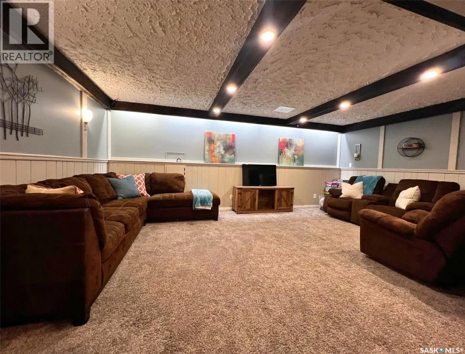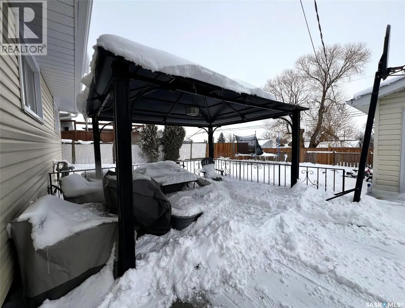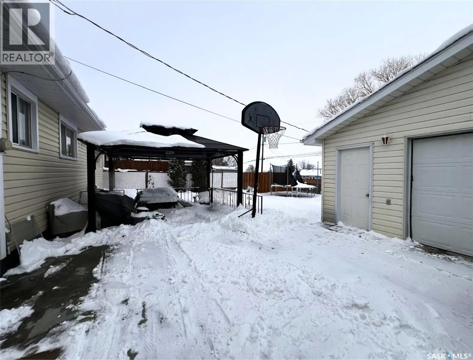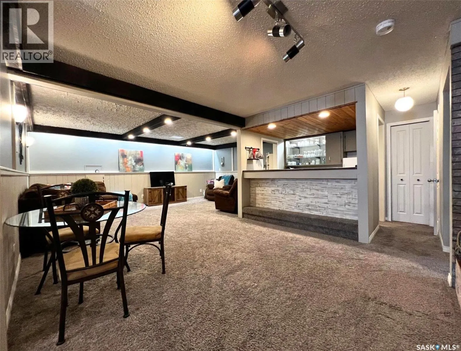 Located in a highly-desirable northeast neighbourhood, this home rests in a circular flow & faces a lovely open area with mature trees & grassy open space. In front, the yard is low maintenance with decorative rock & juniper clusters, while the driveway stretches behind the house to the garage. The exterior of the home is in great condition with a fenced yard, a gazebo on a concrete patio, & the covered front deck presents a warm welcome. The tidy front entry hosts a coat closet ahead, while to your left, the living room is very inviting with airy, vaulted ceilings featuring dark beams, there is a bright PVC picture window, & a beautiful feature of this space is the statement electric fireplace framed by stone surround. The cheerful dining room hosts a window & a peekaboo to the hallway, providing a feeling of openness. This area connects seamlessly through to the bright kitchen with ample white cabinetry, stainless steel appliances, a pantry, & an island with a double-end overhang for barheight seating with pendant lights above. Behind here is both the back entry & the convenient main-floor, practical laundry room with storage. Down the hallway there is a 4-piece bathroom, 2 comfortable sized bedrooms side-by-side, & across from these sits the spacious primary bedroom with twin closets & a private 3-piece ensuite. The full basement is well suited for entertaining, a kids zone, & more. At the base of the stairs you are greeted by an elegant paneled wall along an open area which leads to a wet bar, an attractive brick gas fireplace, & a secondary living room which would make a great TV zone. Also nearby there is a tastefully updated 3-piece bath which features ceramic tile floors, a tiled shower & backsplash, another spacious bedroom with 2 windows & a closet, there is a bonus room with a barn door for a guest bed or other, & there are storage options in several locations. As per the Sellerâs direction, all offers will be presented on 03/19/2026 6:00PM. (id:27476)