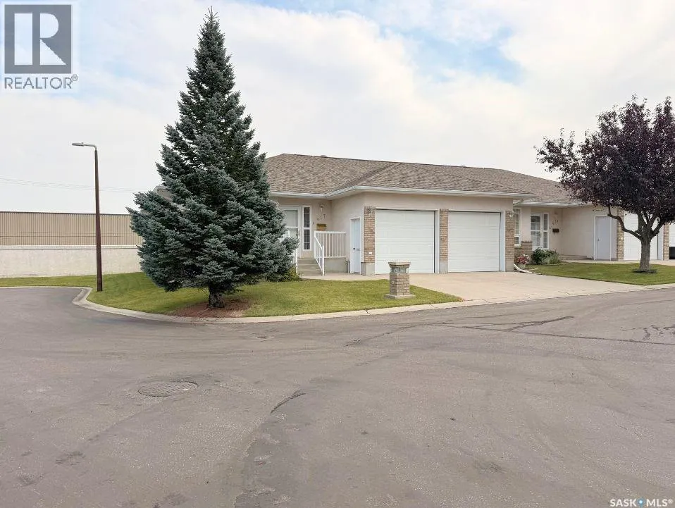 Bungalow-style condos with a double attached garage in Pioneer Estates, a gated community in the sought-after Trail subdivision, rarely come to marketâmaking this one a must see. Welcome to #417 â 165 Robert Street W, a well maintained end-unit bungalow condo offering privacy, space, and convenience. Tucked at the quiet end of the development, this location enjoys minimal traffic, nearby visitor parking, and easy access to the community clubhouse. A nearby pathway connects to the Chinook Pathway, and Wheatland Mall is just steps away. Inside, a spacious foyer welcomes you into a bright, open-concept main floor. The living room is filled with natural light from a large west-facing window, creating a warm and inviting space to relax or entertain. The kitchen features abundant oak cabinetry, generous counter space, and a pantry, flowing seamlessly into the dining area. Just beyond, an east-facing sunroom offers the perfect spot to enjoy your morning coffee or unwind in the evening. The main floor also includes a convenient laundry room, a second bedroom, a 4-piece bathroom, and a comfortable primary suite complete with a walk-in closet and private 3-piece ensuite. The fully developed basement expands the living space with a large recreation room, two storage areas, a spacious bedroom with its own 3-piece ensuite and walk-in closet, plus a versatile den ideal for guests, hobbies, or a home office. Shingles were replaced in 2019. Condo living here is easy with a $300/month fee covering lawn care, snow removal, exterior maintenance and insurance, and garbage pickup. Opportunities like thisâbungalow style, double attached garage, and a desirable location in Pioneer Estatesâdo not come along often. (id:27476)