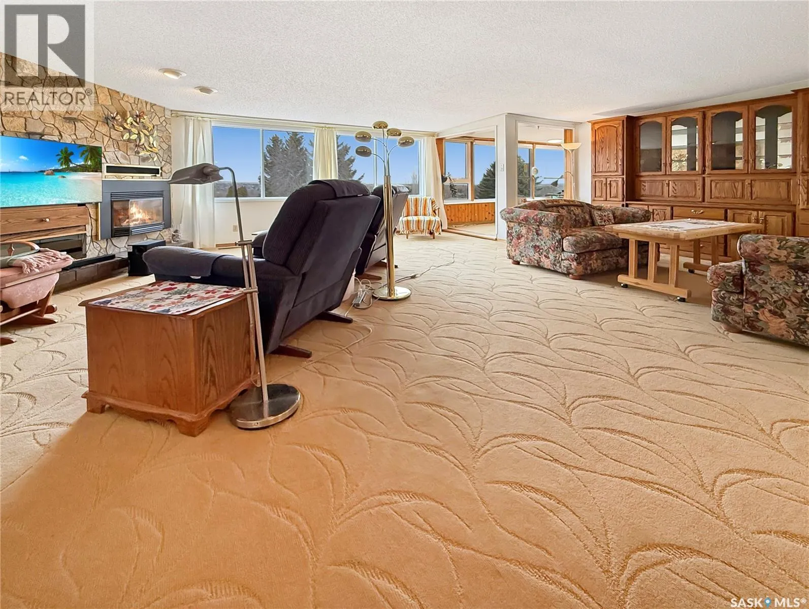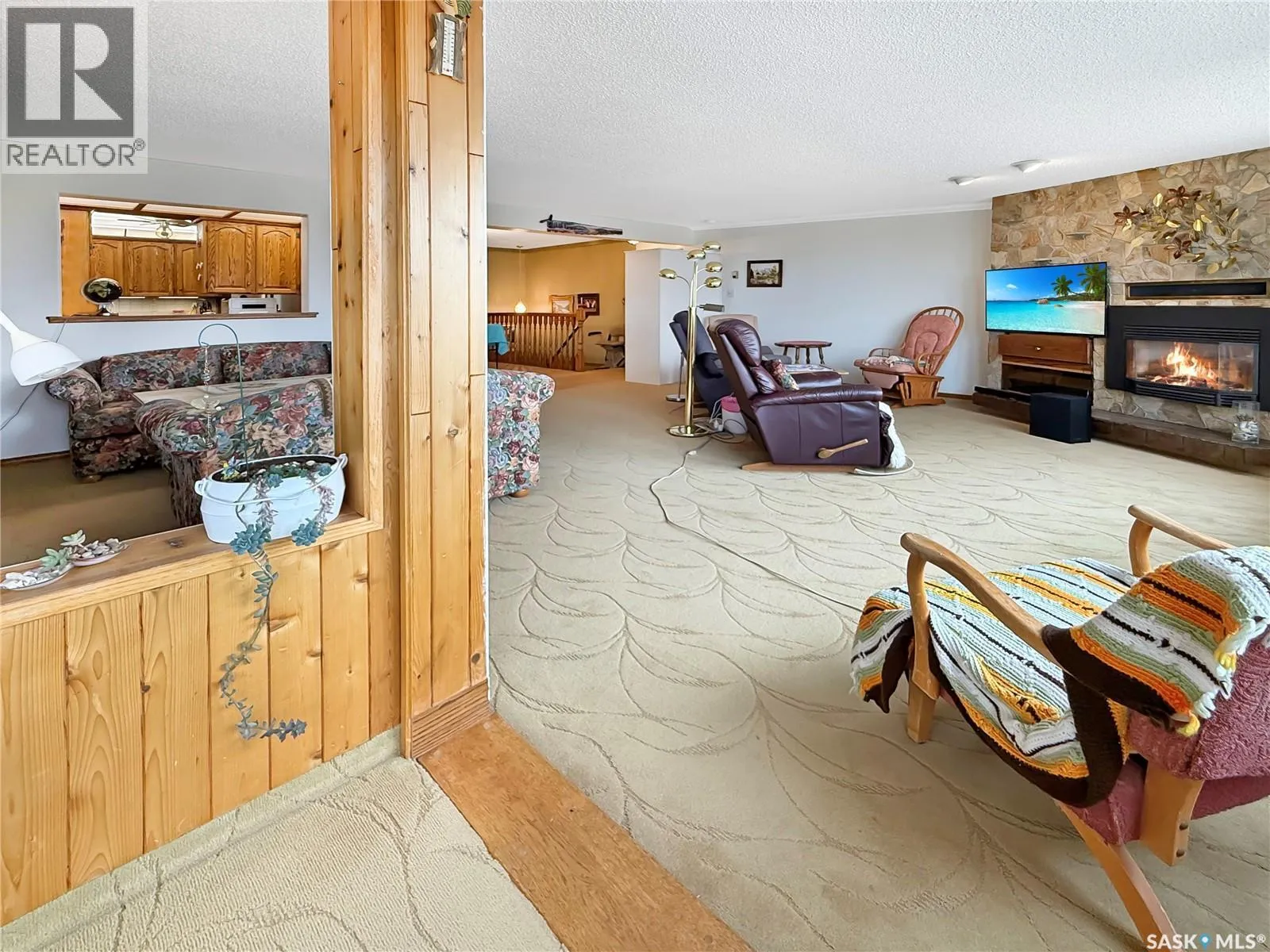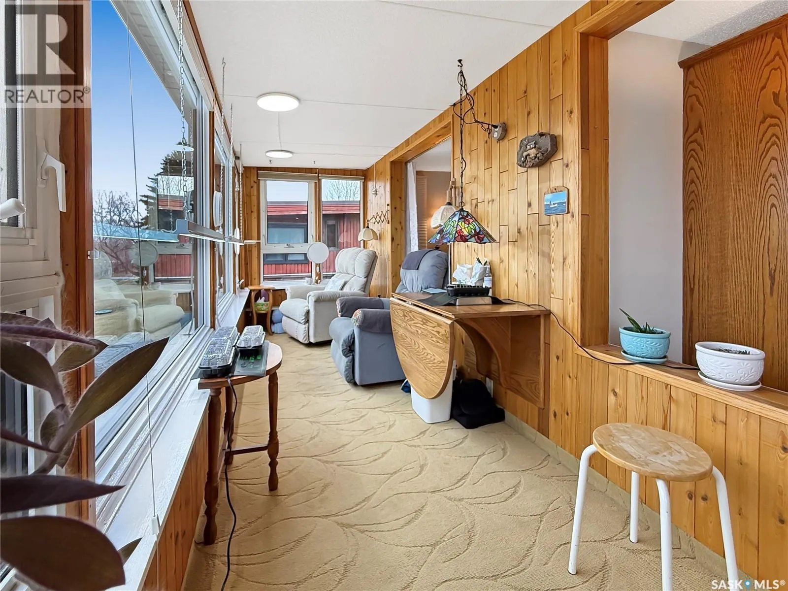 Experience easy, low-maintenance living in this bright and welcoming condo in Alpine Village, ideally located on the south edge of the city with walking paths and green space right outside your door. Positioned to capture excellent natural light and an open view of the city skyline. The main level features a comfortable, open-concept living and dining area that flows beautifully into a sunroomâan inviting spot for morning coffee, plants, or a quiet read. The oak kitchen is both functional and timeless with an island cooktop, raising hood fan, porcelain tile backsplash, a butler sweep tied into the central vac system and a layout designed for everyday living and entertaining. The primary suite is a relaxing retreat with a walk-through closet and ensuite, including in-suite laundry (renovated in 2025). A second bathroom on the main floor adds convenience for guests. Downstairs, the spacious family room offers flexibility to suit your needs, complete with a built-in Murphy bedâideal for overnight company. Youâll also find a full bathroom, a bonus room, and direct access to the attached double garage, making day-to-day life simple and efficient. With a separate lower-level entrance, thereâs great potential for extended family, guests, or a private work-from-home setup. Notable updates include A/C (2022), dishwasher (2022), HEPA filtration integrated into the furnace, Central vac, updated windows, and an energy-efficient design. Residents also enjoy excellent shared amenities including a pool, hot tub, sauna, and amenities room, along with lawn care and snow removalâso you can spend more time enjoying the lifestyle and less time on maintenance. (id:27476)