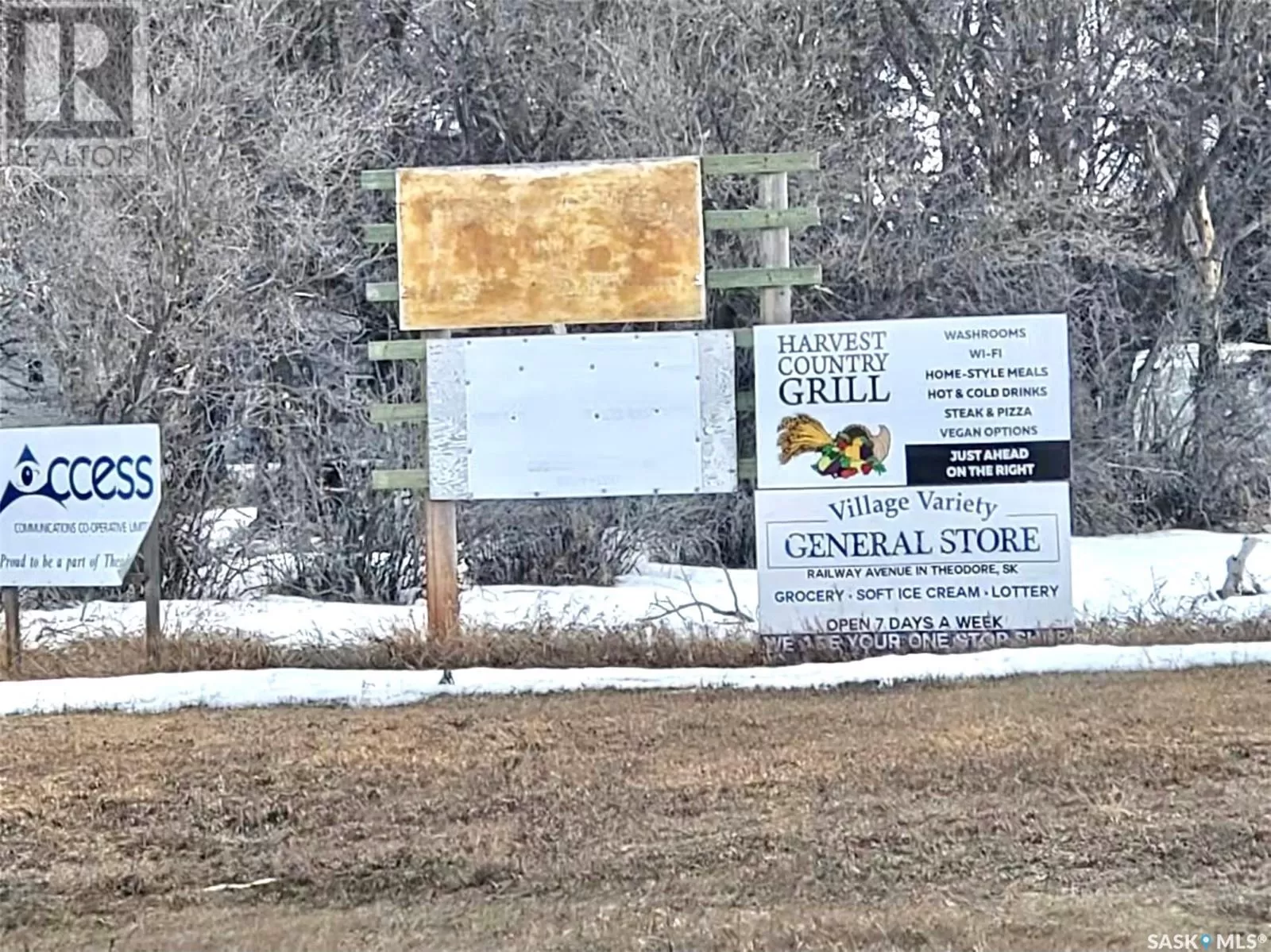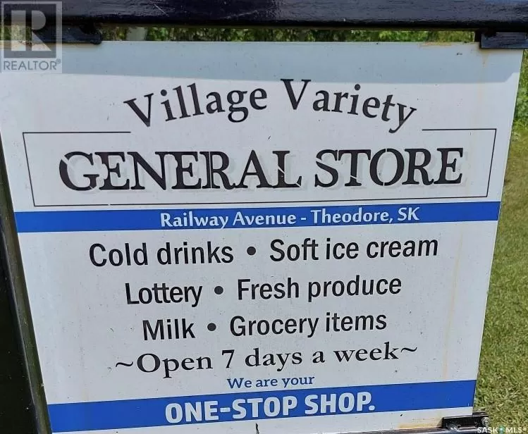 The great business opportunity in Theodore, SK! The store located by Highway 16. This great exposure brings many truckers, travelers, and commuters past the business daily. Billboards for Highway and Whitesand Reginal Park . There are two church camps within twelve miles. Theodore Dam is about six miles away. White Sands Regional Park is about seven miles away which provides seasonal camping, golf, boating, and fishing.IT IS THE ONLY GROCERY STORE IN TOWN. The store sells lottery tickets, cigarettes, reverse osmosis water, soft serve ice cream, greeting cards, and a wide variety of confectionery and grocery items. 3 DISPLAY FREEZERS REPLACED WITHIN ONE YEAR. Previous updates including cooler displays, doors, window, custom blinds on the front window, heavy duty security bars on the window, and etc. local coffee time at the back. The business includes land, building, equipment, fixtures, trade name, and goodwill. (id:27476)