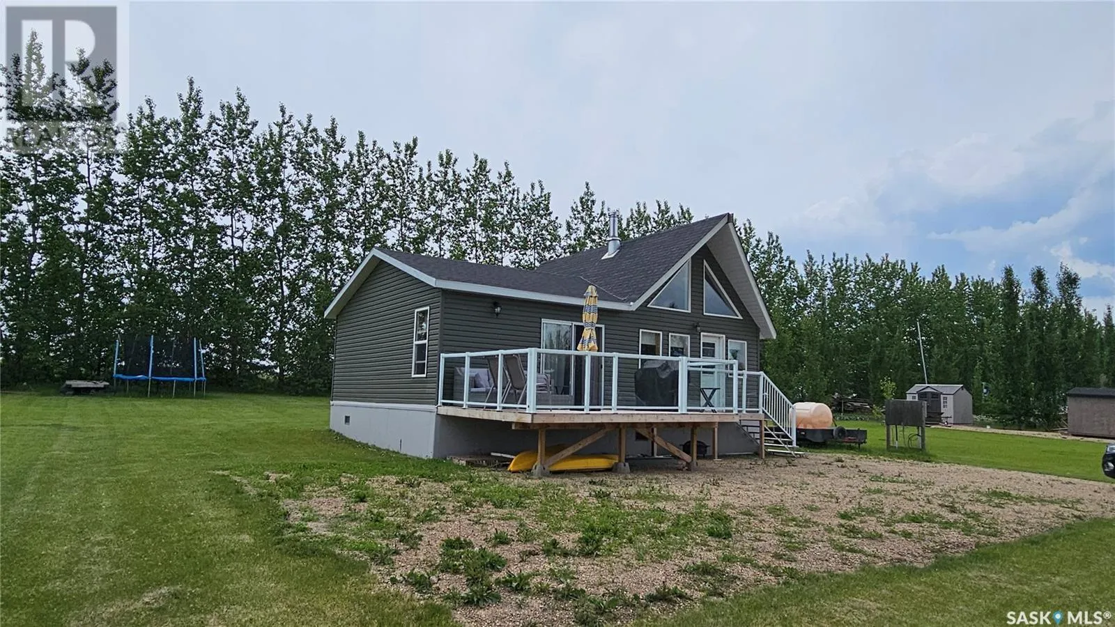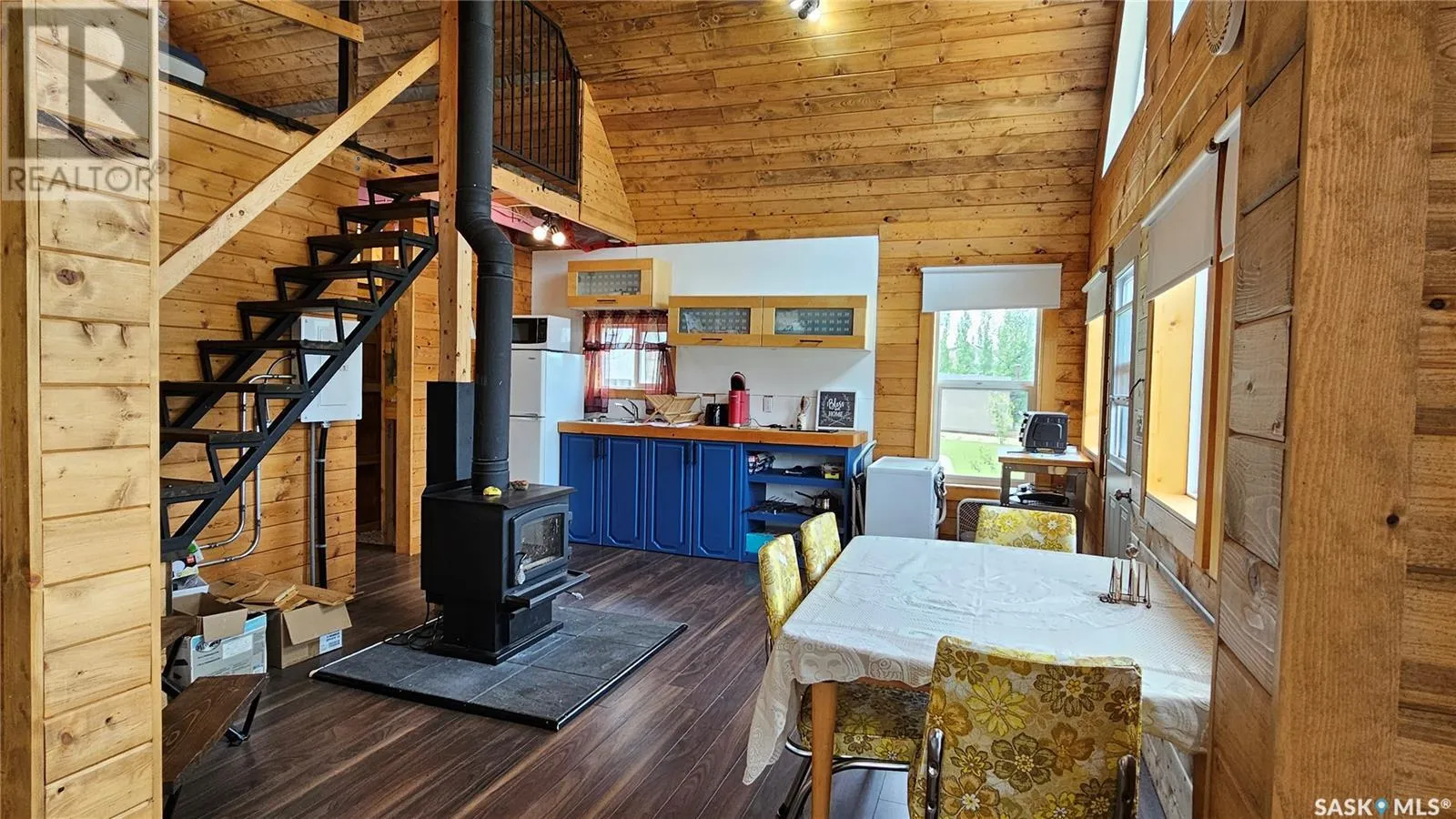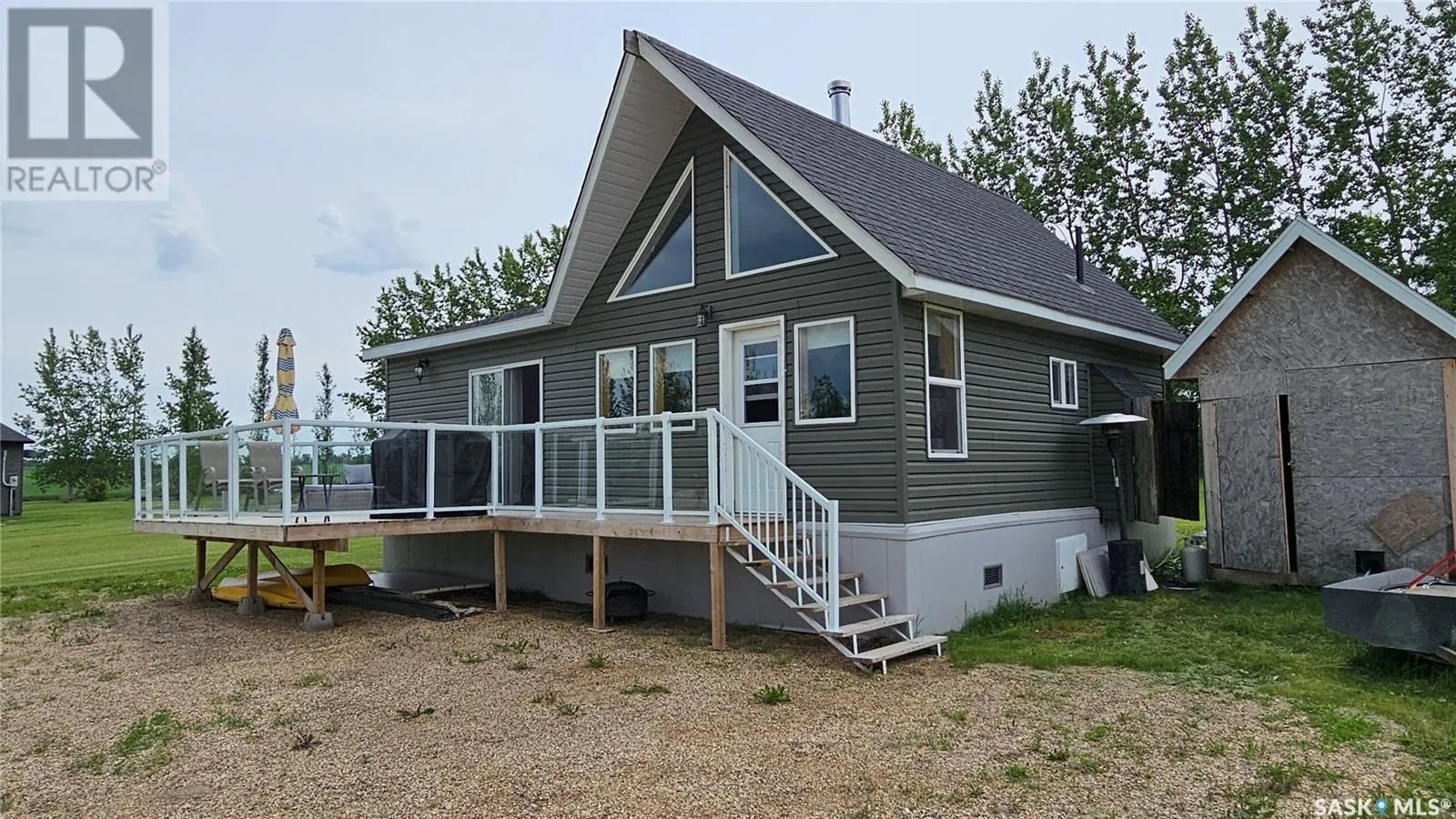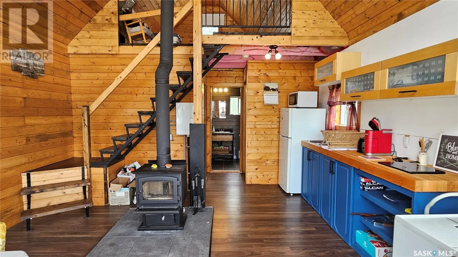 The Haven Welcome to this 768 sq. ft. three-season cabin located in the tranquil community of The Haven at Lake Lenore. This owned, oversized second-row lot offers plenty of space and privacy, making it an ideal retreat. The cabin features 3 bedrooms, a full 4-piece bathroom, and a loft with two additional single bedsâperfect for guests or a childrenâs hideaway. The updated kitchen includes butcher block countertops and an induction hot plate, while the wood-burning stove adds rustic charm. Enjoy outdoor living with an expansive deck overlooking the lake, a 16-foot floating dock, trampoline, and large lawn area for recreation. The property includes two sheds (one with a water tank), a tractor mower, and a trailer with an additional water tank for hauling. Water is hauled from the village of Lake Lenore, just 6 miles away. Recent upgrades include a new on-demand electric water heater, 1,500-gallon septic tank, and 200-amp electrical service with camper plugs (100-amp service to the cabin). Much of the furniture and extras may be included, providing a turnkey opportunity. Lake Lenore is renowned for excellent summer fishing, ice fishing, water sports, and year-round outdoor recreation. With a nearby boat launch, access to amenities just 10 minutes away in the village of Lake Lenore, and only 25 minutes to Humboldt, convenience and leisure come together seamlessly. Seller is motivated, and quick possession is availableâstart making memories at The Haven today! (id:27476)