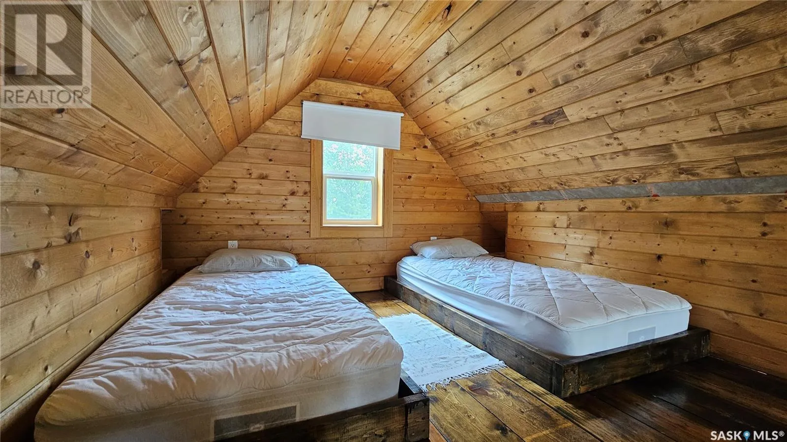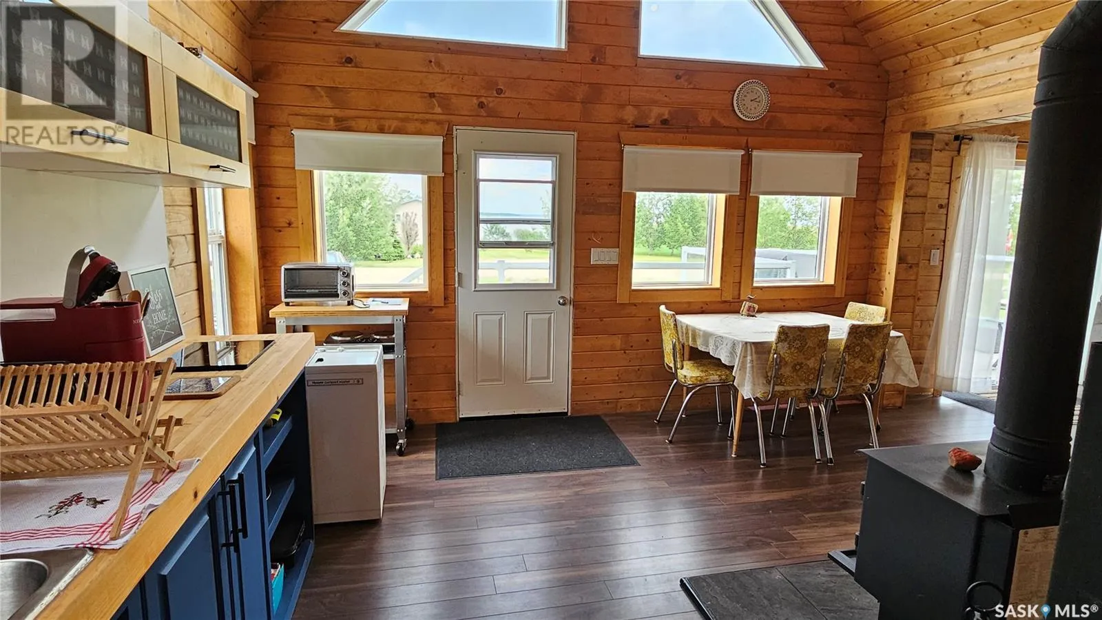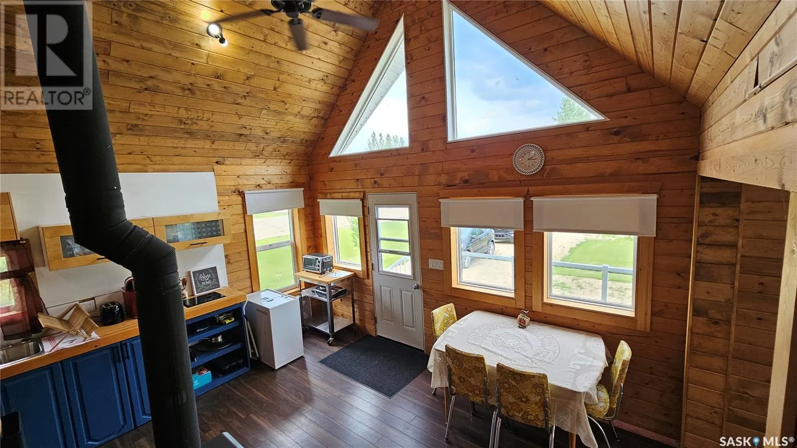 The Haven Welcome to this 768 sq. ft. three-season cabin located in the tranquil community of The Haven at Lake Lenore. This owned, oversized second-row lot offers plenty of space and privacy, making it an ideal retreat. The cabin features 3 bedrooms, a full 4-piece bathroom, and a loft with two additional single bedsâperfect for guests or a childrenâs hideaway. The updated kitchen includes butcher block countertops and an induction hot plate, while the wood-burning stove adds rustic charm. Enjoy outdoor living with an expansive deck overlooking the lake, a 16-foot floating dock, trampoline, and large lawn area for recreation. The property includes two sheds (one with a water tank), a tractor mower, and a trailer with an additional water tank for hauling. Water is hauled from the village of Lake Lenore, just 6 miles away. Recent upgrades include a new on-demand electric water heater, 1,500-gallon septic tank, and 200-amp electrical service with camper plugs (100-amp service to the cabin). Much of the furniture and extras may be included, providing a turnkey opportunity. Lake Lenore is renowned for excellent summer fishing, ice fishing, water sports, and year-round outdoor recreation. With a nearby boat launch, access to amenities just 10 minutes away in the village of Lake Lenore, and only 25 minutes to Humboldt, convenience and leisure come together seamlessly. Seller is motivated, and quick possession is availableâstart making memories at The Haven today! (id:27476)