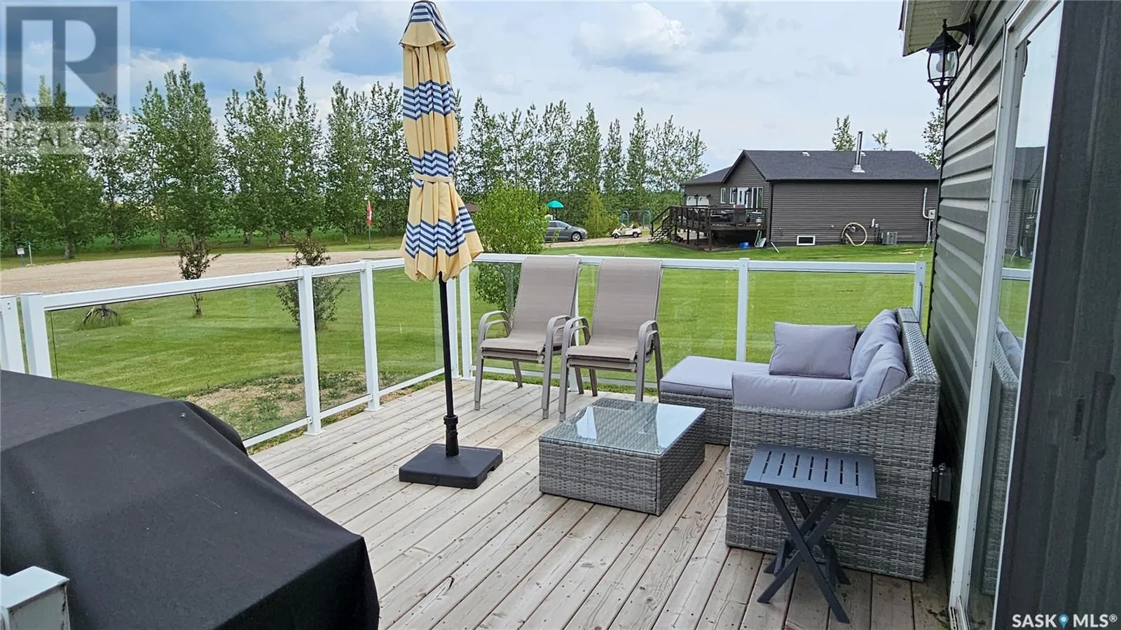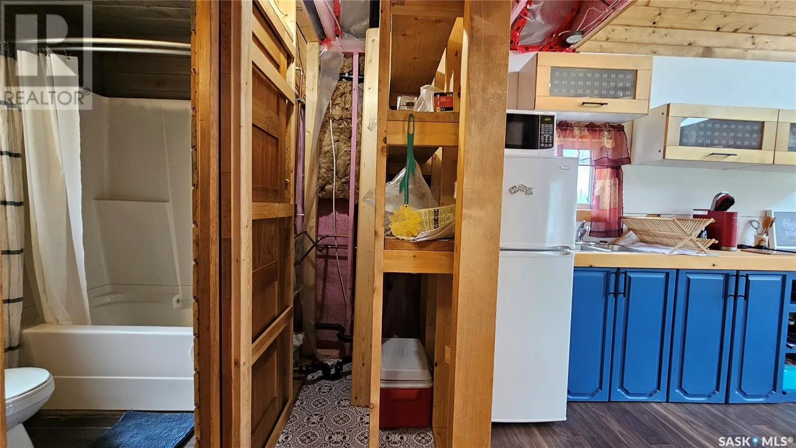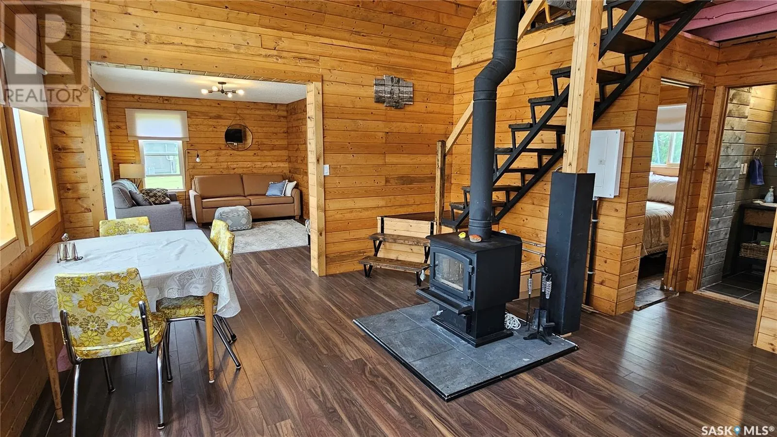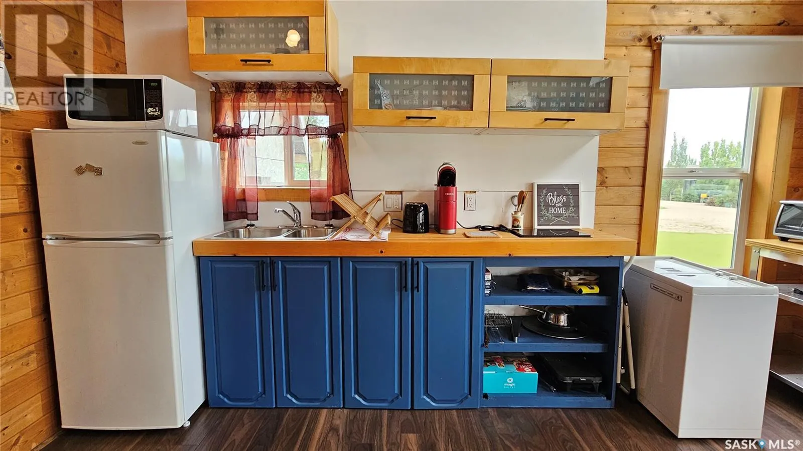 The Haven Welcome to this 768 sq. ft. three-season cabin located in the tranquil community of The Haven at Lake Lenore. This owned, oversized second-row lot offers plenty of space and privacy, making it an ideal retreat. The cabin features 3 bedrooms, a full 4-piece bathroom, and a loft with two additional single bedsâperfect for guests or a childrenâs hideaway. The updated kitchen includes butcher block countertops and an induction hot plate, while the wood-burning stove adds rustic charm. Enjoy outdoor living with an expansive deck overlooking the lake, a 16-foot floating dock, trampoline, and large lawn area for recreation. The property includes two sheds (one with a water tank), a tractor mower, and a trailer with an additional water tank for hauling. Water is hauled from the village of Lake Lenore, just 6 miles away. Recent upgrades include a new on-demand electric water heater, 1,500-gallon septic tank, and 200-amp electrical service with camper plugs (100-amp service to the cabin). Much of the furniture and extras may be included, providing a turnkey opportunity. Lake Lenore is renowned for excellent summer fishing, ice fishing, water sports, and year-round outdoor recreation. With a nearby boat launch, access to amenities just 10 minutes away in the village of Lake Lenore, and only 25 minutes to Humboldt, convenience and leisure come together seamlessly. Seller is motivated, and quick possession is availableâstart making memories at The Haven today! (id:27476)