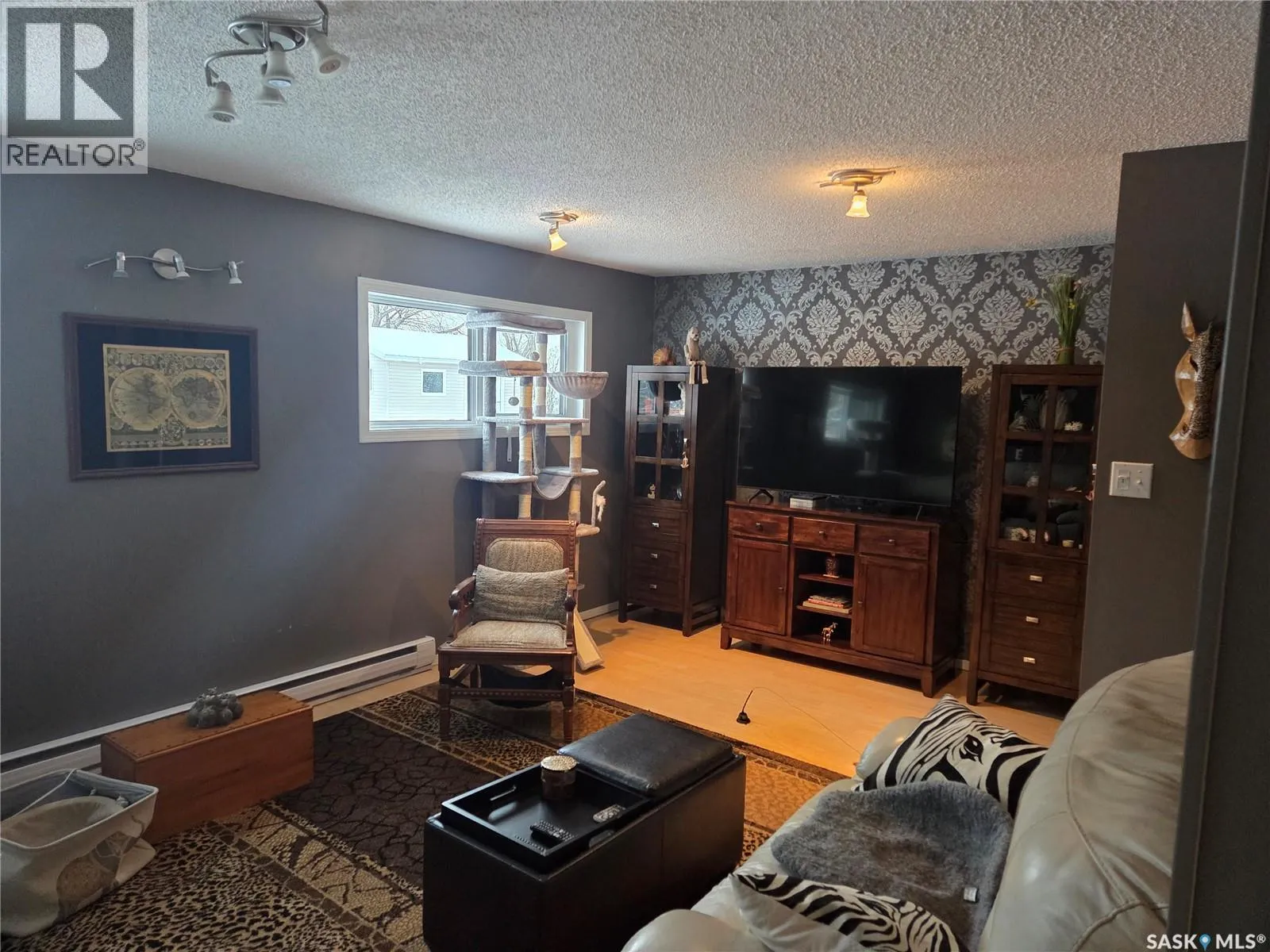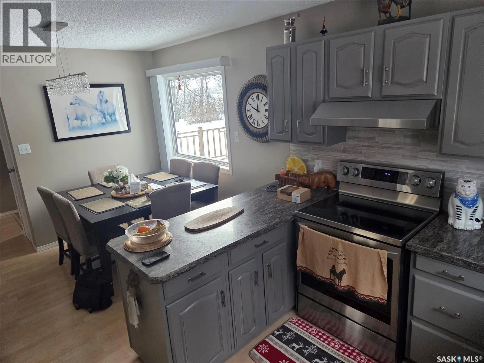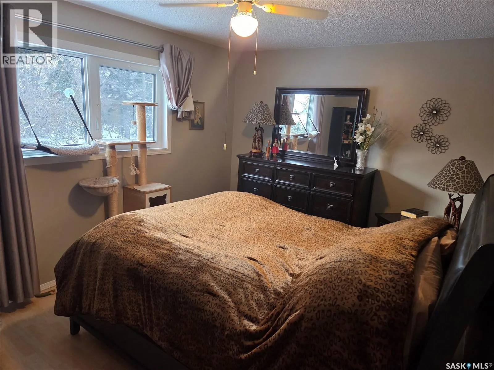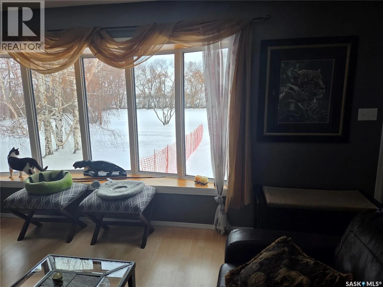 2 miles west and 3 miles north of Tisdale Welcome to the perfect acreage to fit anyone's needs. 5 bedrooms, 2 bathrooms, 3 living areas and plenty of storage on this 4 level split just a short 8kms from the heart of Tisdale. 3.72 acres enclosed with in a complete shelterbelt with a large storage shed, 20x30x12 tarp shed, garden area and tree house for the little ones. Large deck with covered gazebo off the back entrance, year round fish pond with fish along the patio entrance to garage, enclosed CATIO for the cats with separate house entrance and a 2 car 30x24 attached garage with built in cabinets and electric plug in heater. All appliance except bar fridge and basement freezer included (stove and hood fan new) as will the couches and electric fireplace in the basement, bed in first upper bedroom, lawn sweep and garden tiller. Sewer is by septic tank with pump out to south east, water is rural pipeline, 200 amp panel box. Sump pump pumps out far behind garage. Many many upgrades in the past years make this home ready to move in and live the life. (id:27476)