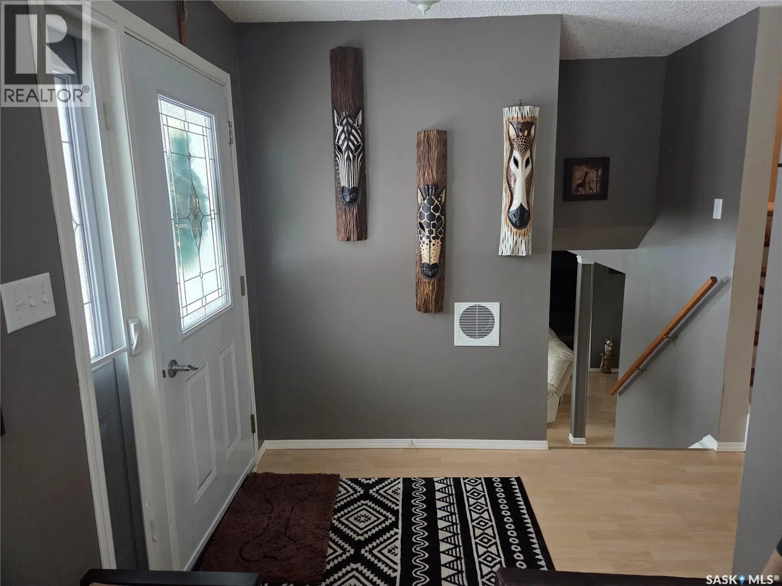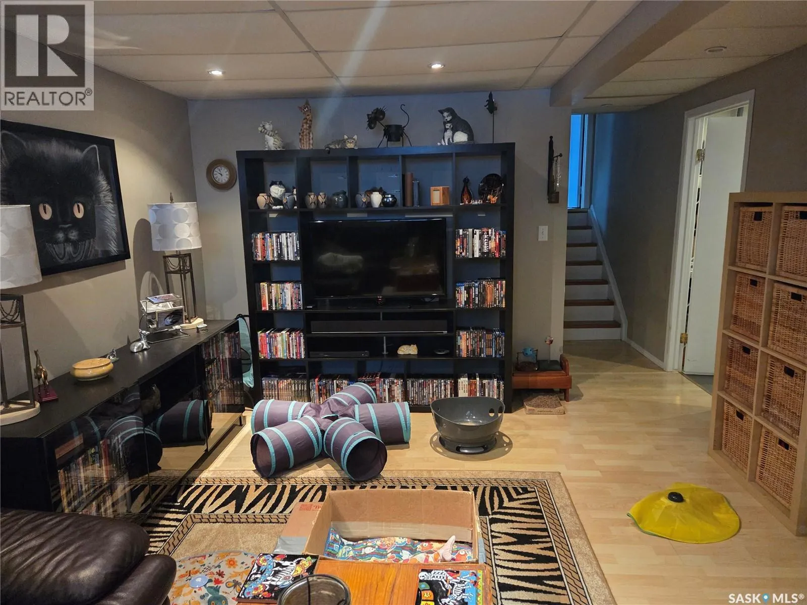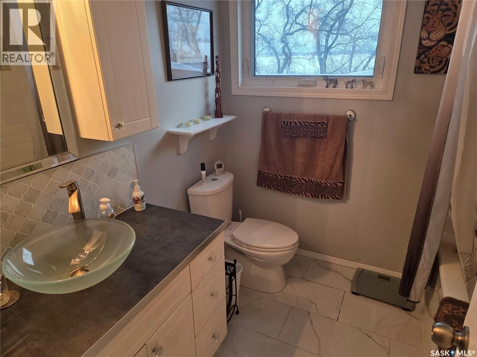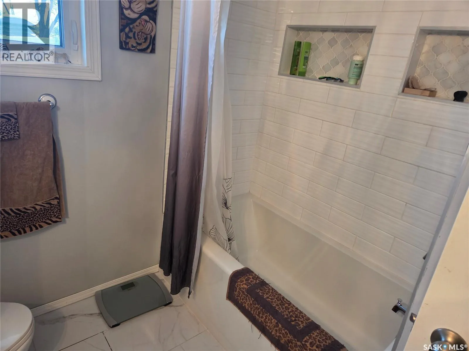 2 miles west and 3 miles north of Tisdale Welcome to the perfect acreage to fit anyone's needs. 5 bedrooms, 2 bathrooms, 3 living areas and plenty of storage on this 4 level split just a short 8kms from the heart of Tisdale. 3.72 acres enclosed with in a complete shelterbelt with a large storage shed, 20x30x12 tarp shed, garden area and tree house for the little ones. Large deck with covered gazebo off the back entrance, year round fish pond with fish along the patio entrance to garage, enclosed CATIO for the cats with separate house entrance and a 2 car 30x24 attached garage with built in cabinets and electric plug in heater. All appliance except bar fridge and basement freezer included (stove and hood fan new) as will the couches and electric fireplace in the basement, bed in first upper bedroom, lawn sweep and garden tiller. Sewer is by septic tank with pump out to south east, water is rural pipeline, 200 amp panel box. Sump pump pumps out far behind garage. Many many upgrades in the past years make this home ready to move in and live the life. (id:27476)