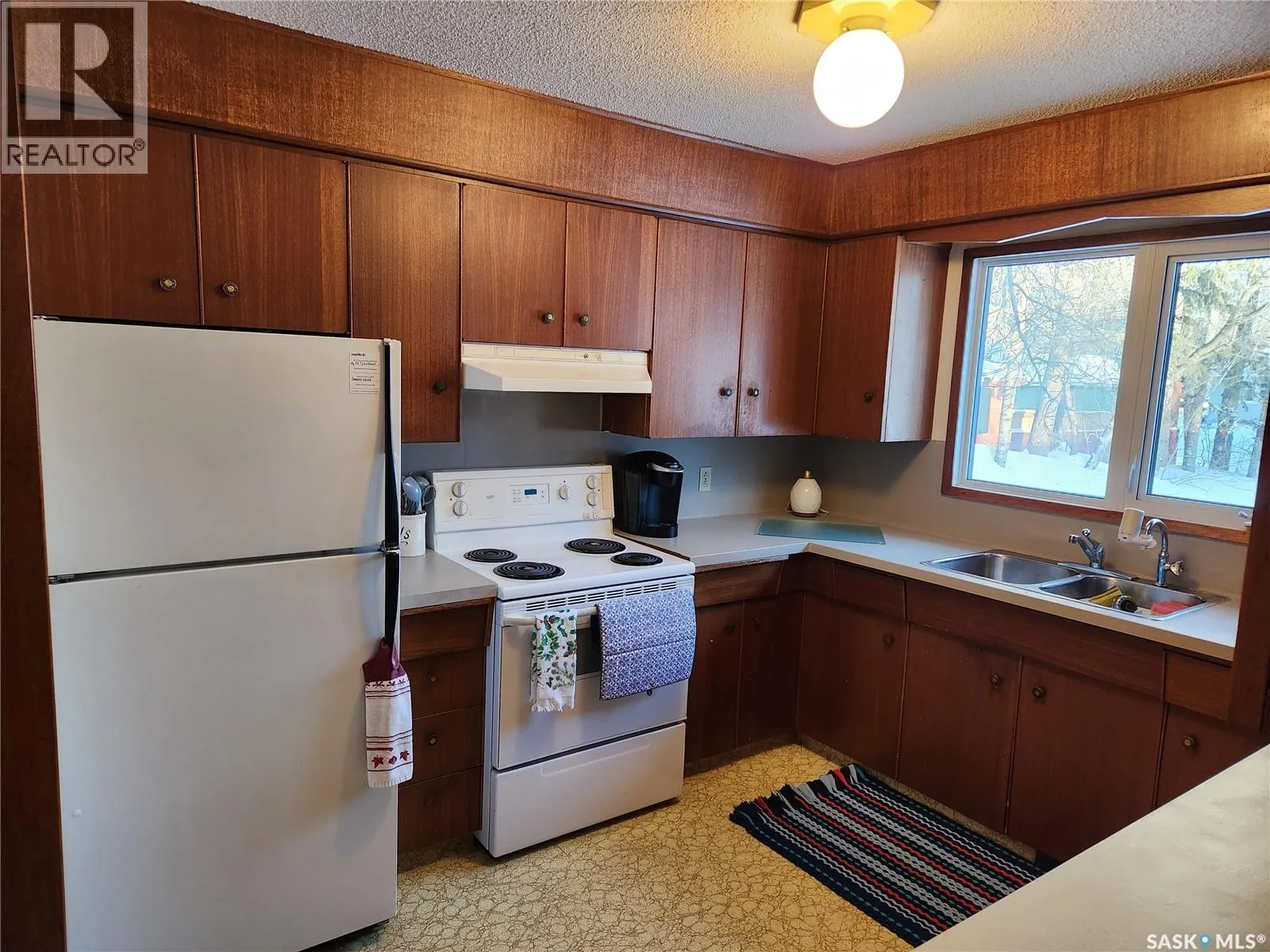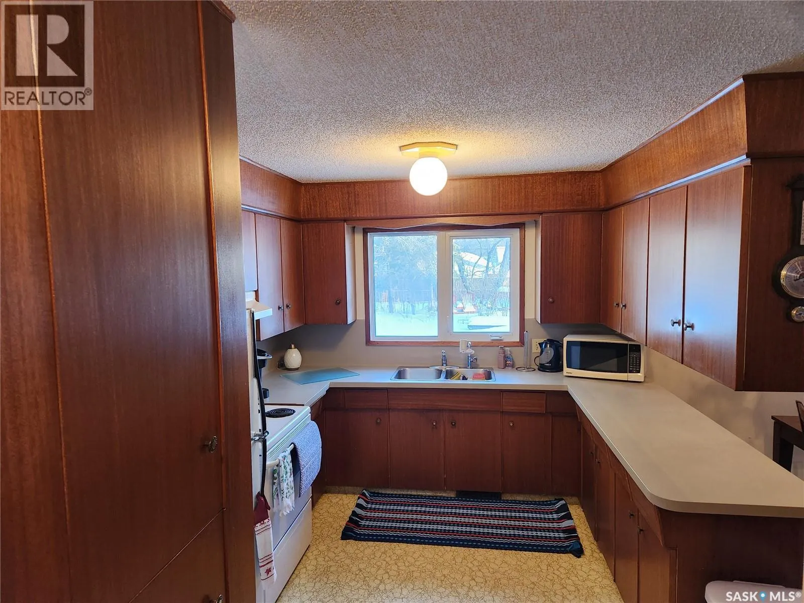 This 1276 sq ft house with a single attached garage in Tisdale, SK has 4 bedrooms and 3 bathrooms. Unique to have 2 ensuite bathrooms, one on the main floor and one in the generous basement bedroom. The kitchen boasts well maintained mahogany cabinets with a beautiful matching built in china cabinet in the spacious dining room which opens to a sitting area leading into the living room. All rooms have ample windows to allow the beautiful sunshine in. Many upgrades done in 2024 - E & S walls excavated, backyard tree removal and grass, sump pump, paint, painted kitchen counters, windows 2012, and shingles 2017. The big renos are done, just need your finishing touches to make it your own, do not wait to see this property. Call today to book your viewing. (id:27476)