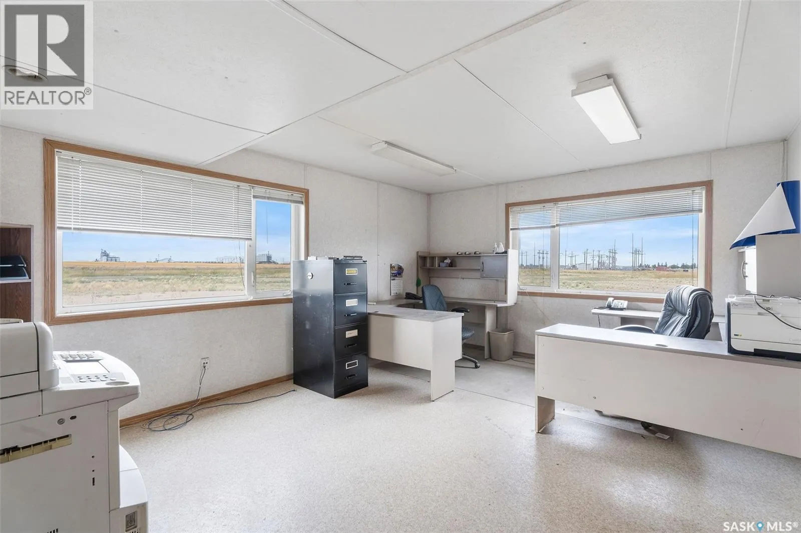 Excellent opportunity to own a large industrial building in Tisdale. Built in 1977 (with additions until 2004), this 36,096sqft building sits on 6.41 acres. The building has a large production area, several grade doors, crane/crane ways, paint room and ample storage. The building has three phase power, the production area is heated with radiant overhead heaters, paint room, overhead unit heaters, offices forced air natural gas HE furnace and boiler heat. There is central air to a portion of the offices. (id:27476)
