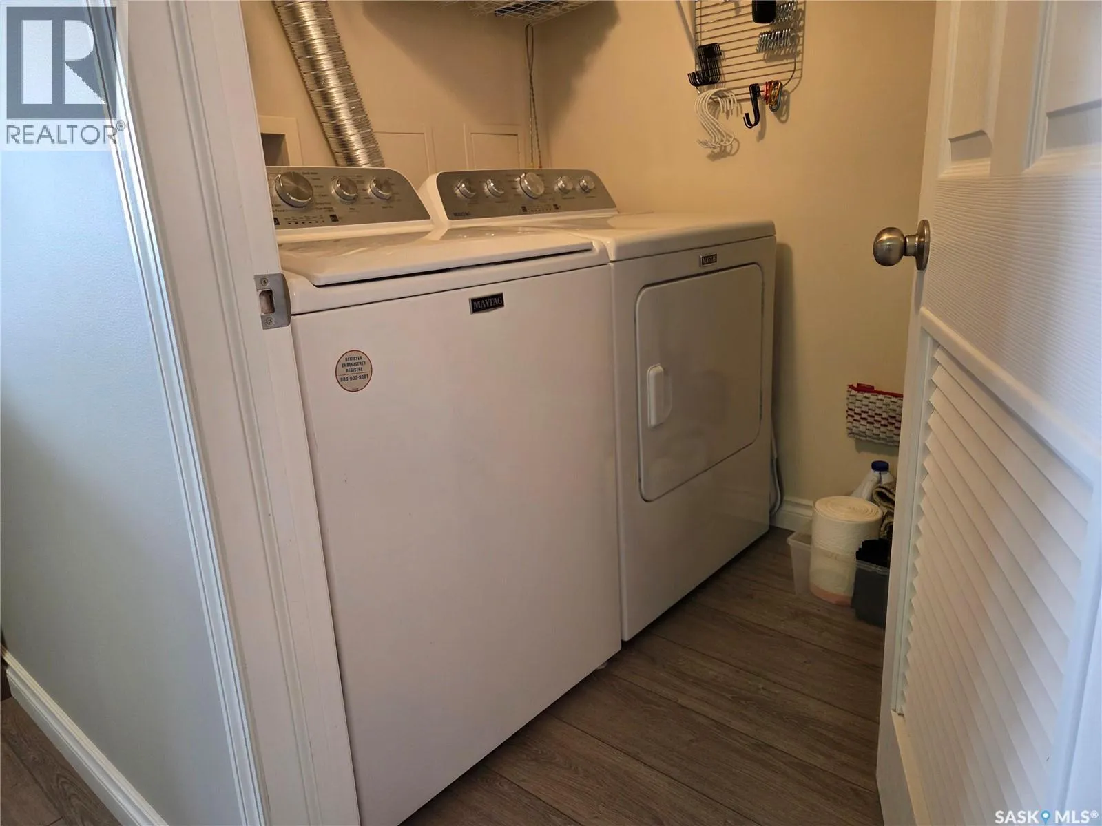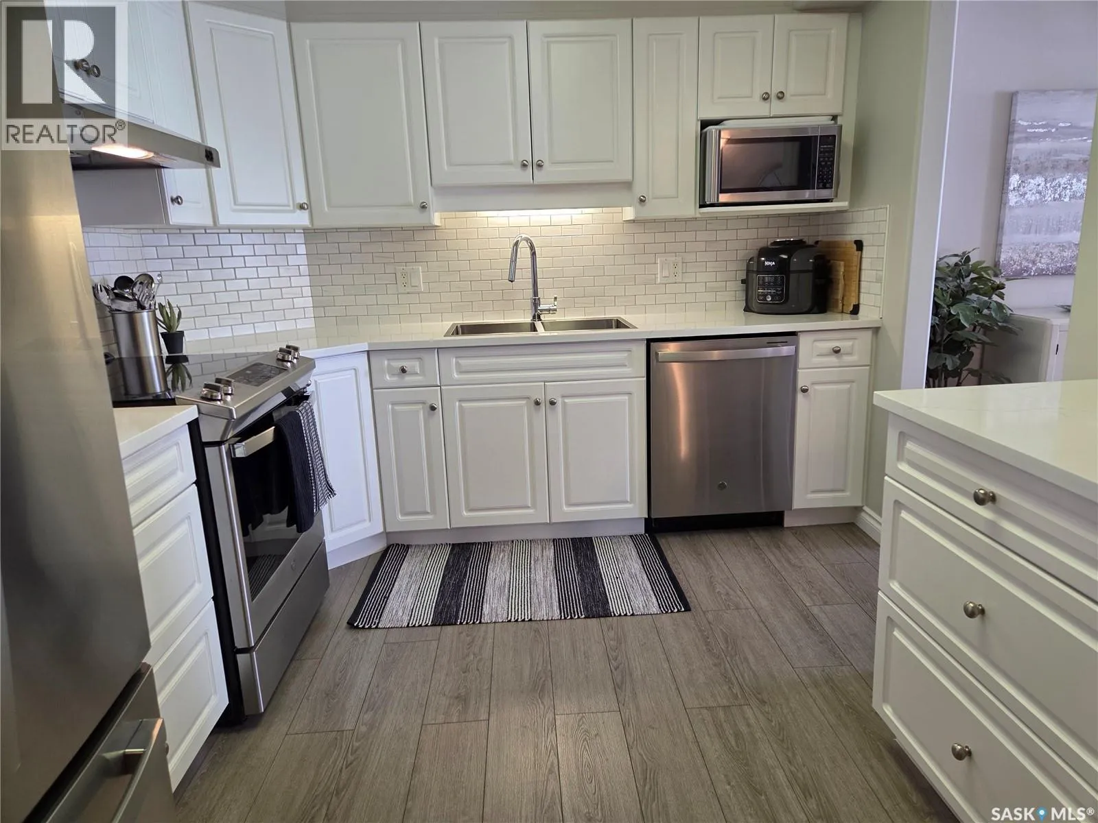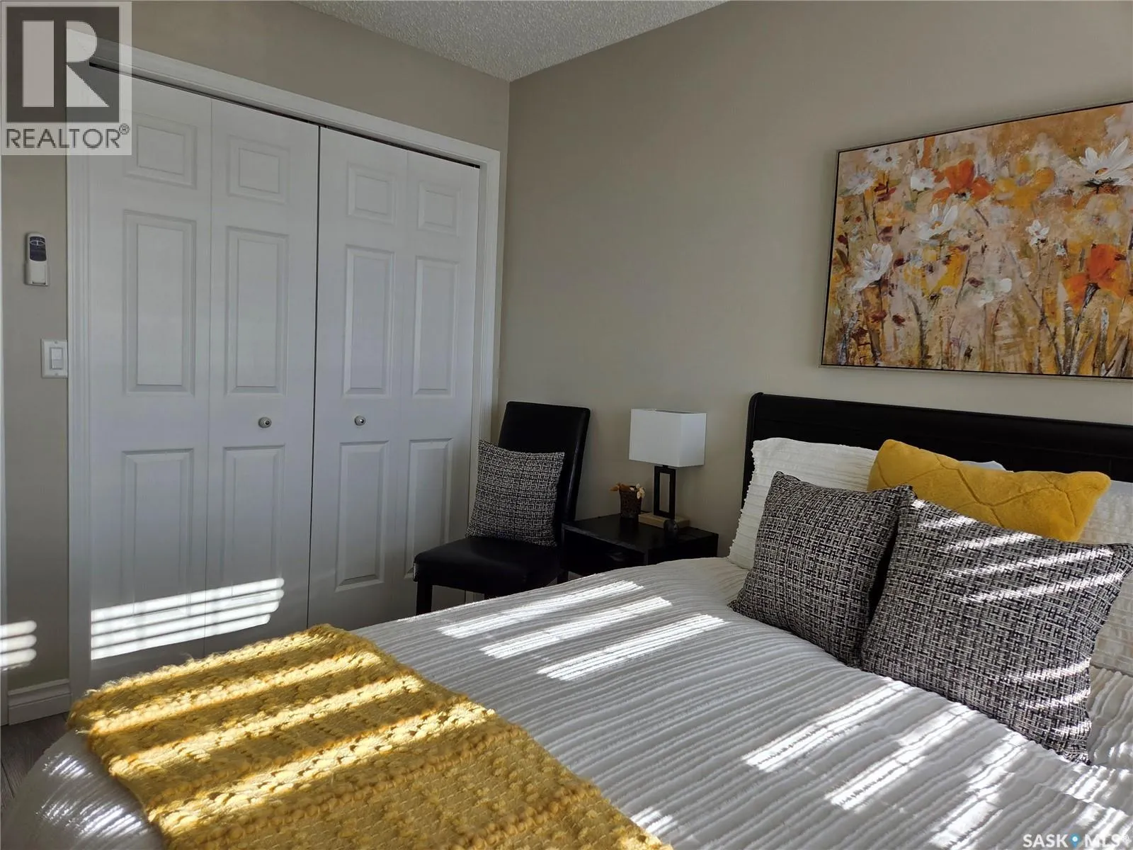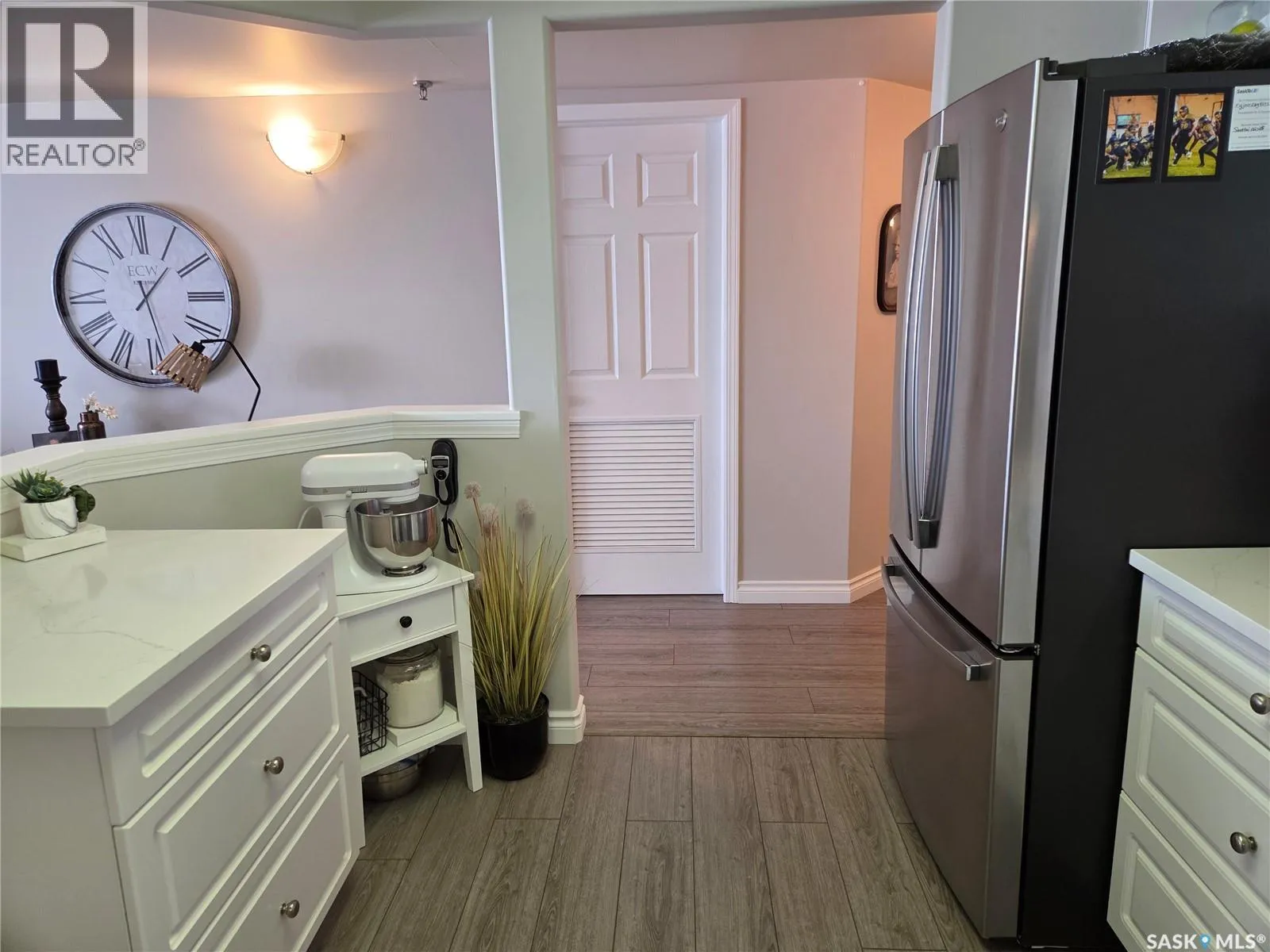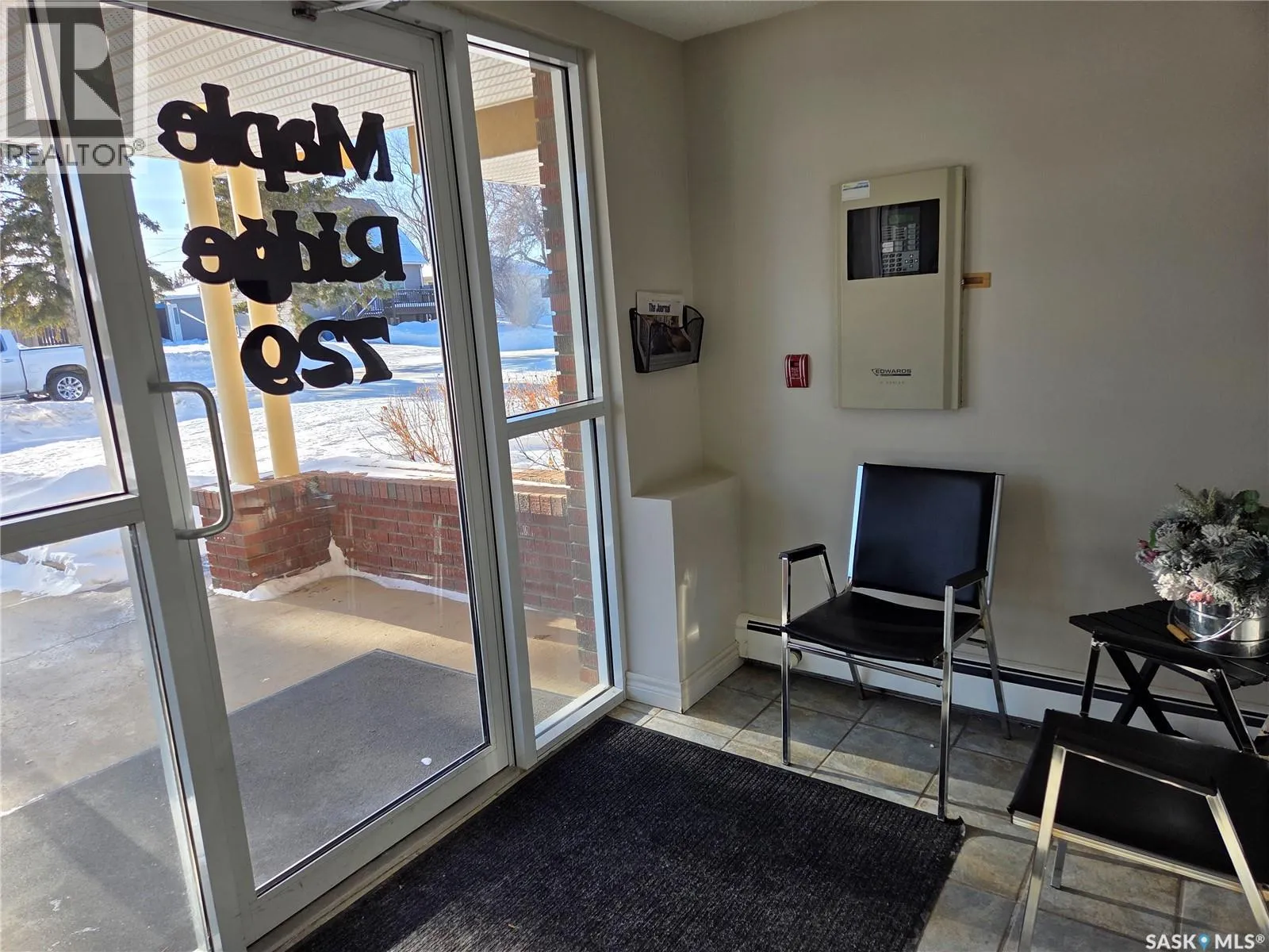 Maple Ridge Condo Welcome to suite 202 of the Maple Ridge Condominiums in the heart of Tisdale. whether it is for retirement or just a downsize from all your daily yard work, this show home condition condo will be the right choice for you. Featuring 2 bedrooms and 2 bathrooms, the open concept living space you see when you walk in the door will stop you in your tracks. This unit has been fully renovated with new flooring, new baseboards, upgraded kitchen and bathrooms, quartz counter tops, fresh paint, custom blinds, updated light fixtures and all new appliances. Plenty of storage with extra shelving was installed in the laundry room and bedrooms for a more organized touch. Condo fees are $407.00 monthly. Parking stall and storage unit #8 in the heated parking garage. This unit also has air conditioning, south facing private balcony, large windows, master room ensuite and walk in closet. The building has secure entry, private rec room with washroom and elevator service. Plenty to mention, but always better to see in person. (id:27476)