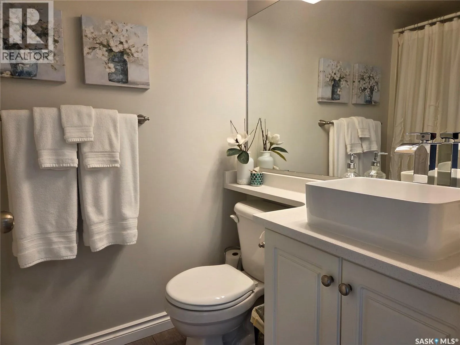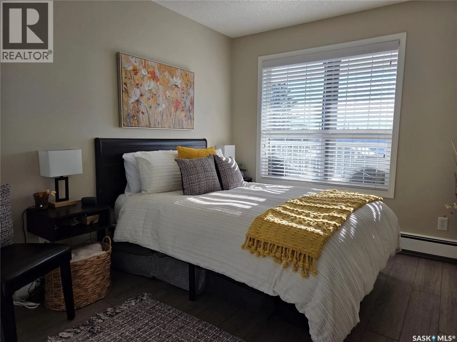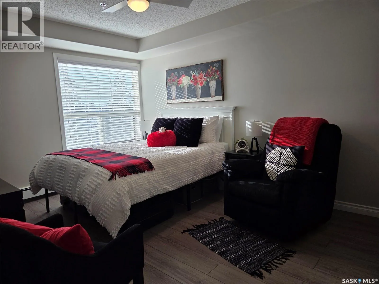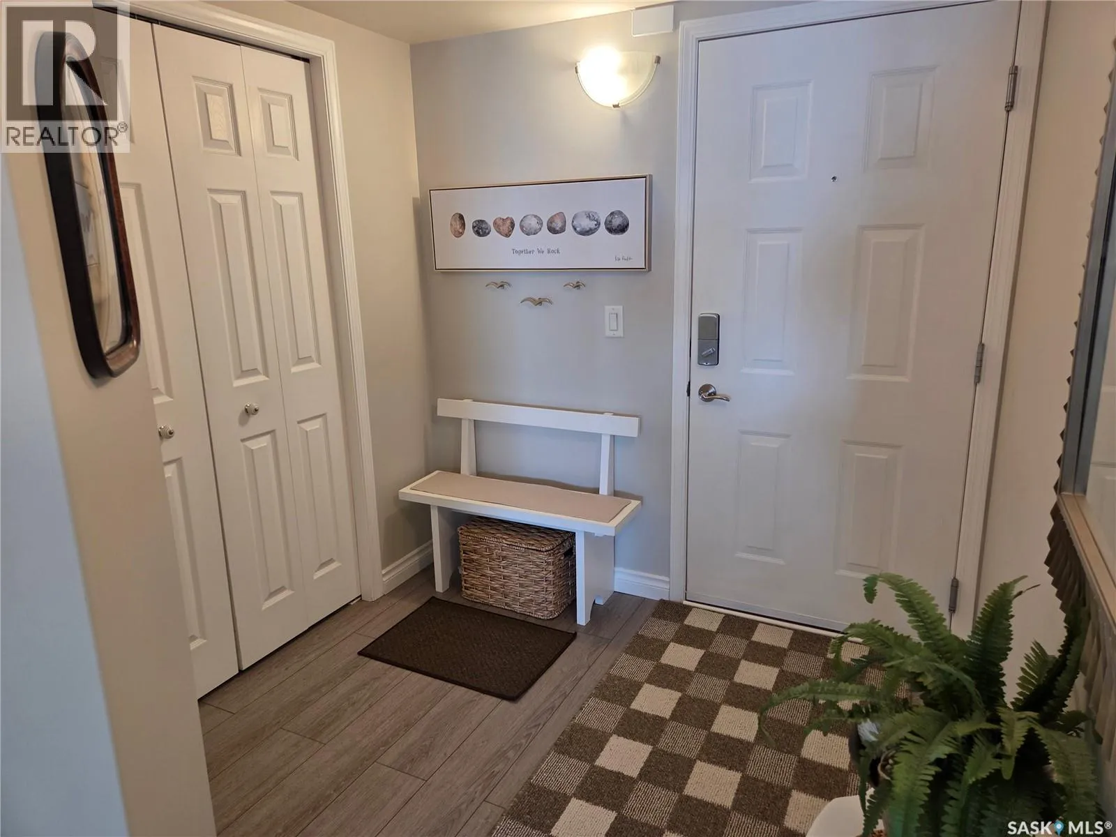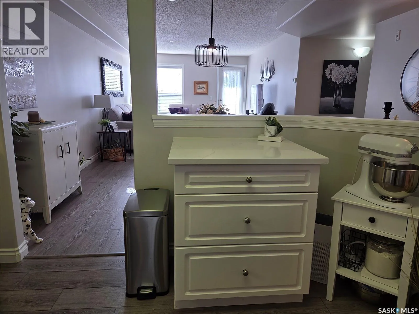 Maple Ridge Condo Welcome to suite 202 of the Maple Ridge Condominiums in the heart of Tisdale. whether it is for retirement or just a downsize from all your daily yard work, this show home condition condo will be the right choice for you. Featuring 2 bedrooms and 2 bathrooms, the open concept living space you see when you walk in the door will stop you in your tracks. This unit has been fully renovated with new flooring, new baseboards, upgraded kitchen and bathrooms, quartz counter tops, fresh paint, custom blinds, updated light fixtures and all new appliances. Plenty of storage with extra shelving was installed in the laundry room and bedrooms for a more organized touch. Condo fees are $407.00 monthly. Parking stall and storage unit #8 in the heated parking garage. This unit also has air conditioning, south facing private balcony, large windows, master room ensuite and walk in closet. The building has secure entry, private rec room with washroom and elevator service. Plenty to mention, but always better to see in person. (id:27476)