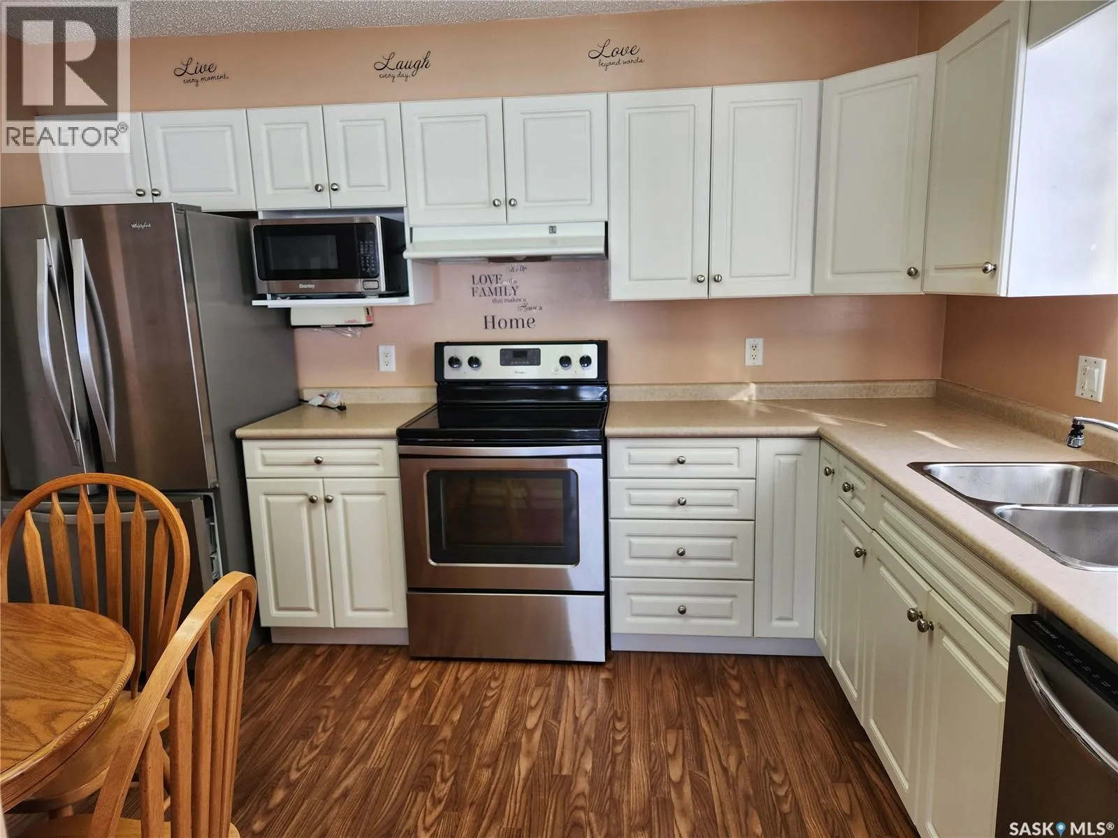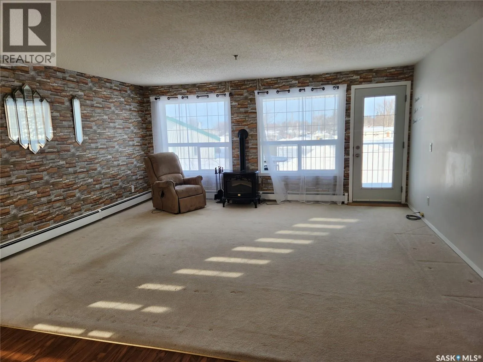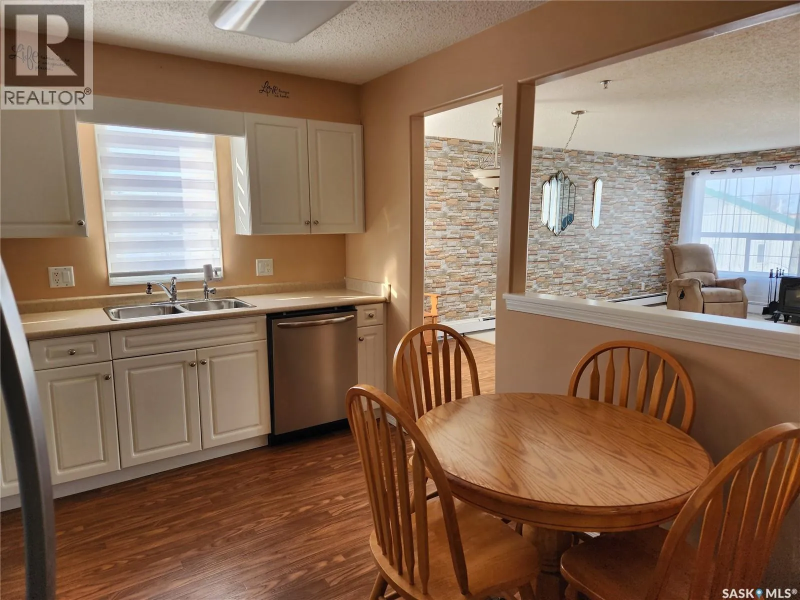 Welcome to your new home in the heart of Maple Ridge, Tisdale, SK. This charming 1195 sq ft condo offers a perfect blend of comfort and convenience, featuring 2 bedrooms and 2 bathrooms including a 3 pce ensuite for added privacy. As you step inside off the balcony, you are greeted by a large living room and dining area, ideal for entertaining or simply relaxing. This open layout provides an inviting atmosphere enhanced by natural light that fills the space. Situated close to downtown shopping and the senior center, this prime property offers the benefit of easy access to essential amenities while maintaining a peaceful residential vibe. Heated ground level parking with an indoor storage bay also add to your convenience. With minimal maintenance required, this condo is perfect for those seeking a low effort lifestyle without compromising on comfort. Don't miss out on the opportunity to make this lovely condo your new home sweet home. Please contact us to view. (id:27476)