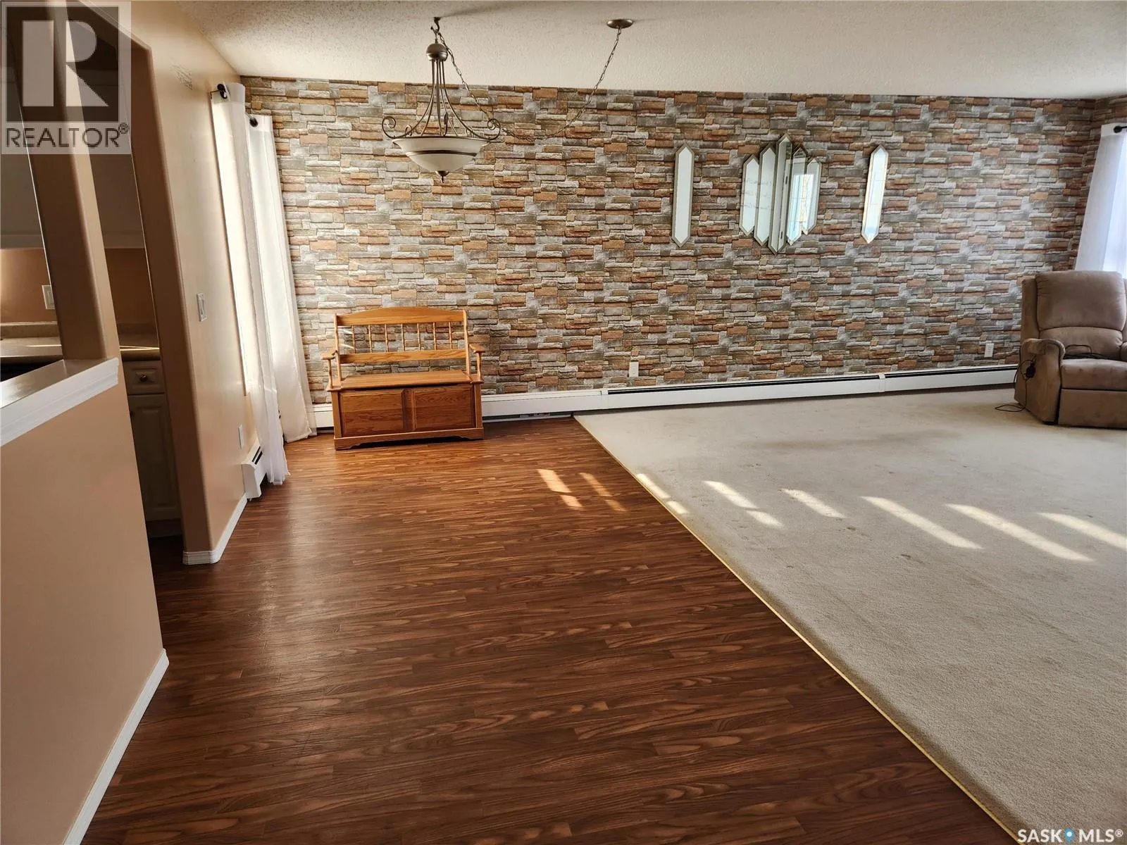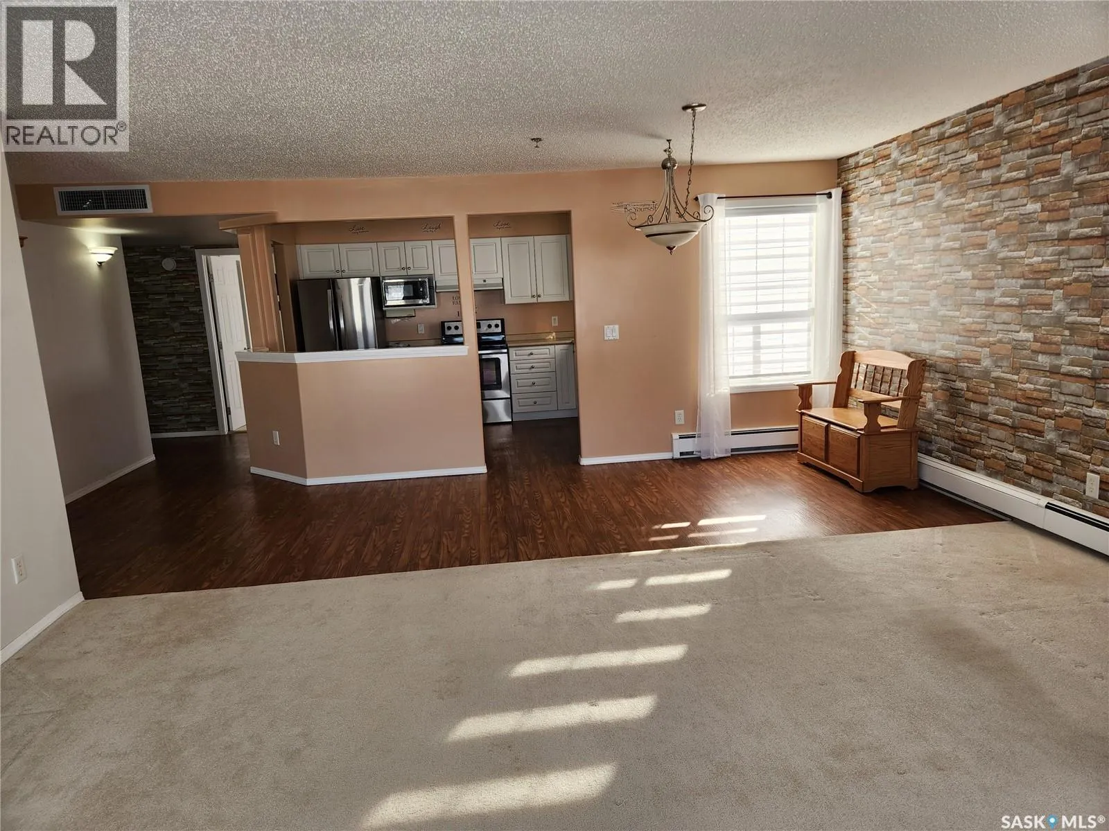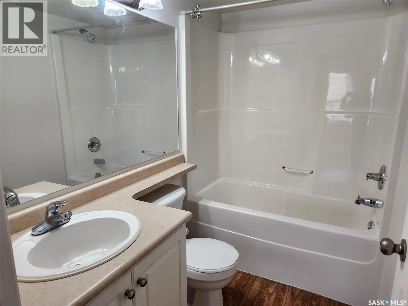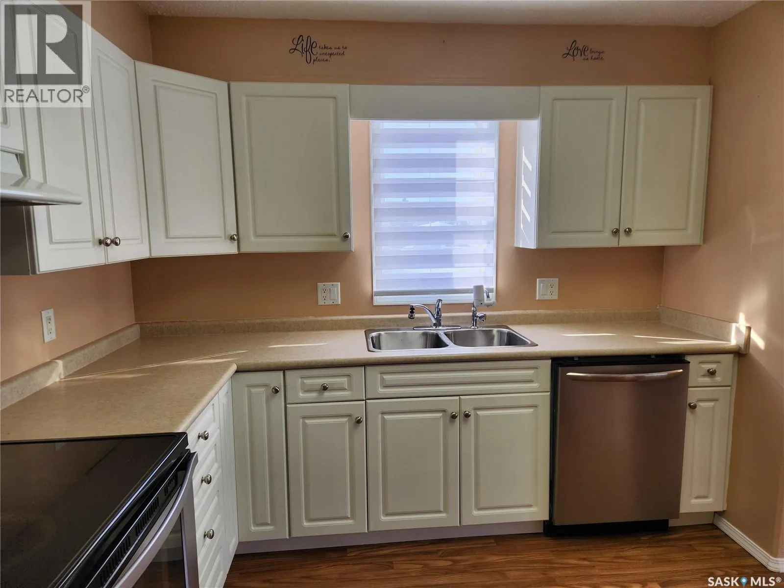 Welcome to your new home in the heart of Maple Ridge, Tisdale, SK. This charming 1195 sq ft condo offers a perfect blend of comfort and convenience, featuring 2 bedrooms and 2 bathrooms including a 3 pce ensuite for added privacy. As you step inside off the balcony, you are greeted by a large living room and dining area, ideal for entertaining or simply relaxing. This open layout provides an inviting atmosphere enhanced by natural light that fills the space. Situated close to downtown shopping and the senior center, this prime property offers the benefit of easy access to essential amenities while maintaining a peaceful residential vibe. Heated ground level parking with an indoor storage bay also add to your convenience. With minimal maintenance required, this condo is perfect for those seeking a low effort lifestyle without compromising on comfort. Don't miss out on the opportunity to make this lovely condo your new home sweet home. Please contact us to view. (id:27476)