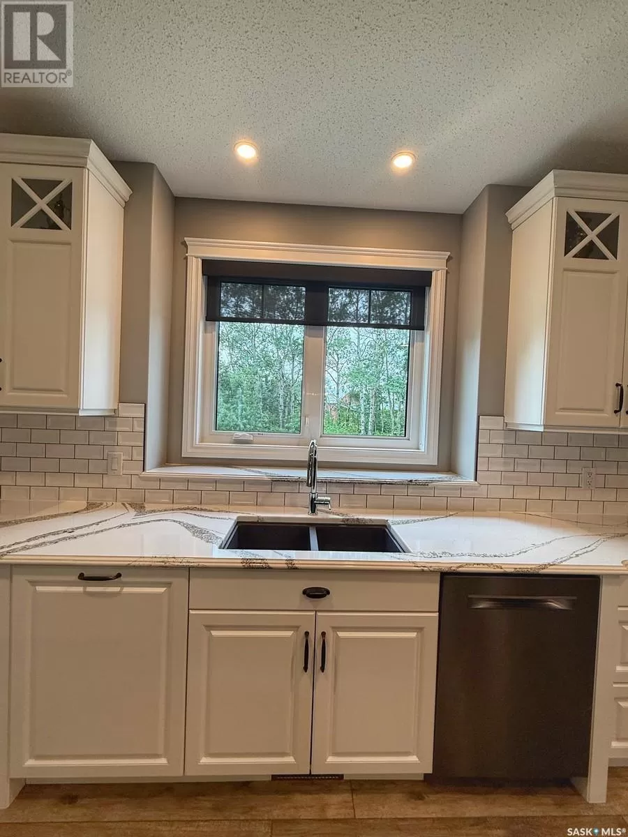 Welcome to the stunning lake home at 214 Hillside Drive, Tobin Lake, SK! This executive style 1975 sq ft home built in 2019 boasts 5 bedrooms 4 bathrooms, with an open concept kitchen/dining/living space with an amazing kitchen that features granite counter tops, abundance of cupboard space, beautiful kitchen island with the sink, cabinets on both sides of the island and a drawer-microwave; walk-in pantry/kitchenette, stove pot filler. Living room has an impressive coffered ceiling plus the gas fire place and the sound system that also extends to the bedroom, deck and the garage. 3 bedrooms are on the main floor and 2 downstairs. Master bedroom has the nice recessed ceiling and the 5-pc en-suite with heated floors. Laundry on the main floor, plus there are hookups for laundry downstairs. Being a raised bungalow the basement offers larger windows and has a great family room and 2 guest bedrooms and a bathroom. This home has natural gas heat, central air, air exchanger, humidifier, on-demand water heater! The dream 35x30ft 3-car garage is heated is a great asset to house your vehicles, boats, quads or what have you. Property is located on a 0.36 acre corner lot and has a great low maintenance deck (both front and back) and the space at the front to plant your flowers. Tobin Lake is known for trophy fishing, and itâs 11 minutes to Rolling Pines Golf Course. Does lake life sounds appealing to you? Make this beautiful lake home yours today! (id:27476)