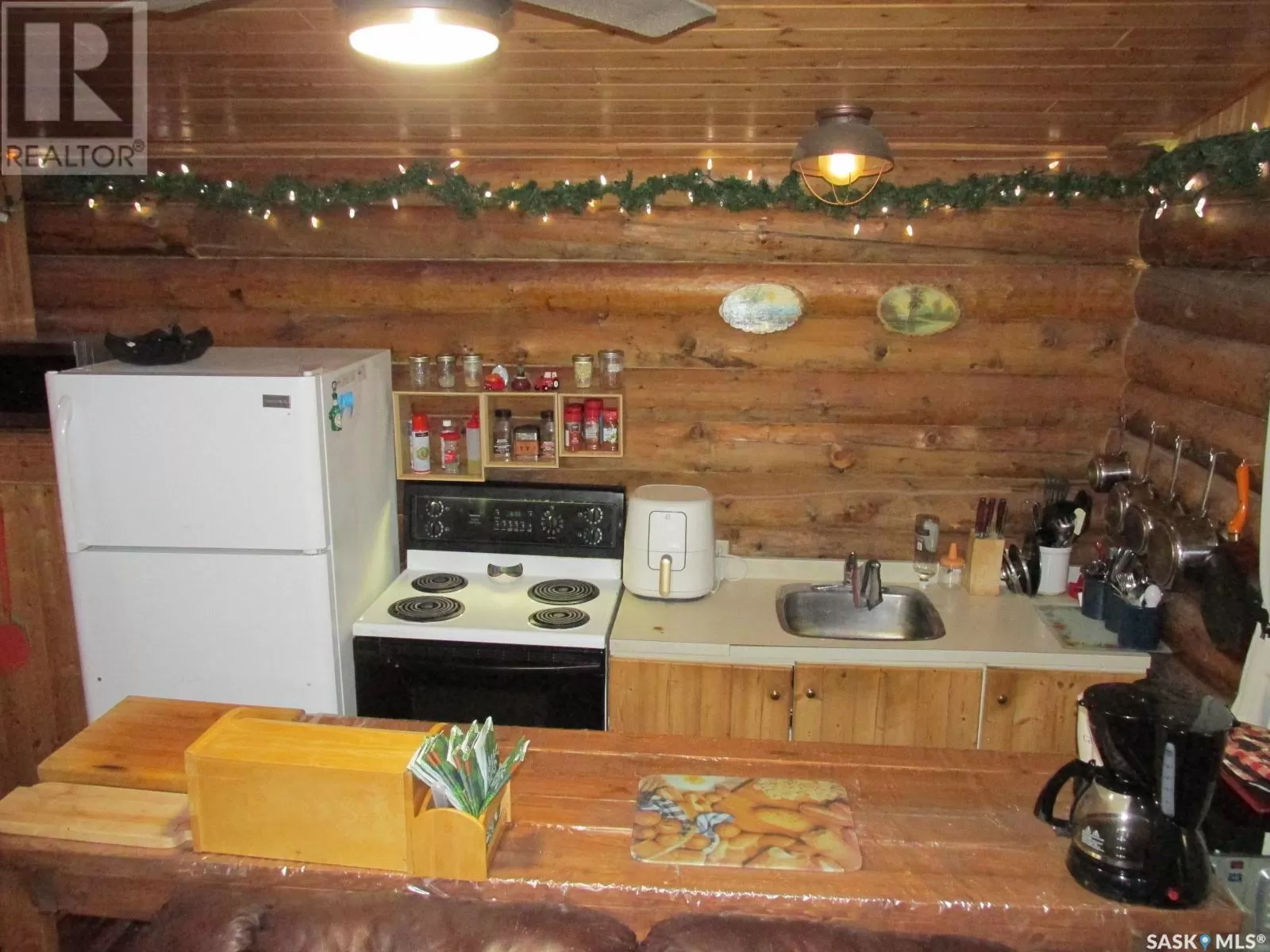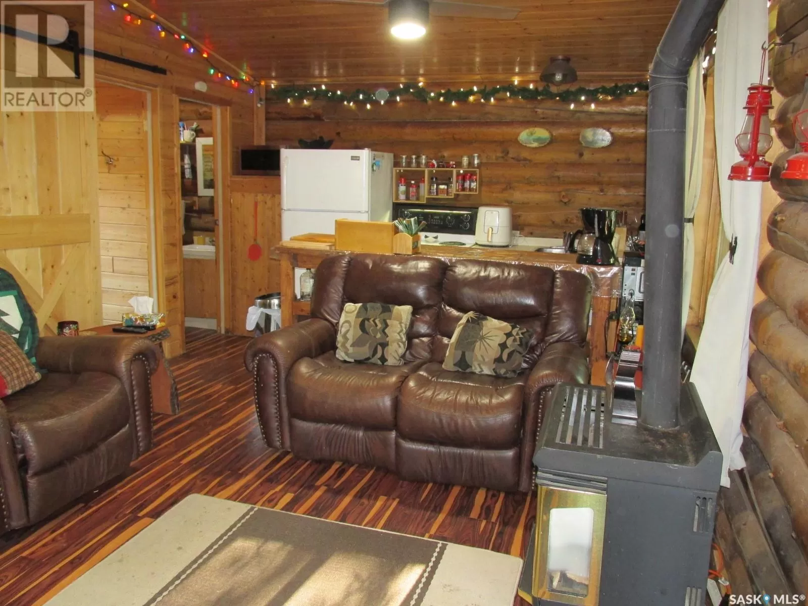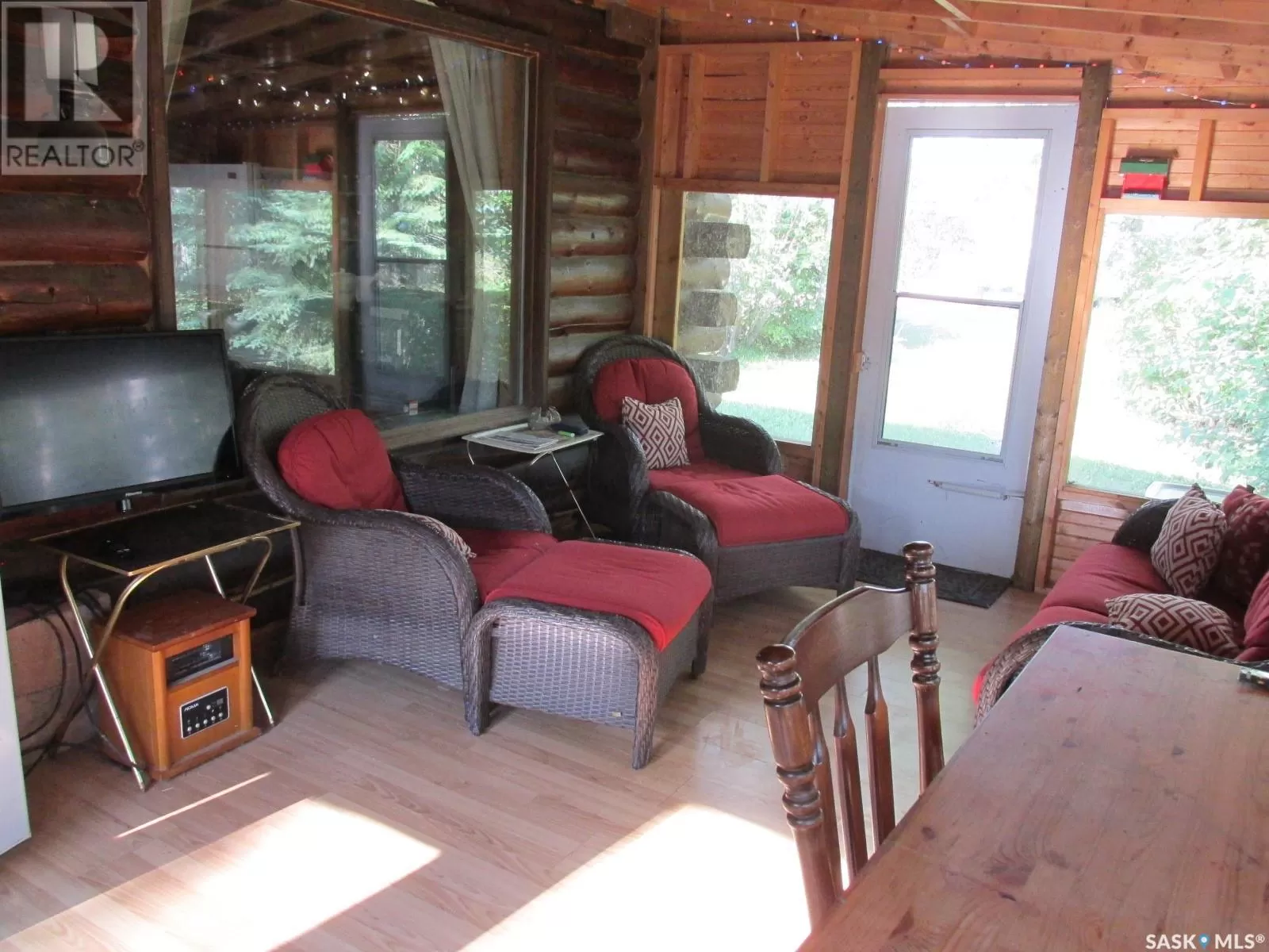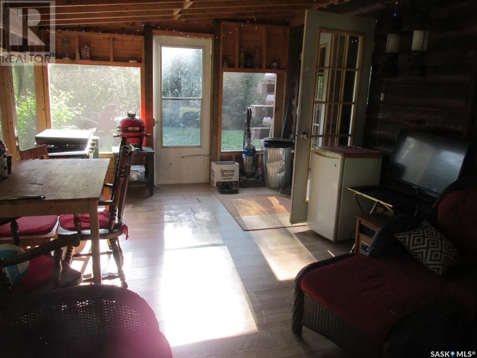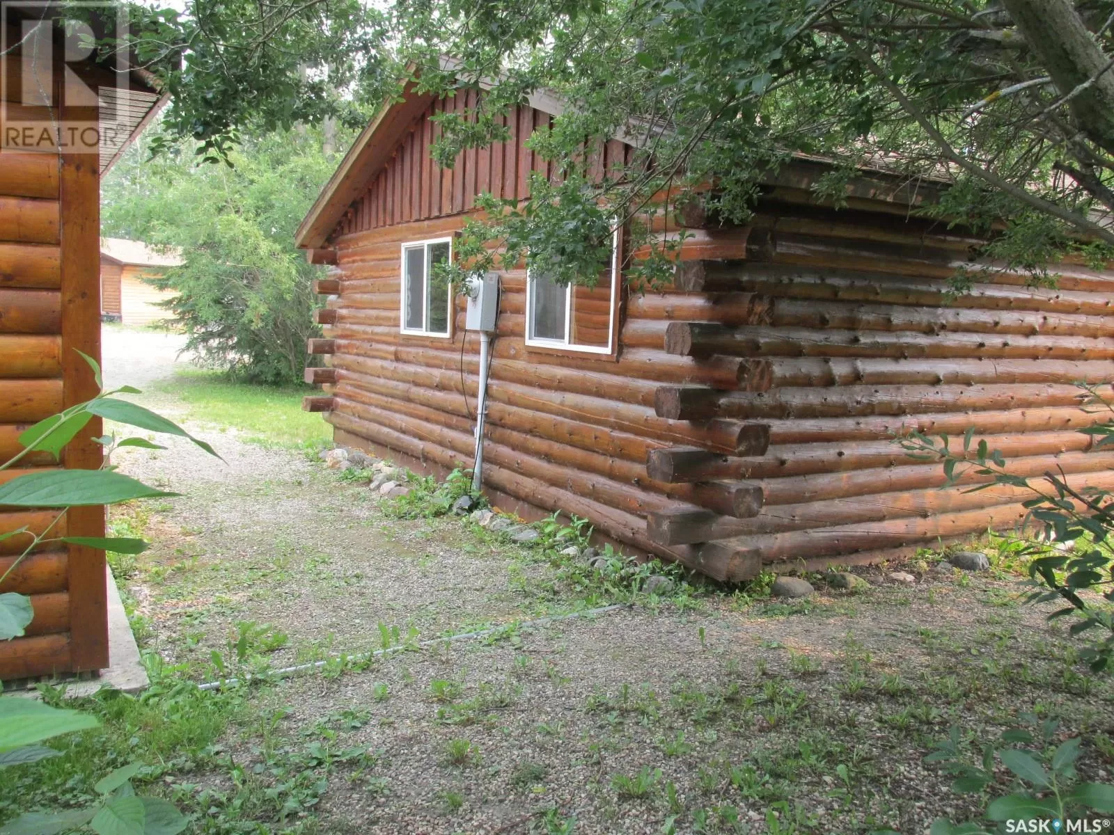 If you're looking for a peaceful recreational escape, look no further! Welcome to Cabin #6 at Scots Landing, a charming 528 sq ft, 4-season log cabin nestled just minutes from Nipawin and steps from the Saskatchewan River and only a few kilometers to the snowmobile trails, and a short 11 km drive to the golf course. Built in 1995, this cozy retreat offers the perfect blend of rustic charm and modern convenience. It features 2 bedrooms 1 bath, with the natural gas stove heat and backup electric heat. There is a great covered screened-in three-season deck with removable windows. Some of the improvements include: a double car garage (built in 2013), cabin roof re-shingled (approx. 8 years ago), cabin and garage recently stained, cabin chinked for improved insulation, lot cleared and leveled for a fire pit area. There is a condo association private boat launch and docks. Most furnishings in the cabin are included in the sale. Phone today! (id:27476)