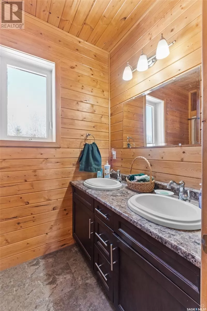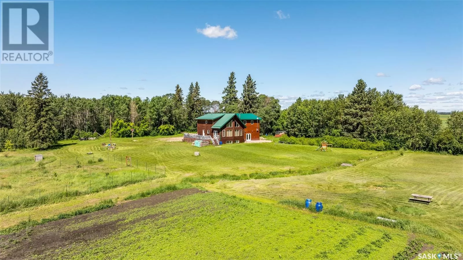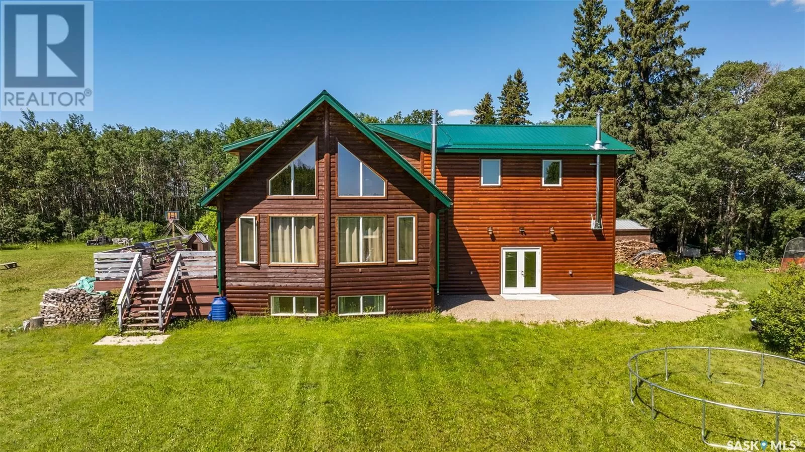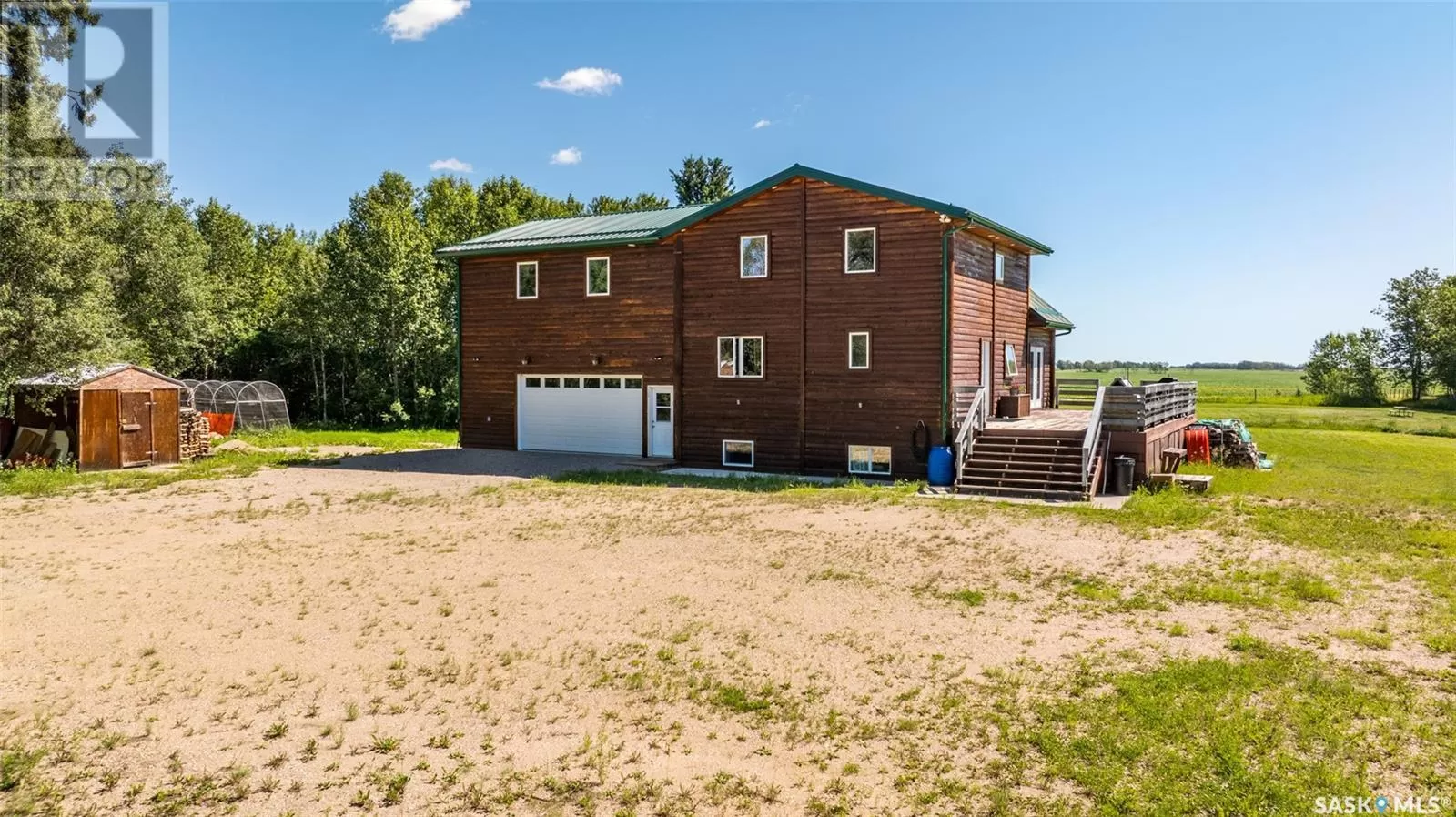 Stunning 2 storey A-frame home with 8 bedrooms and 4 bathrooms near the White Fox River. The main level greets you with an open concept floor plan that effortlessly blends the kitchen, dining and living areas. The space is adorned with beautiful wood paneling and dramatic round wood support beams, creating a warm and inviting atmosphere. The chef inspired kitchen features stainless steel appliances, elegant wood cabinetry and a spacious island with bar seating. The cozy living room with a wood burning fireplace as its focal point and maple hardwood flooring offers direct access to a large deck where you can unwind and enjoy breathtaking country sunsets. This level also includes a large bedroom and a stylish 5 pc bathroom with dual sinks. Upstairs, the loft overlooks the main floor and leads to two additional bedrooms and a 4 pc bathroom, complete with a large soaker tub, stand-up shower and a modern vanity. The basement adds even more living space with a large family room, kitchenette, two bedrooms, a 3 pc bathroom and a laundry/utility room. In 2024, a large addition was completed featuring a 2 car attached garage with a finished interior including a kitchenette and wood stove. The second level of the addition includes four bedrooms and a 4 piece bathroom with laundry hookups. The water supply is a 100ft well with a 6 inch casing and the septic system is a septic tank to a surface discharge. The property is well equipped for horses or farm animals with some fenced in areas, a 24ft x 16ft barn and a 16ft x 10ft shed. A charming garden, firepit, and large deck create an ideal space to relax and take in the surroundings. The property is also just a short distance from the renowned Fort La Corne Forest known for excellent hunting, quading and trail riding. Whether you are seeking a family home, recreational retreat or hobby farm this property truly has it all. Don't miss out on this opportunity to embrace country living at its finest! (id:27476)