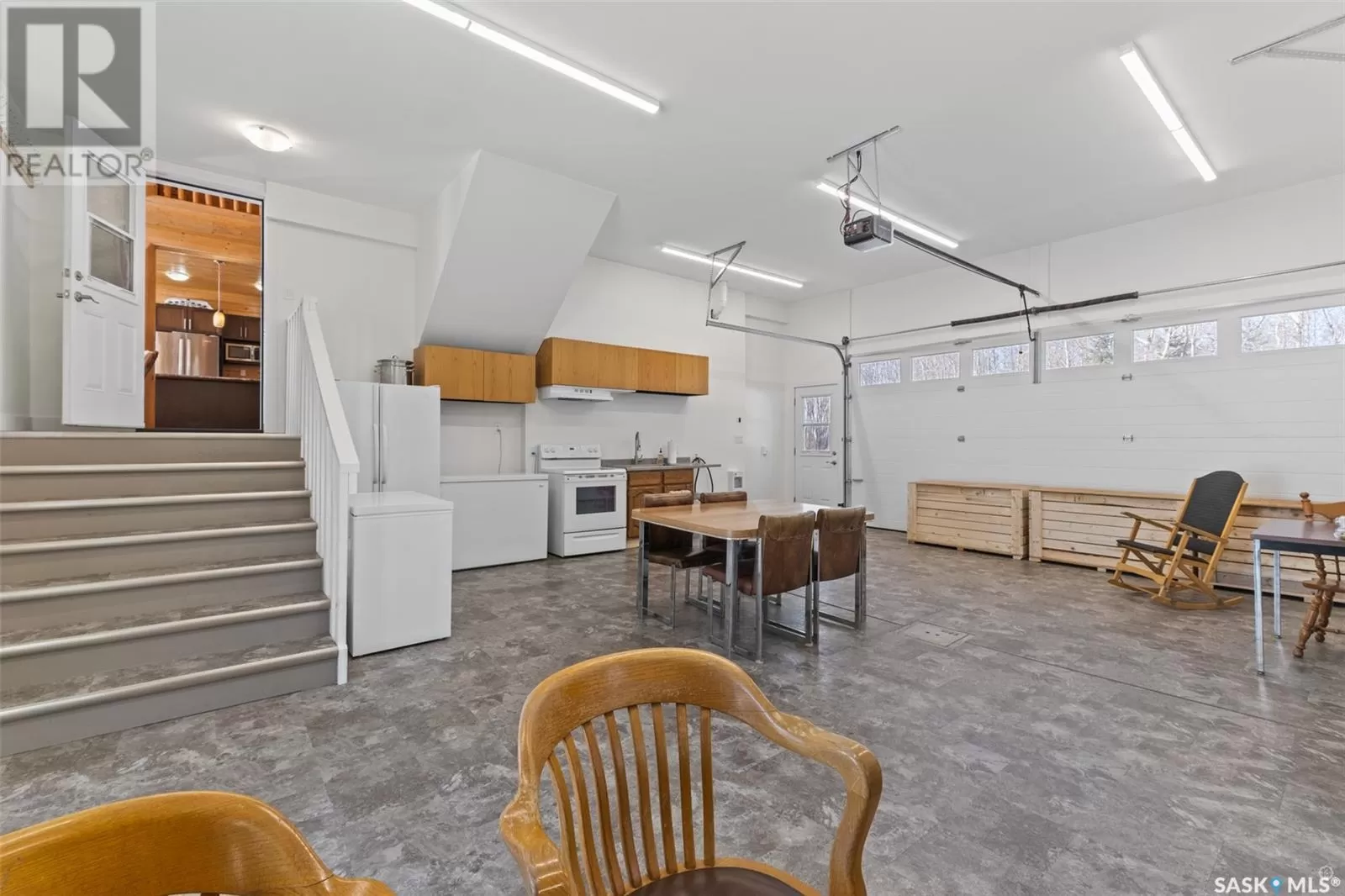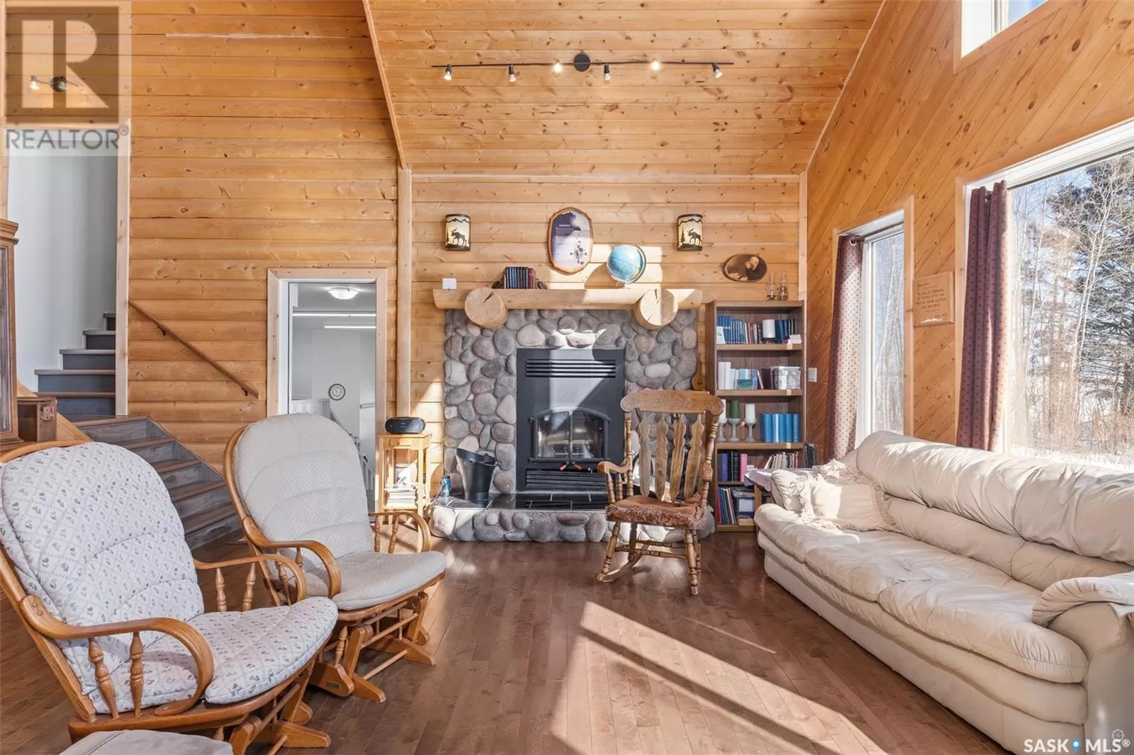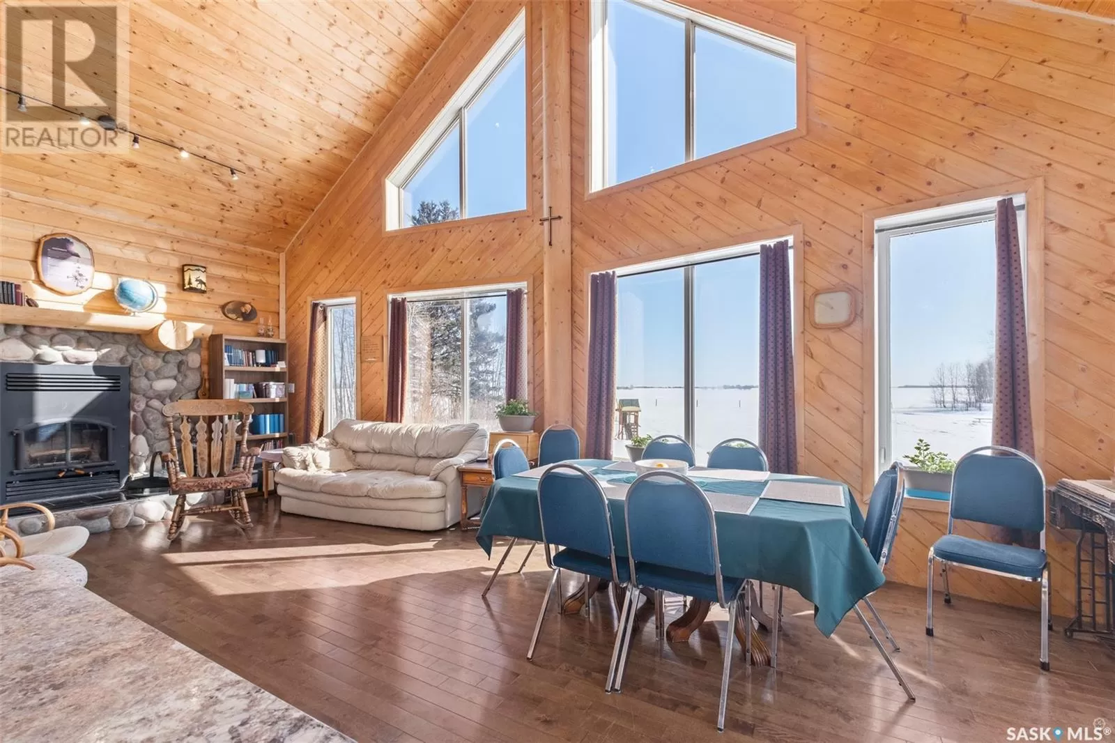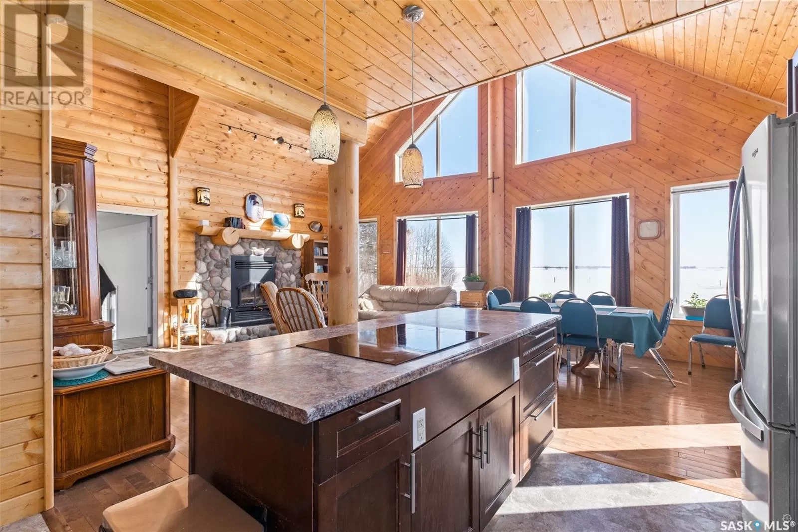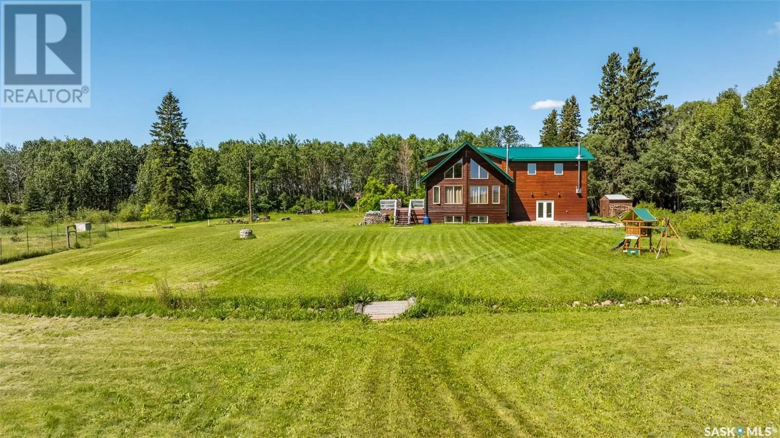 Stunning 2 storey A-frame home with 8 bedrooms and 4 bathrooms near the White Fox River. The main level greets you with an open concept floor plan that effortlessly blends the kitchen, dining and living areas. The space is adorned with beautiful wood paneling and dramatic round wood support beams, creating a warm and inviting atmosphere. The chef inspired kitchen features stainless steel appliances, elegant wood cabinetry and a spacious island with bar seating. The cozy living room with a wood burning fireplace as its focal point and maple hardwood flooring offers direct access to a large deck where you can unwind and enjoy breathtaking country sunsets. This level also includes a large bedroom and a stylish 5 pc bathroom with dual sinks. Upstairs, the loft overlooks the main floor and leads to two additional bedrooms and a 4 pc bathroom, complete with a large soaker tub, stand-up shower and a modern vanity. The basement adds even more living space with a large family room, kitchenette, two bedrooms, a 3 pc bathroom and a laundry/utility room. In 2024, a large addition was completed featuring a 2 car attached garage with a finished interior including a kitchenette and wood stove. The second level of the addition includes four bedrooms and a 4 piece bathroom with laundry hookups. The water supply is a 100ft well with a 6 inch casing and the septic system is a septic tank to a surface discharge. The property is well equipped for horses or farm animals with some fenced in areas, a 24ft x 16ft barn and a 16ft x 10ft shed. A charming garden, firepit, and large deck create an ideal space to relax and take in the surroundings. The property is also just a short distance from the renowned Fort La Corne Forest known for excellent hunting, quading and trail riding. Whether you are seeking a family home, recreational retreat or hobby farm this property truly has it all. Don't miss out on this opportunity to embrace country living at its finest! (id:27476)