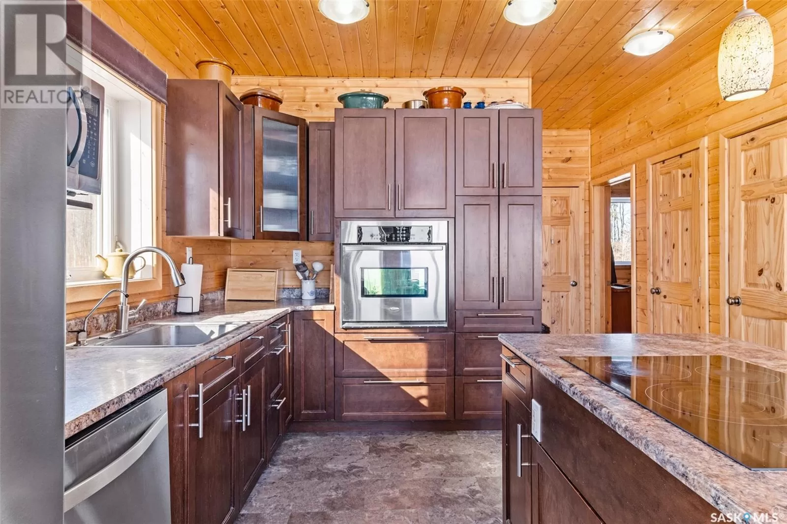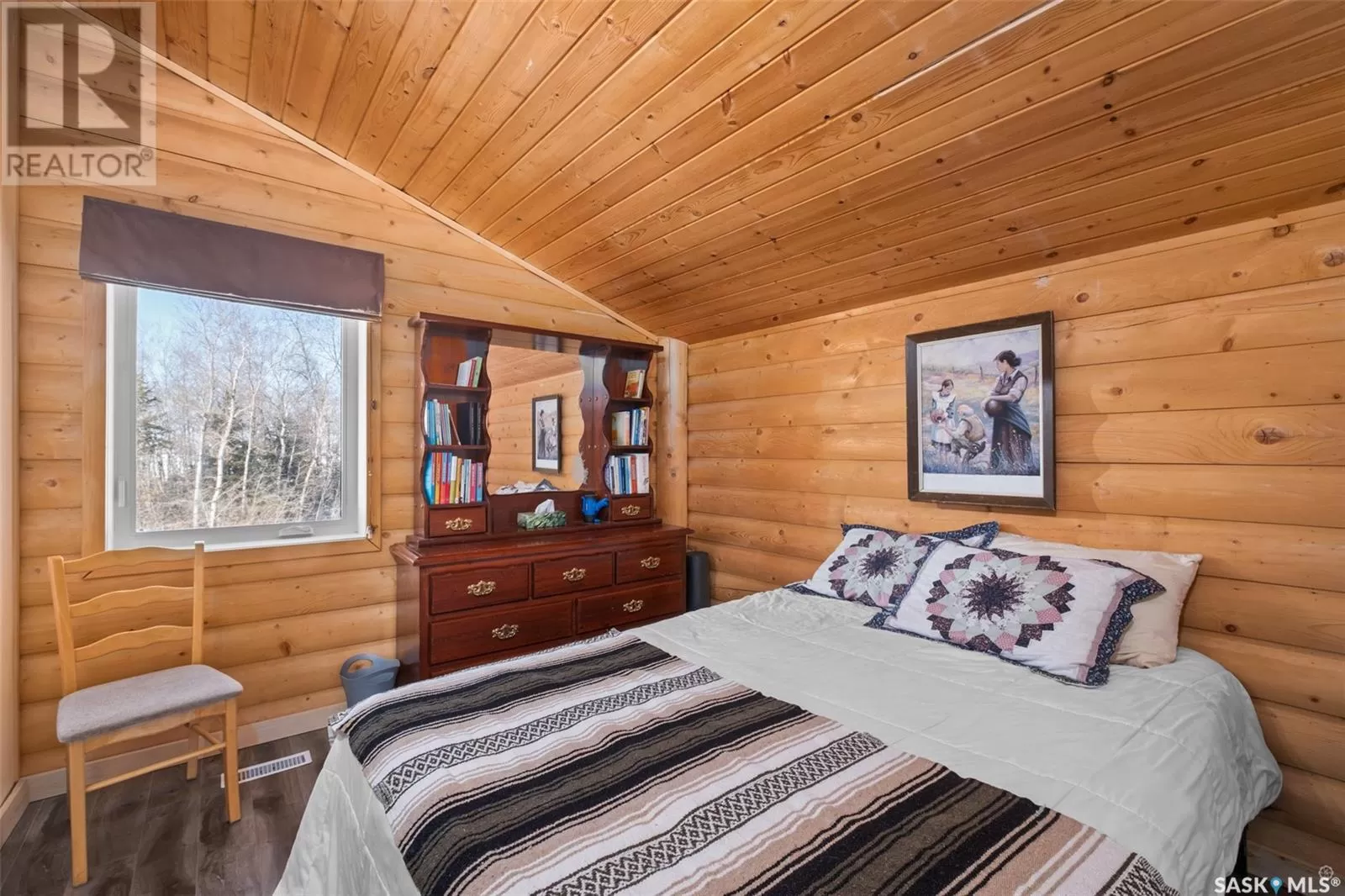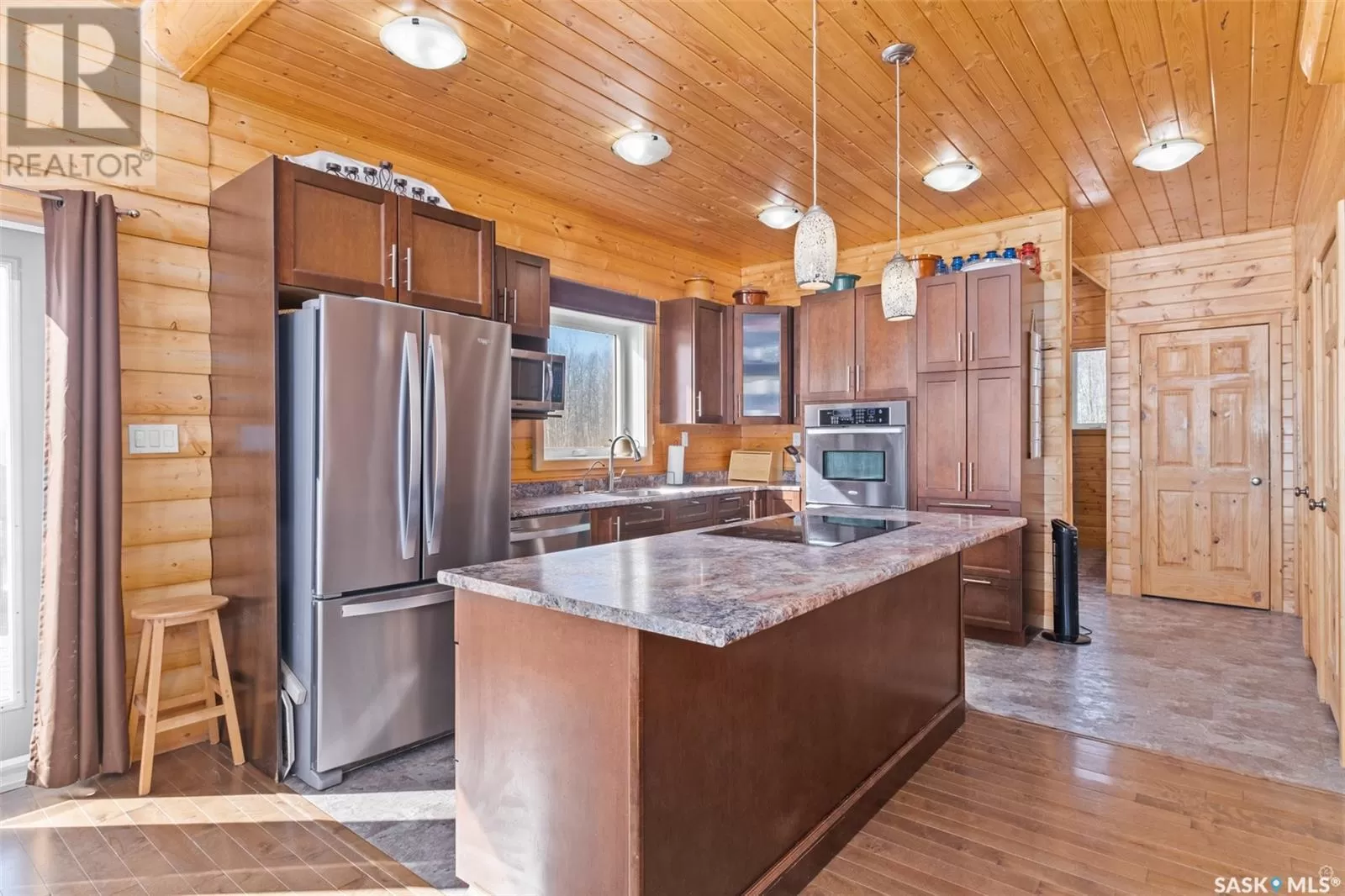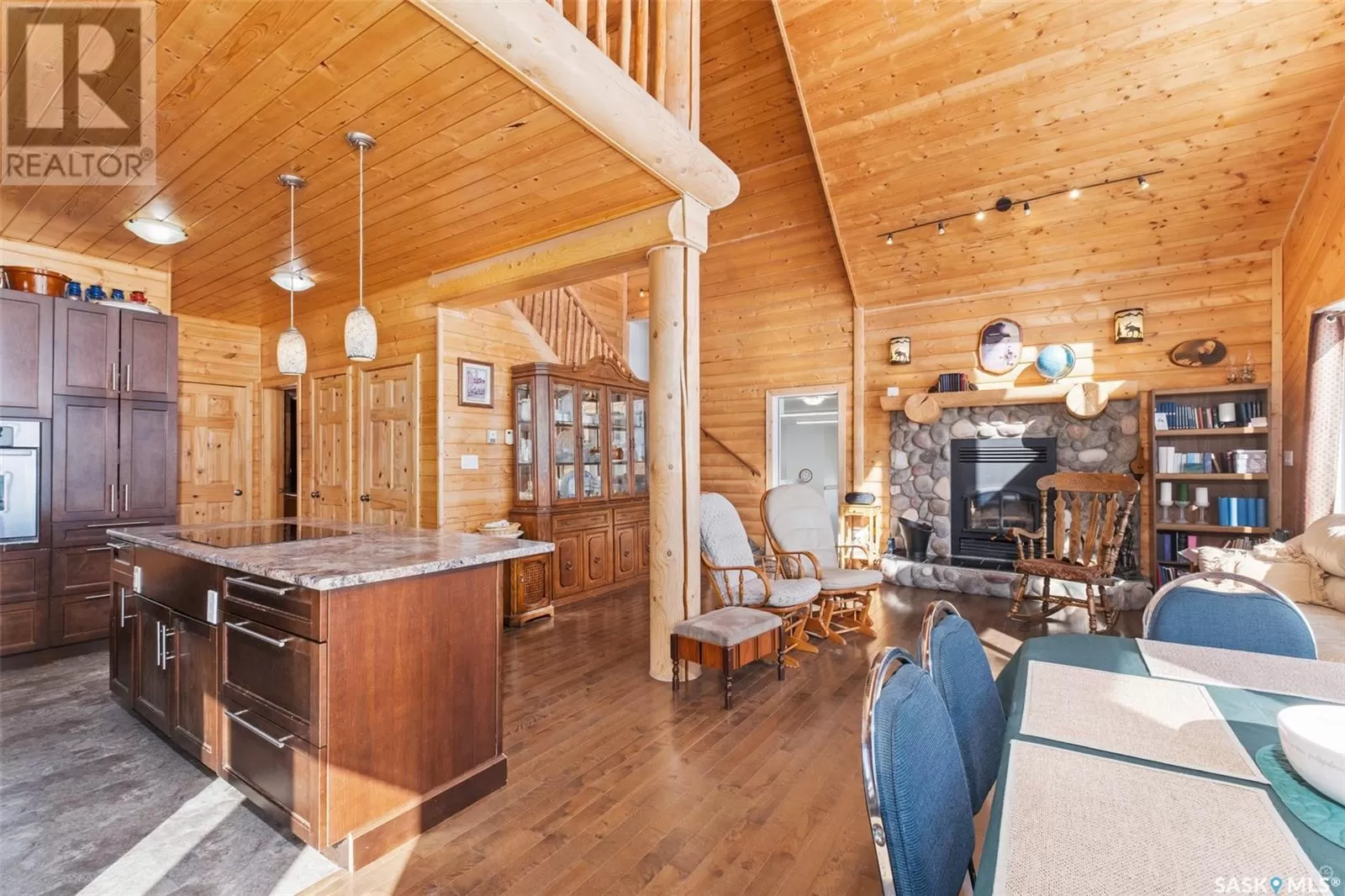 Stunning 2 storey A-frame home with 8 bedrooms and 4 bathrooms near the White Fox River. The main level greets you with an open concept floor plan that effortlessly blends the kitchen, dining and living areas. The space is adorned with beautiful wood paneling and dramatic round wood support beams, creating a warm and inviting atmosphere. The chef inspired kitchen features stainless steel appliances, elegant wood cabinetry and a spacious island with bar seating. The cozy living room with a wood burning fireplace as its focal point and maple hardwood flooring offers direct access to a large deck where you can unwind and enjoy breathtaking country sunsets. This level also includes a large bedroom and a stylish 5 pc bathroom with dual sinks. Upstairs, the loft overlooks the main floor and leads to two additional bedrooms and a 4 pc bathroom, complete with a large soaker tub, stand-up shower and a modern vanity. The basement adds even more living space with a large family room, kitchenette, two bedrooms, a 3 pc bathroom and a laundry/utility room. In 2024, a large addition was completed featuring a 2 car attached garage with a finished interior including a kitchenette and wood stove. The second level of the addition includes four bedrooms and a 4 piece bathroom with laundry hookups. The water supply is a 100ft well with a 6 inch casing and the septic system is a septic tank to a surface discharge. The property is well equipped for horses or farm animals with some fenced in areas, a 24ft x 16ft barn and a 16ft x 10ft shed. A charming garden, firepit, and large deck create an ideal space to relax and take in the surroundings. The property is also just a short distance from the renowned Fort La Corne Forest known for excellent hunting, quading and trail riding. Whether you are seeking a family home, recreational retreat or hobby farm this property truly has it all. Don't miss out on this opportunity to embrace country living at its finest! (id:27476)