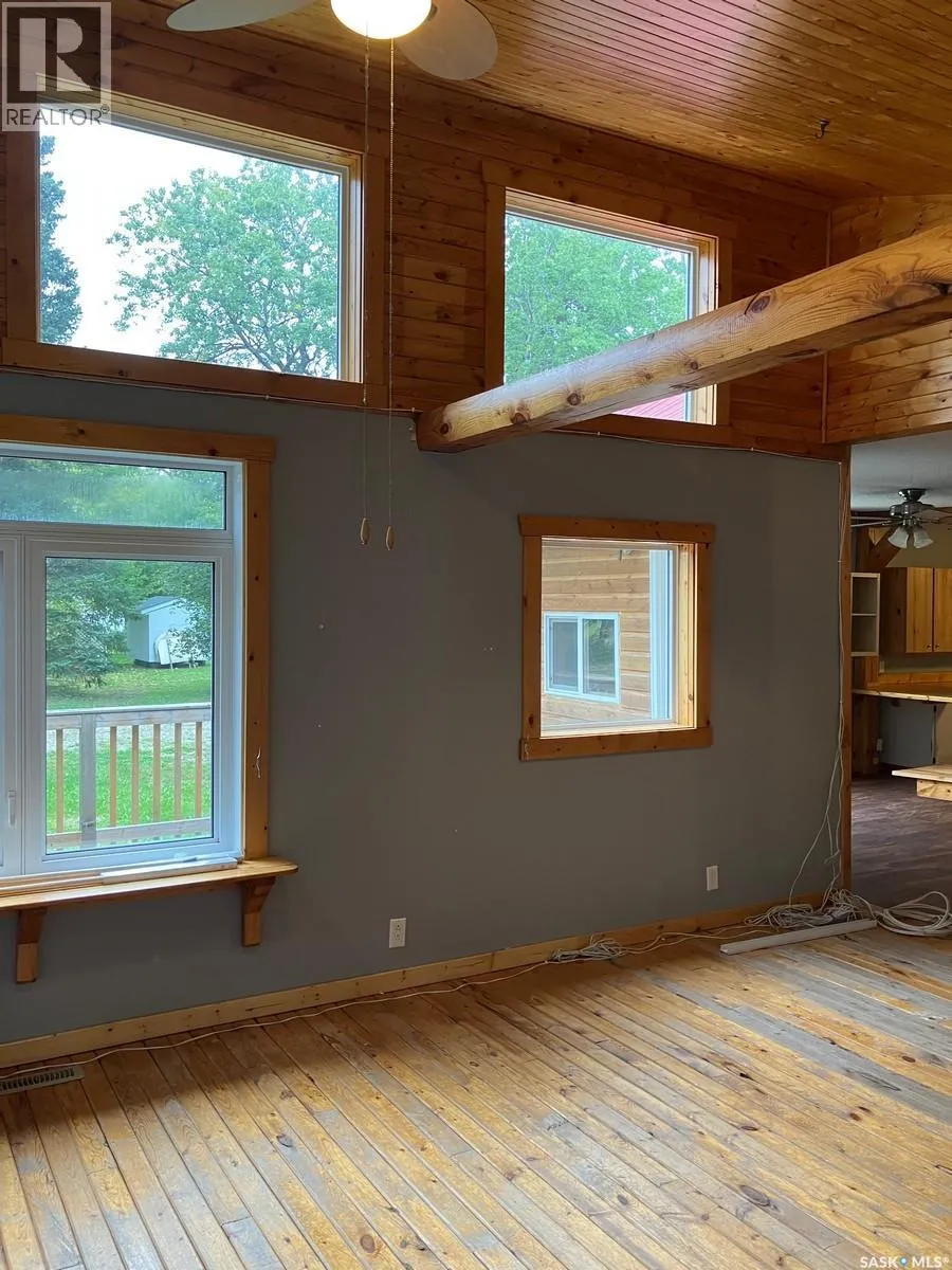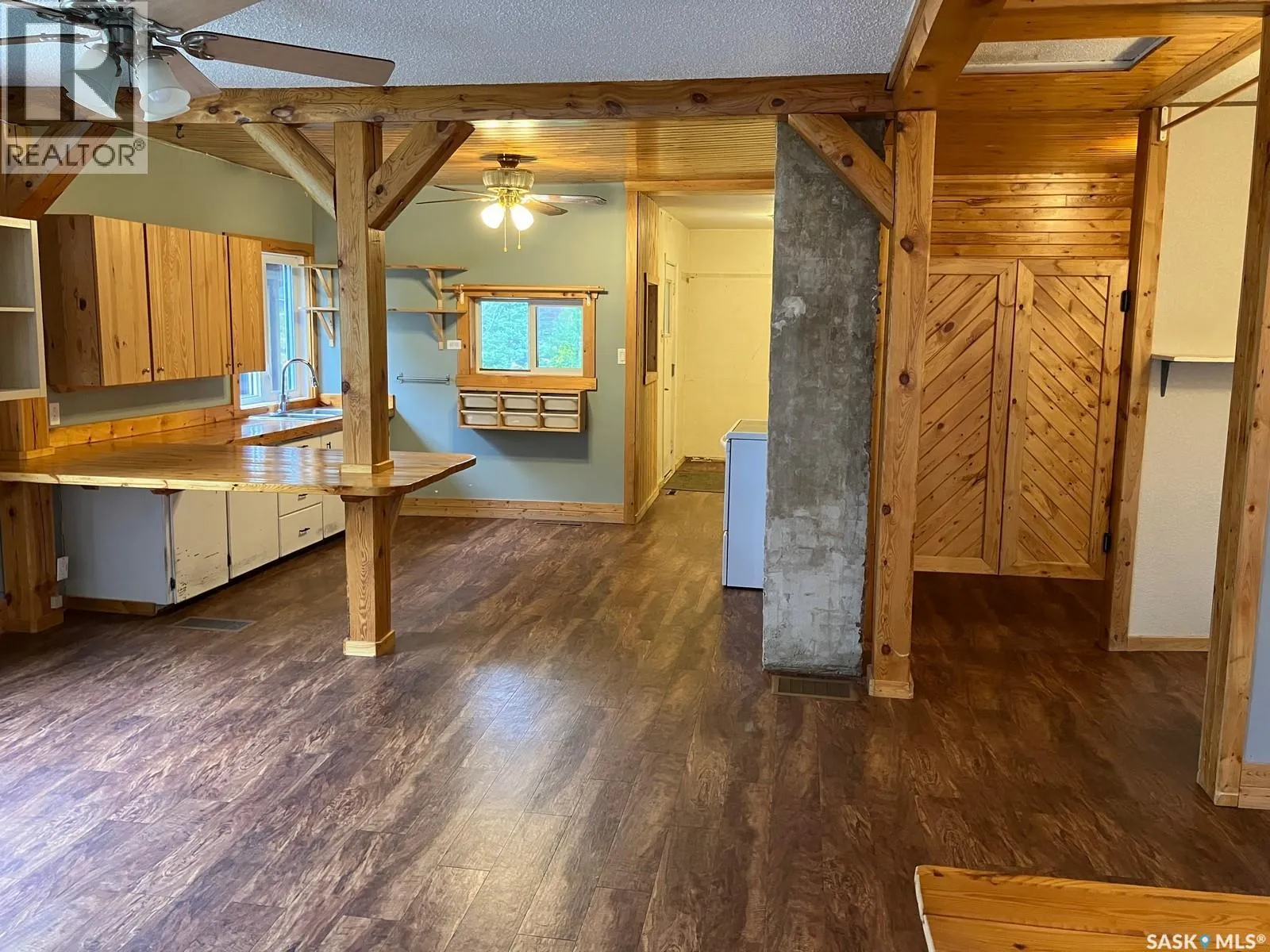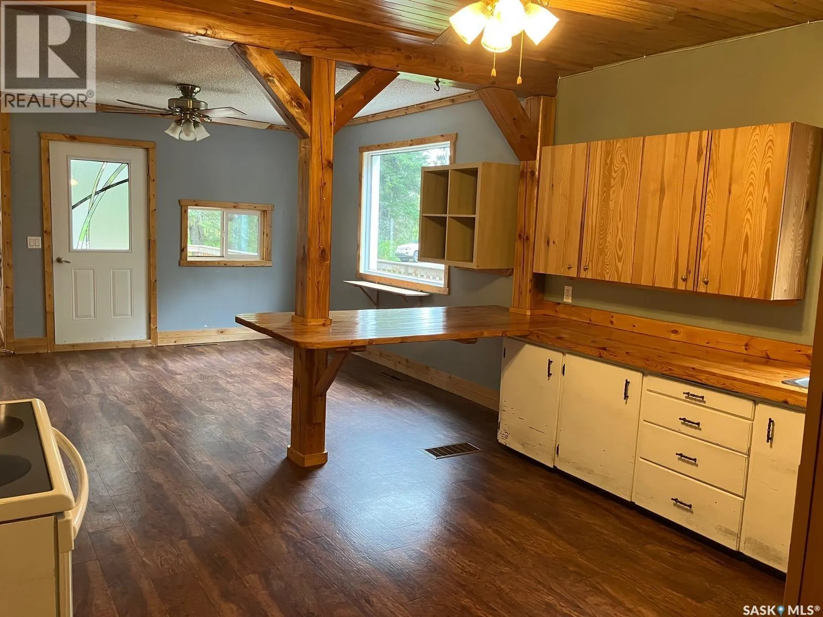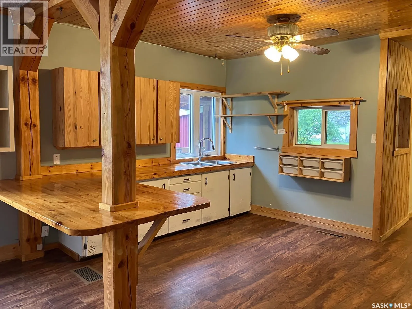 This cabin-like property at 303 1st Ave N in Garrick, SK offers the open concept 1-bedroom studio living with charming pine accents. Wheel chair access, with the covered ramp to the deck, large porch area, open concept kitchen/dining area with the beautiful peninsula. Upgrades include PVC windows, vinyl plank flooring, roofing. Located on a large 0.46 acre lot, this 992 sq ft home is perfect getaway or can be a great place to retire. Located in zone 50, the area is known for its great hunting. Easy access to snowmobiling, atv, skiing trails and more. Garrick is about a 25 min drive to Nipawin where you can launch your boat at the Regional Park into the Saskatchewan River / Tobin Lake. Tobin Lake is known for its world class fishing, producing trophy size Walleye and Northern Pike. Garrick is also close to highway 106 (Hanson Lake Road) leading to Narrow Hills Provincial Park accessing numerous trout lakes. Come and enjoy the outdoors paradise! (id:27476)