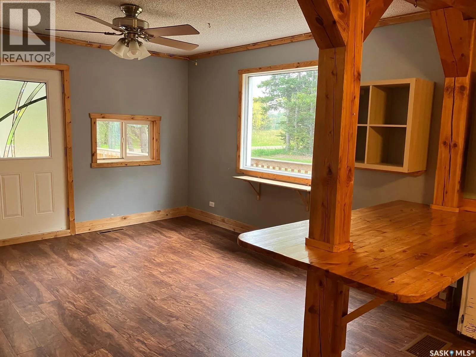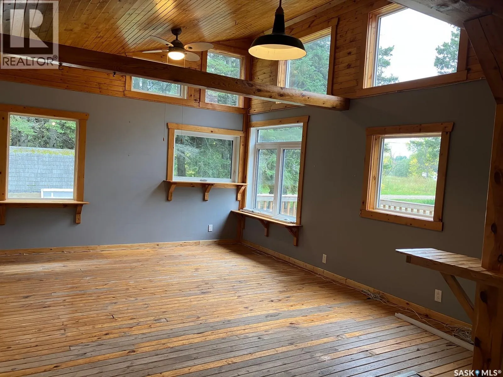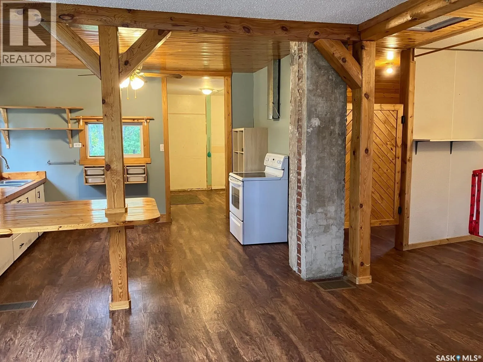 This cabin-like property at 303 1st Ave N in Garrick, SK offers the open concept 1-bedroom studio living with charming pine accents. Wheel chair access, with the covered ramp to the deck, large porch area, open concept kitchen/dining area with the beautiful peninsula. Upgrades include PVC windows, vinyl plank flooring, roofing. Located on a large 0.46 acre lot, this 992 sq ft home is perfect getaway or can be a great place to retire. Located in zone 50, the area is known for its great hunting. Easy access to snowmobiling, atv, skiing trails and more. Garrick is about a 25 min drive to Nipawin where you can launch your boat at the Regional Park into the Saskatchewan River / Tobin Lake. Tobin Lake is known for its world class fishing, producing trophy size Walleye and Northern Pike. Garrick is also close to highway 106 (Hanson Lake Road) leading to Narrow Hills Provincial Park accessing numerous trout lakes. Come and enjoy the outdoors paradise! (id:27476)