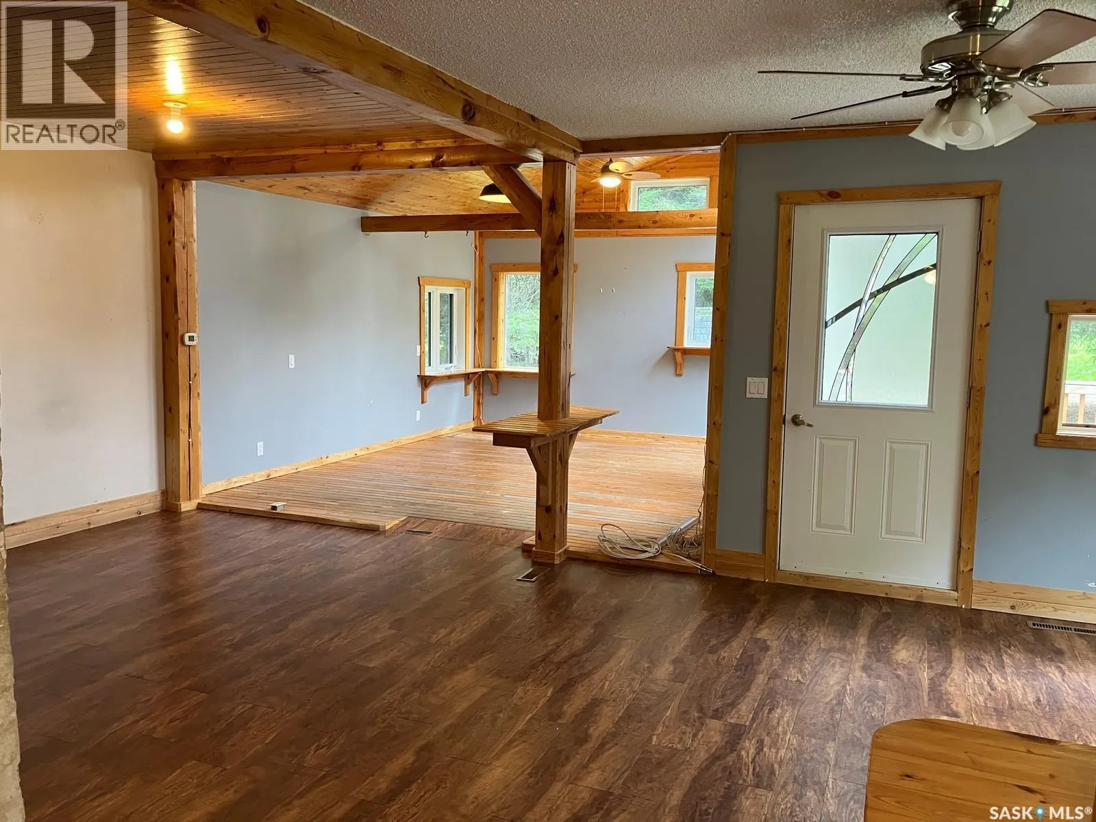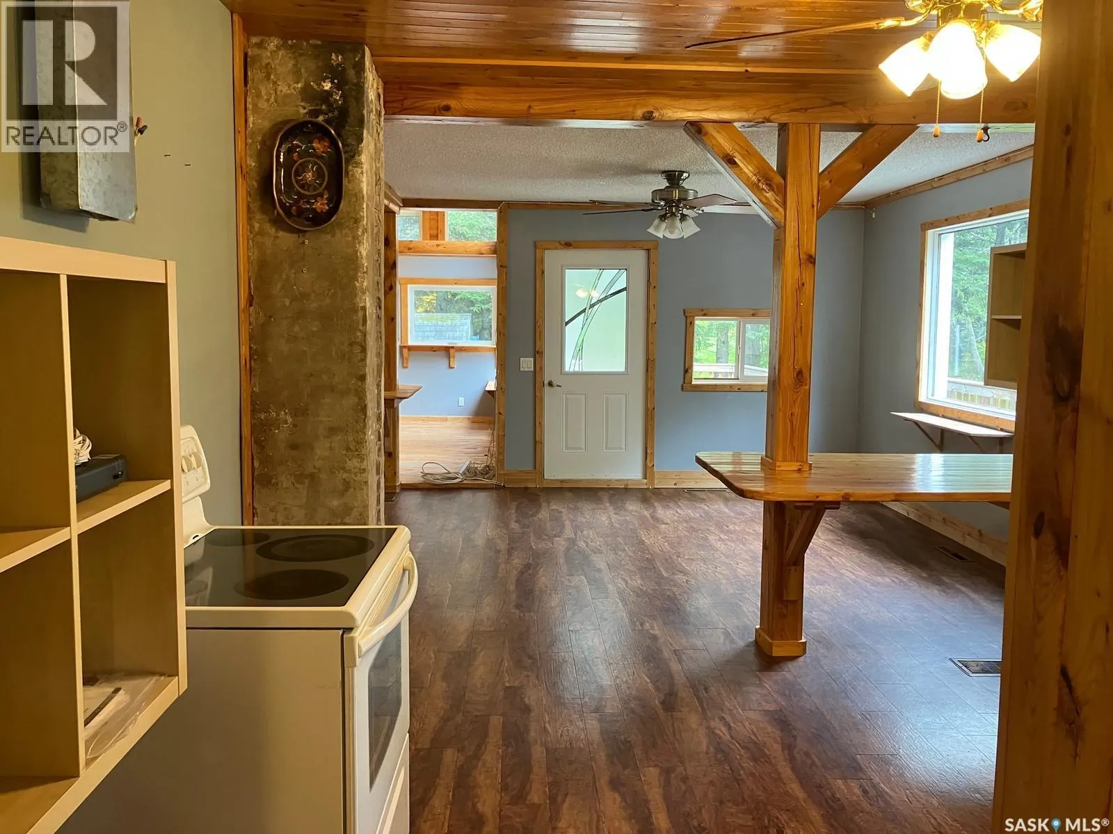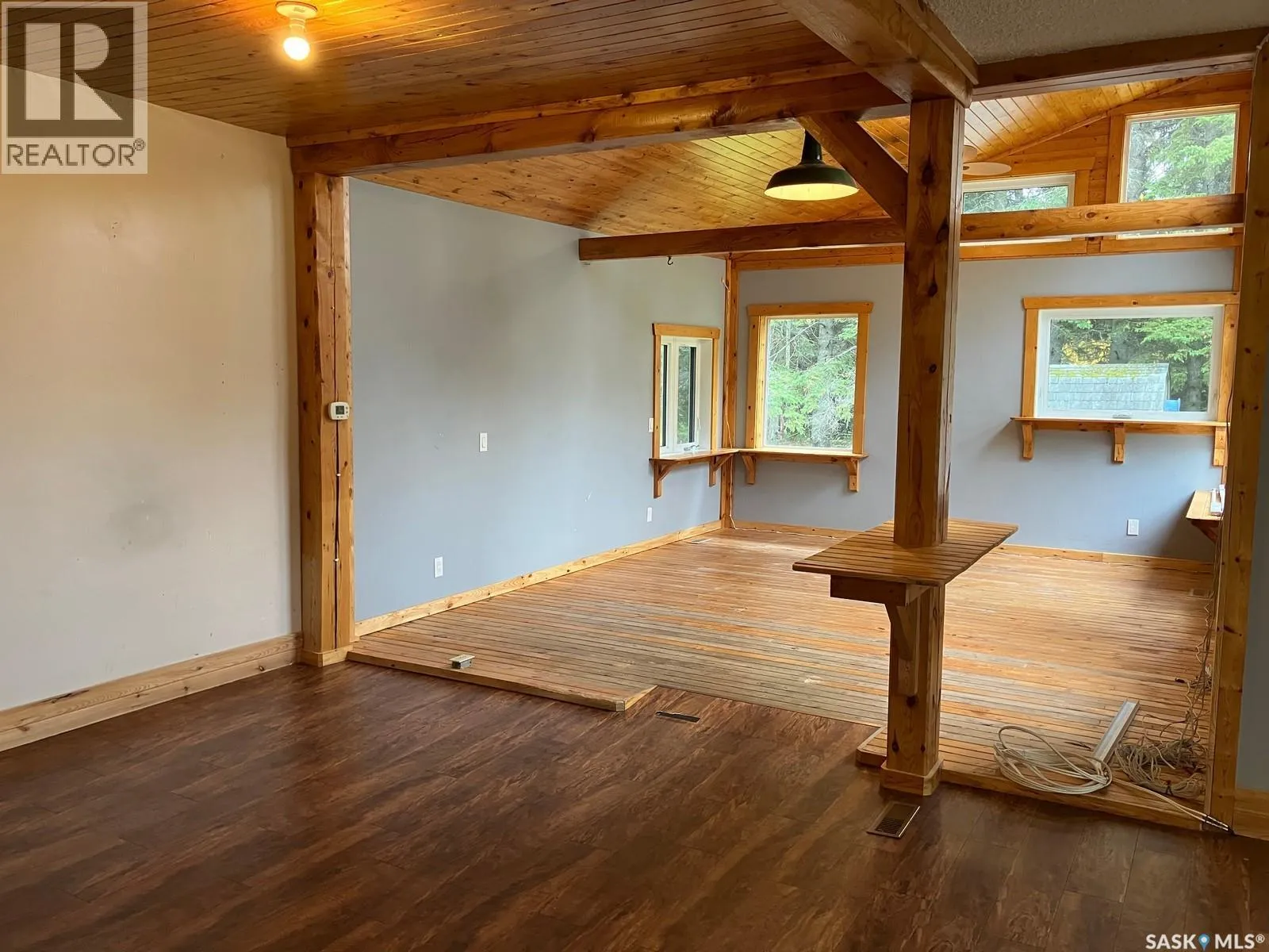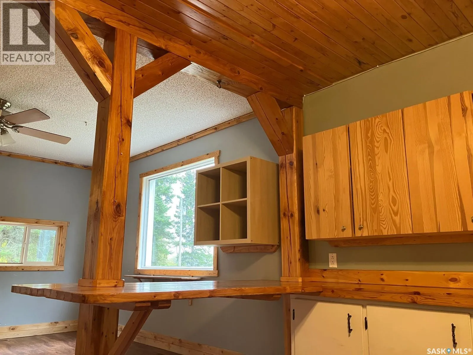 This cabin-like property at 303 1st Ave N in Garrick, SK offers the open concept 1-bedroom studio living with charming pine accents. Wheel chair access, with the covered ramp to the deck, large porch area, open concept kitchen/dining area with the beautiful peninsula. Upgrades include PVC windows, vinyl plank flooring, roofing. Located on a large 0.46 acre lot, this 992 sq ft home is perfect getaway or can be a great place to retire. Located in zone 50, the area is known for its great hunting. Easy access to snowmobiling, atv, skiing trails and more. Garrick is about a 25 min drive to Nipawin where you can launch your boat at the Regional Park into the Saskatchewan River / Tobin Lake. Tobin Lake is known for its world class fishing, producing trophy size Walleye and Northern Pike. Garrick is also close to highway 106 (Hanson Lake Road) leading to Narrow Hills Provincial Park accessing numerous trout lakes. Come and enjoy the outdoors paradise! (id:27476)