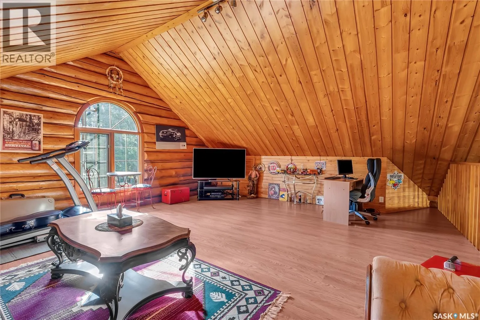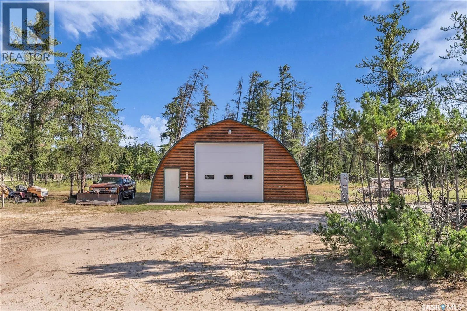 Stunning Log Home on Dream Acreage! This exceptional log home is ideally located just 11 km from Nipawin, nestled on 5 picturesque acres that back onto crown land and are only 2 kilometers from the river. Itâs a perfect haven for outdoor enthusiasts, whether you enjoy golfing, fishing, hunting, quadding, or skidooing. The property features a beautiful log home with a vaulted ceiling as you enter into this home through the garden doors that open to an inviting great room, where you can soak in gorgeous views and cozy up by the gas fireplace with a cup of hot chocolate. The U-shaped kitchen is equipped with newer stainless appliances, abundant cabinets, and bar stools, making it great for entertaining guests. On the main floor, youâll find a spacious primary bedroom with ample closet space, a luxurious 4-piece bath featuring a jacuzzi tub and separate shower, as well as convenient laundry and additional storage. Upstairs, a huge loft offers the potential for two additional bedrooms or can serve as a spacious TV/recreation area or office. Additionally, thereâs a 32 x 40 heated shop with a 14-foot overhead door for all your hobbies and projects. The outdoor space includes a large fountain surrounded by rocks, creating a serene retreat. This rare and one-of-a-kind property was built in 2000. Donât miss your chance to own this dream acreageâact now and make it yours! One shed is excluded. (id:27476)