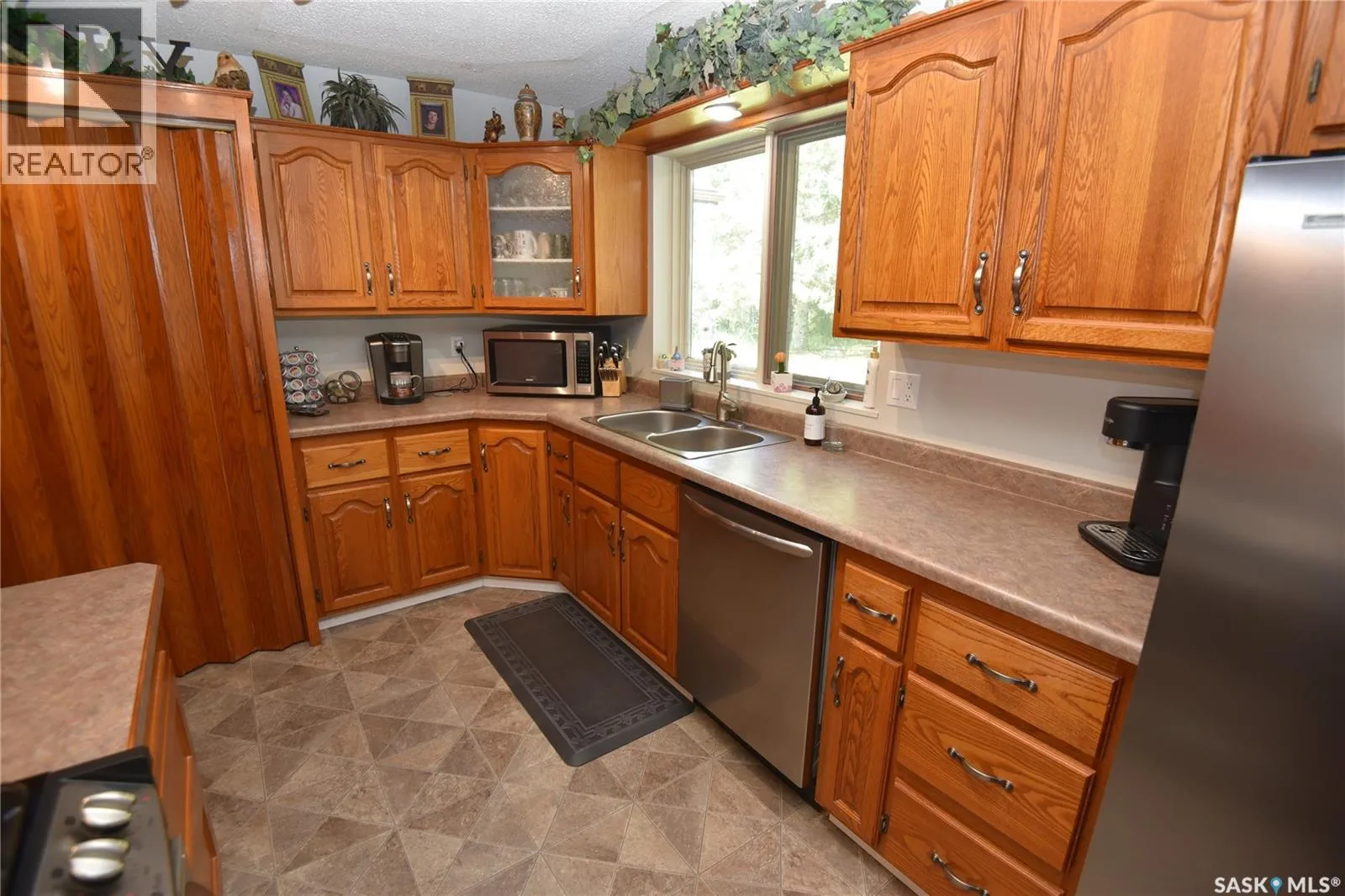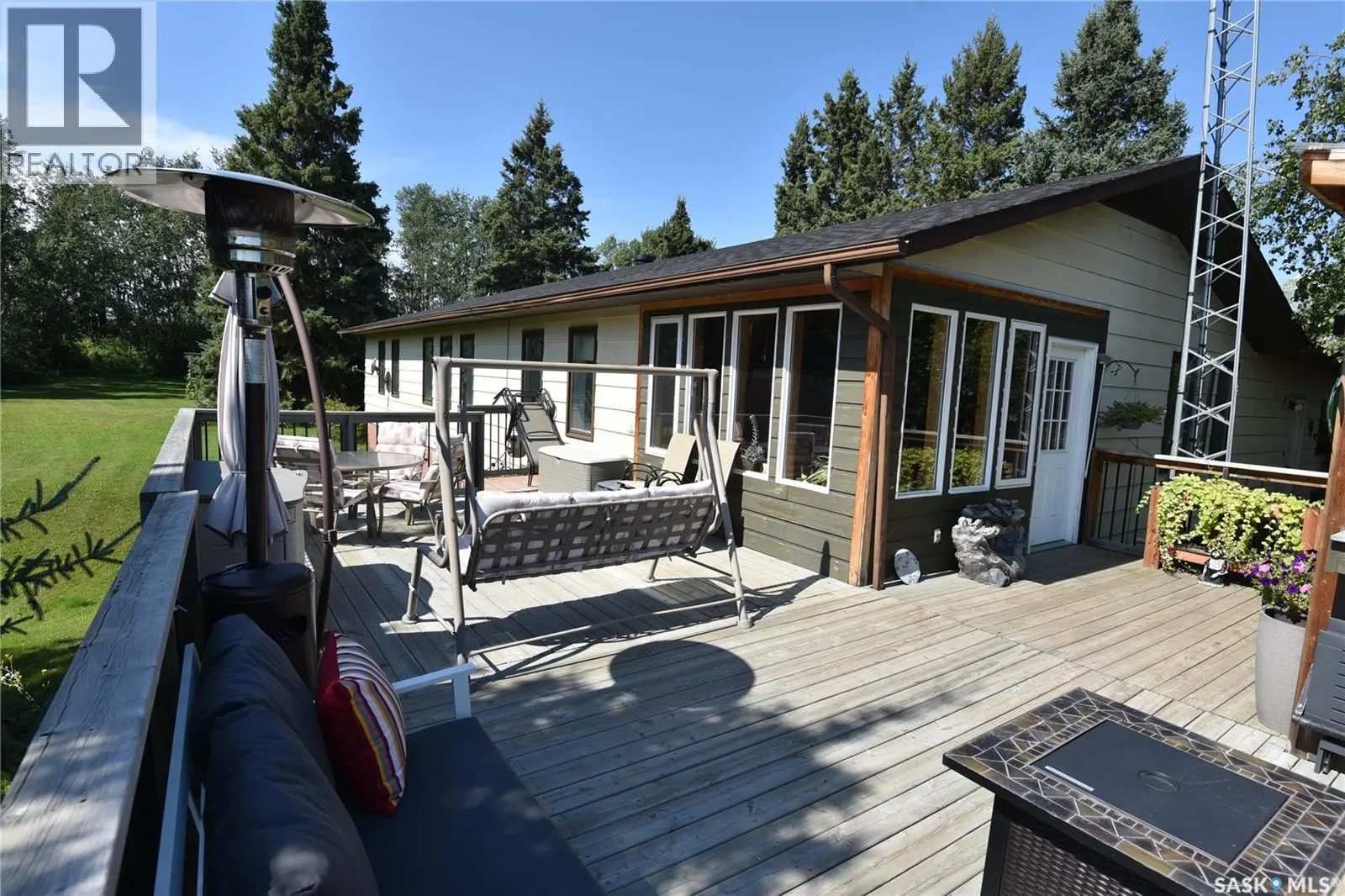 Have you been searching for an acreage with the convenient amenities, the privacy and maturity that evoke all the right feelings? Attention gardeners, hunters and outdoor enthusiasts. This acreage has been lovingly owned by the same family for over 40 years. Plenty of scenic vistas, fruit bearing trees and a maturity that only the passing of time can conjure up. Located only 12 miles from the Town of Nipawin and 8 miles from the Village of White fox, this property is the kind of place to make lasting memories with your family. You'll appreciate the space inside the large bungalow home sitting atop a concrete walkout basement with a deck that overlooks the beautiful green space below. Large kitchen and dining areas conveniently located only footsteps away from the privacy of your outdoor oasis. There is also a 2 piece bath conveniently located off the entrance to the attached 24x28 garage. Currently configured with 4 bedrooms and 3 baths with enough space to add if desired. There is also a separate entry to the basement via the walkout, plenty of space here for a bed and breakfast or basement suite. Need some shop space for your toys and equipment? You'll love the 32 x 36 detached shop with concrete in floor heat and 12' ceilings. Other outbuildings include your very own 24x48 greenhouse with optional heat and 5 storage sheds. Other features include 60' deep well, surface disposal of grey water and natural gas. This one will check many of the discerning buyers boxes. Call today for a list of recent updates and arrange your showing of this one of a kind property. You'll be glad you did! (id:27476)