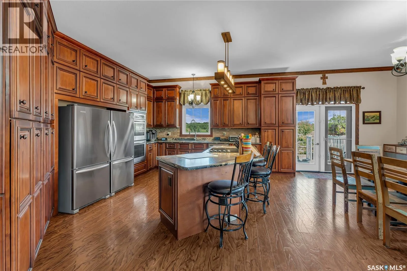 Welcome to the Barndominium at Turtle River â 159 acres of Saskatchewan countryside offering upscale rural living, income potential, and endless recreation. Just 14 km from Edam (home to a K-12 school only 14 km away, with bus pickup right at your door) and 62 km from North Battleford, this gently rolling property includes 90 cultivated acres currently rented out for income, with the remainder in pasture, bush, and the scenic Turtle River. At the heart of the property is a custom-built 3,060 sq. ft. barndominium (2013) with an ICF block foundation, in-floor heating, and durable metal siding and roof. Inside, soaring 10â ceilings, a rustic stone fireplace, and solid fir interior doors and trim add warmth and character. The chefâs kitchen boasts two built-in ovens and two full-sized refrigeratorsâperfect for entertaining. Three spacious bedrooms each have walk-in closets, with the primary suite offering an elegant ensuite and a patio door leading to a private deck. An additional sitting room provides another comfortable space to relax, which could easily double as an extra bedroom if needed. Connected to the home is a 2,940 sq. ft. heated shop with a three-car garage and RV bay. The landscaped 3-acre yard includes a two-tier deck, orchard with multiple fruit trees, fire pit, three garden plots, a 100-yard shooting range, and a hunting blindâmaking it an ideal hunting lodge or retreat. With a deep well, propane heat, septic system, and new air conditioning, the Barndominium at Turtle River blends comfort, privacy, and nature into one exceptional package. This isnât just a homeâitâs a lifestyle. Here, you can grow your own food in the gardens and orchard, watch deer and other wildlife wander through your yard, and breathe in the fresh country air. Spend your days surrounded by natureâs beauty, and your evenings taking in the peace and quiet you truly deserve. Book your private showing today and experience everything this incredible property has to offer. (id:27476)