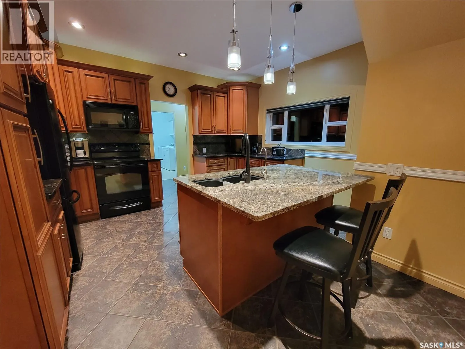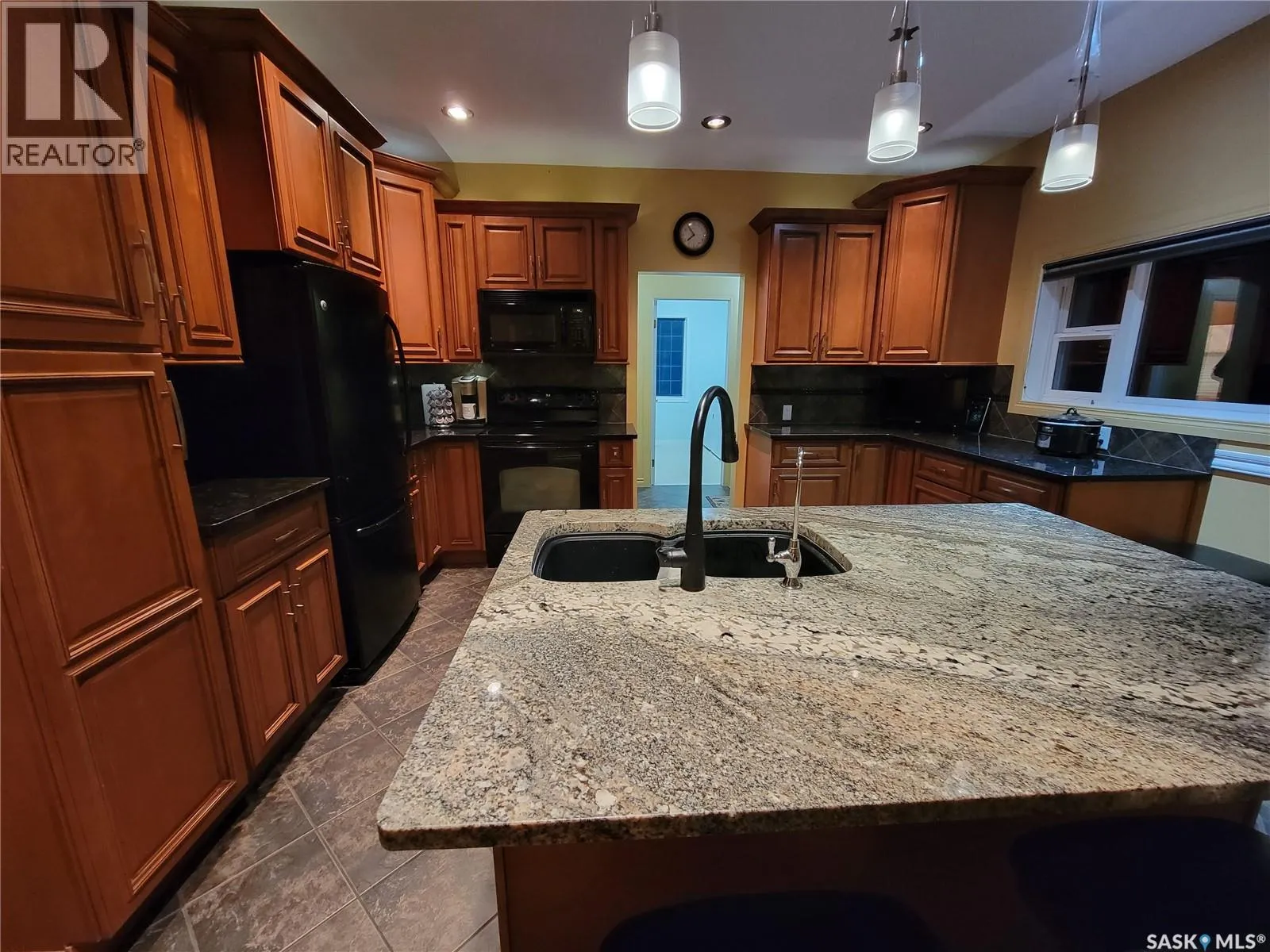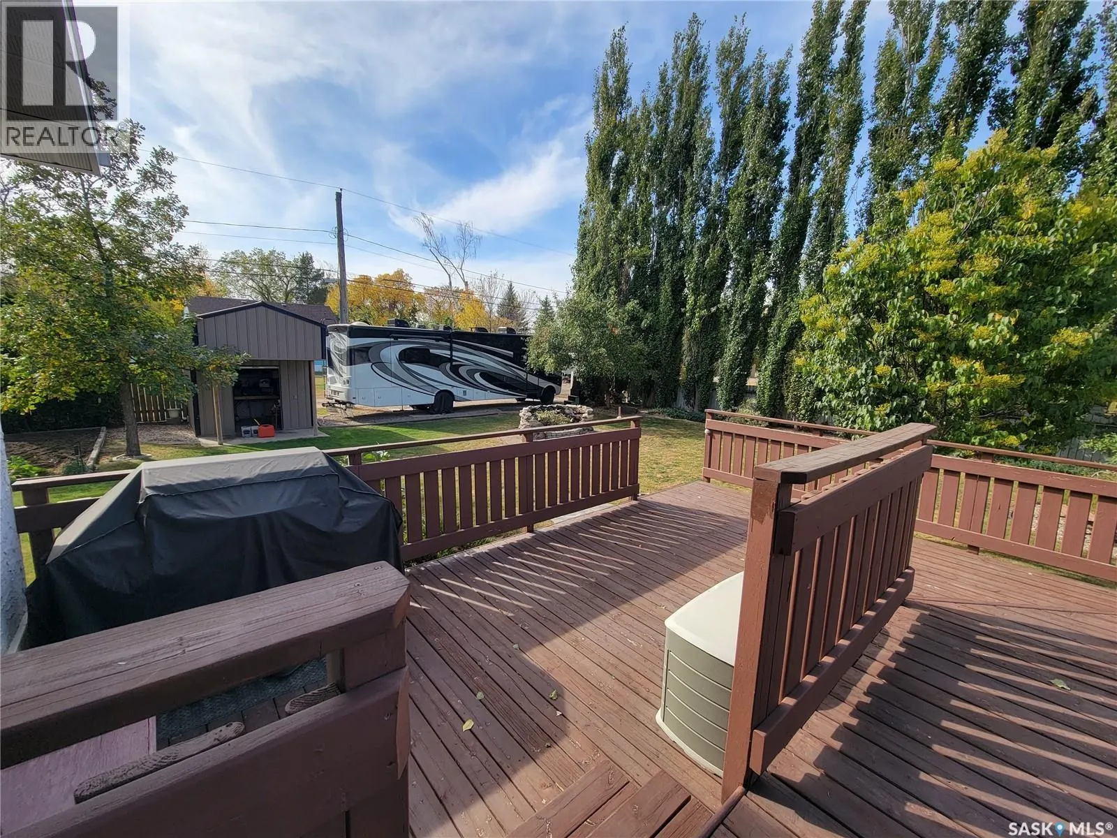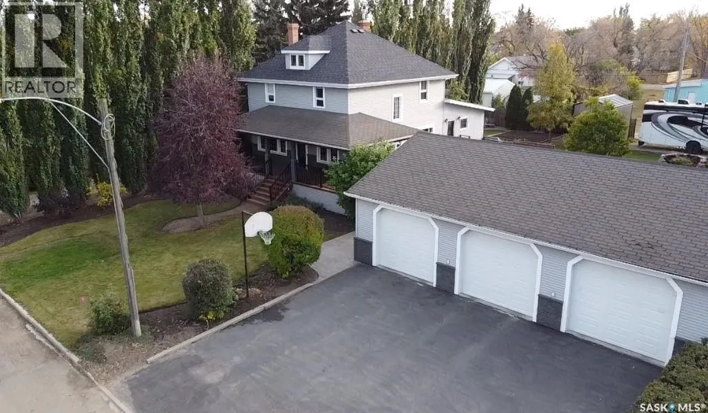 This home blends timeless architectural charm with modern comfort. Originally the Oatway homestead, it was moved into Unity and placed on a new foundation in 2002, carefully revitalized to preserve its heritage. Set on a double lot, youâll enjoy both community living and a country feel. Outdoors is a gardenerâs paradise with mature trees, perennials, rock beds, garden plot, pond, firepit, and stamped concrete ground-level patio and walkways. A heated triple garage, triple-car asphalt driveway, RV parking, and garden shed add function and appeal. The wrap-around veranda with pot lighting leads to a spacious two-tiered deck. Inside, the home showcases rich wood tones throughout, starting with the beautifully appointed Chefâs Kitchen featuring plenty of cabinetry, granite countertops, island with prep sink, black appliance package, and accent lighting. The dining area with wood stove flows into a warm living room with hardwood floors, bay window, and cozy window seat. Main floor includes a 4-piece bath with double sinks, laundry room, and den. Upstairs offers three bedrooms and a 4-piece bath, including the generous primary suite with walk-in closet and private 2-piece bath. The basement, built in 2002 with 9-ft ceilings, provides a family room with gas fireplace and wet bar, bonus space, fourth bedroom, 3-piece bath, and utility room. Additional features: underground sprinklers, central air, central vac, water softener, natural gas heating, 100-amp panel, and RV outlet. A rare blend of history, architectural elegance, and modern functionâready to call yours. Book your showing today! Seller states 2025 property taxes are under $2500. Awaiting documentation to verify 2025 property tax amount and it will be updated within a few days (id:27476)