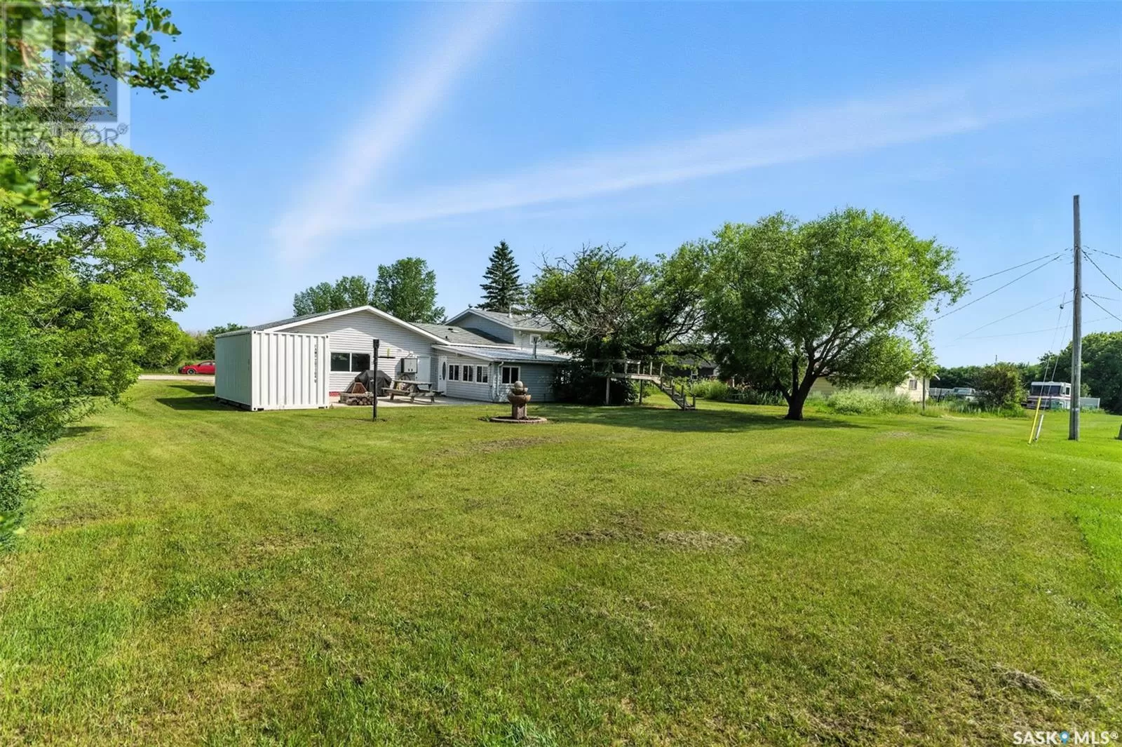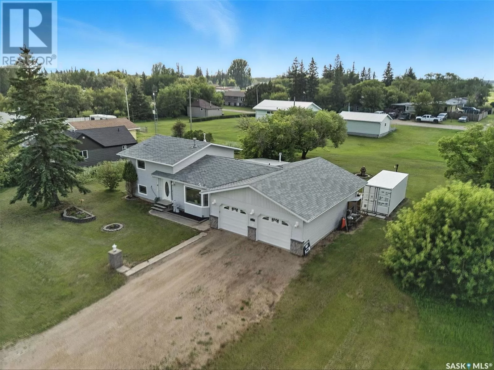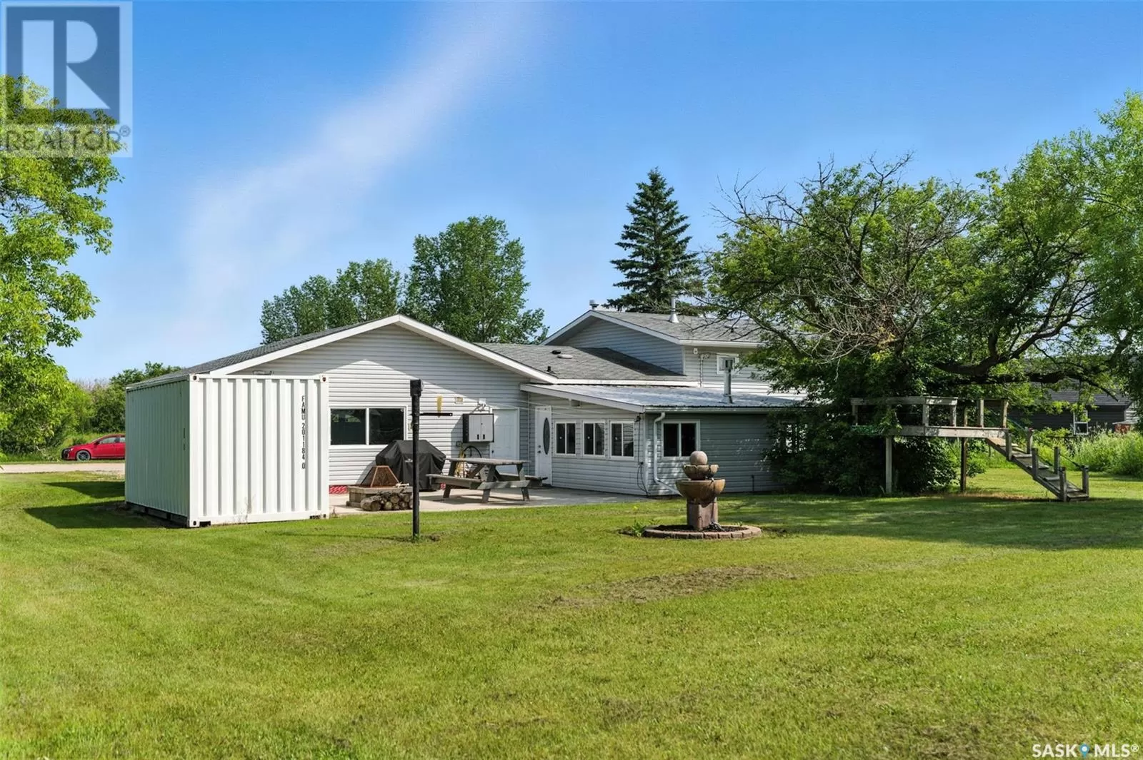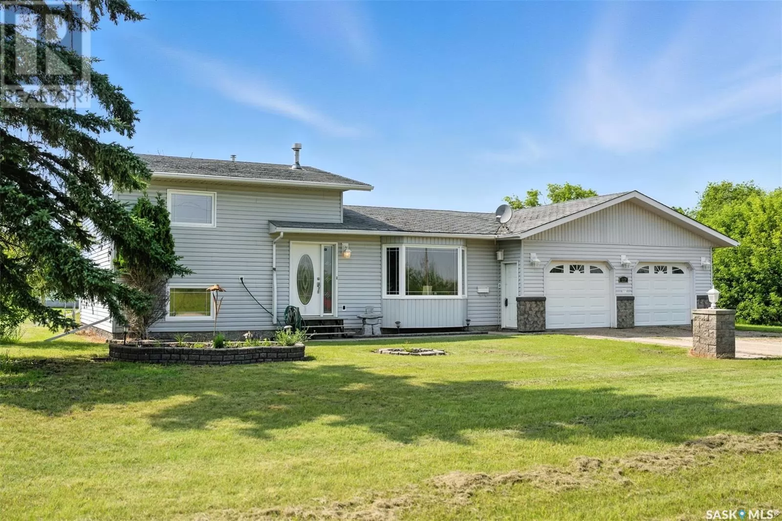Looking for acreage living with town convenience? This beautifully updated home in the hamlet of Guernsey is located on a double lot (almost 1/2 acre!) and is on municipal water and sewer. As you pull up, you'll notice the park like yard and the nicely kept exterior. Step in the front door to a foyer accessing the living room, which boasts hardwood floor and a gas fireplace. Kitchen is a cook's dream with tons of cupboards for work space and storage, granite counters, and stainless appliances. Down 2 steps is the former sunporch that has been finished and winterized with a gas stove for ambience. Upstairs is the primary bedroom, a full bath, and second bedroom. Basement is finished with an "office" (currently set up as bedroom) and a workshop that could easily be converted back to a 3rd bedroom. Laundry in the utility room plus some storage space completes the lower level. The double attached garage is fully insulated and heated with tons of room to park 2 vehicles and space to work on your latest project or store toys. Off the family room is a patio with natural gas bbq hookup. The yard has tons of room to play add another garage or granny pod. Watch the sun rise from the comfort of your front room. Guernsey is close to mining (Nutrien Lanigan, BHP Jansen or Mosaic Colonsay), just minutes from Lanigan and an easy drive to Humboldt. Call today for your viewing appointment! (id:27476)