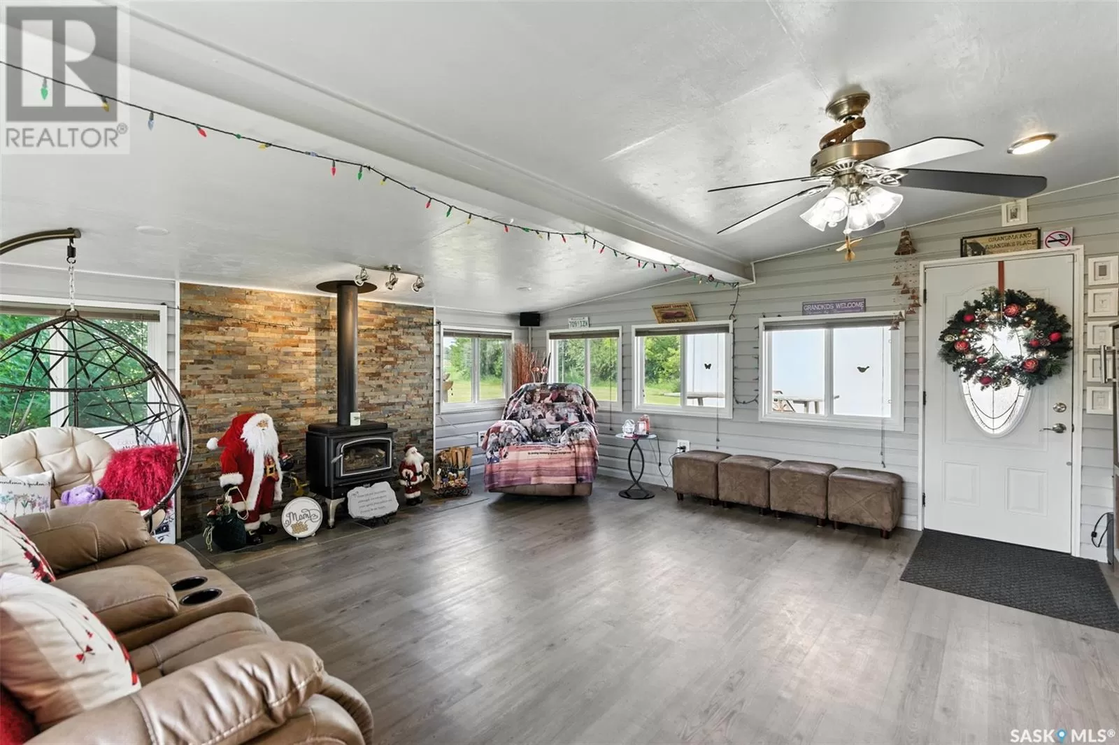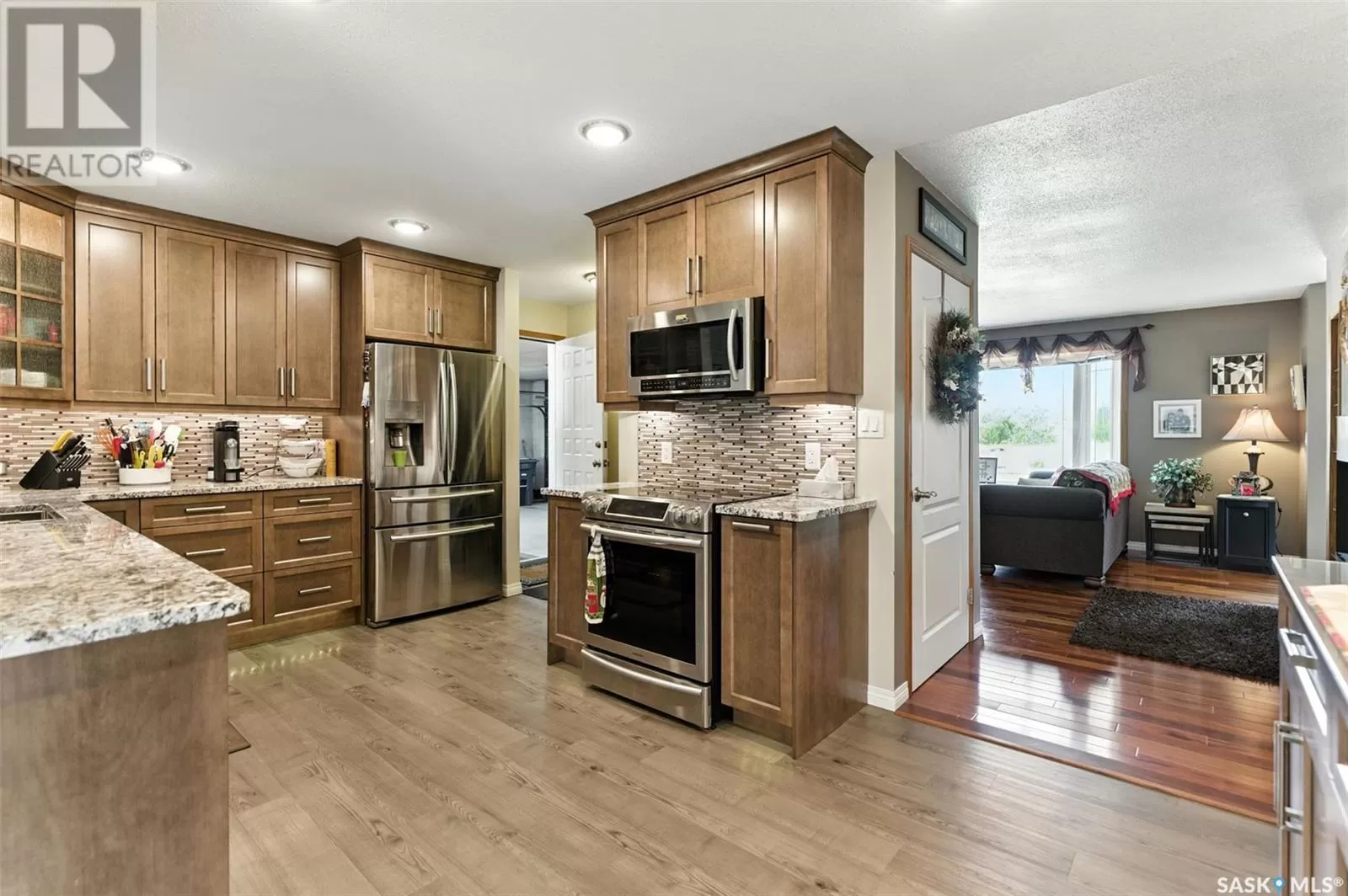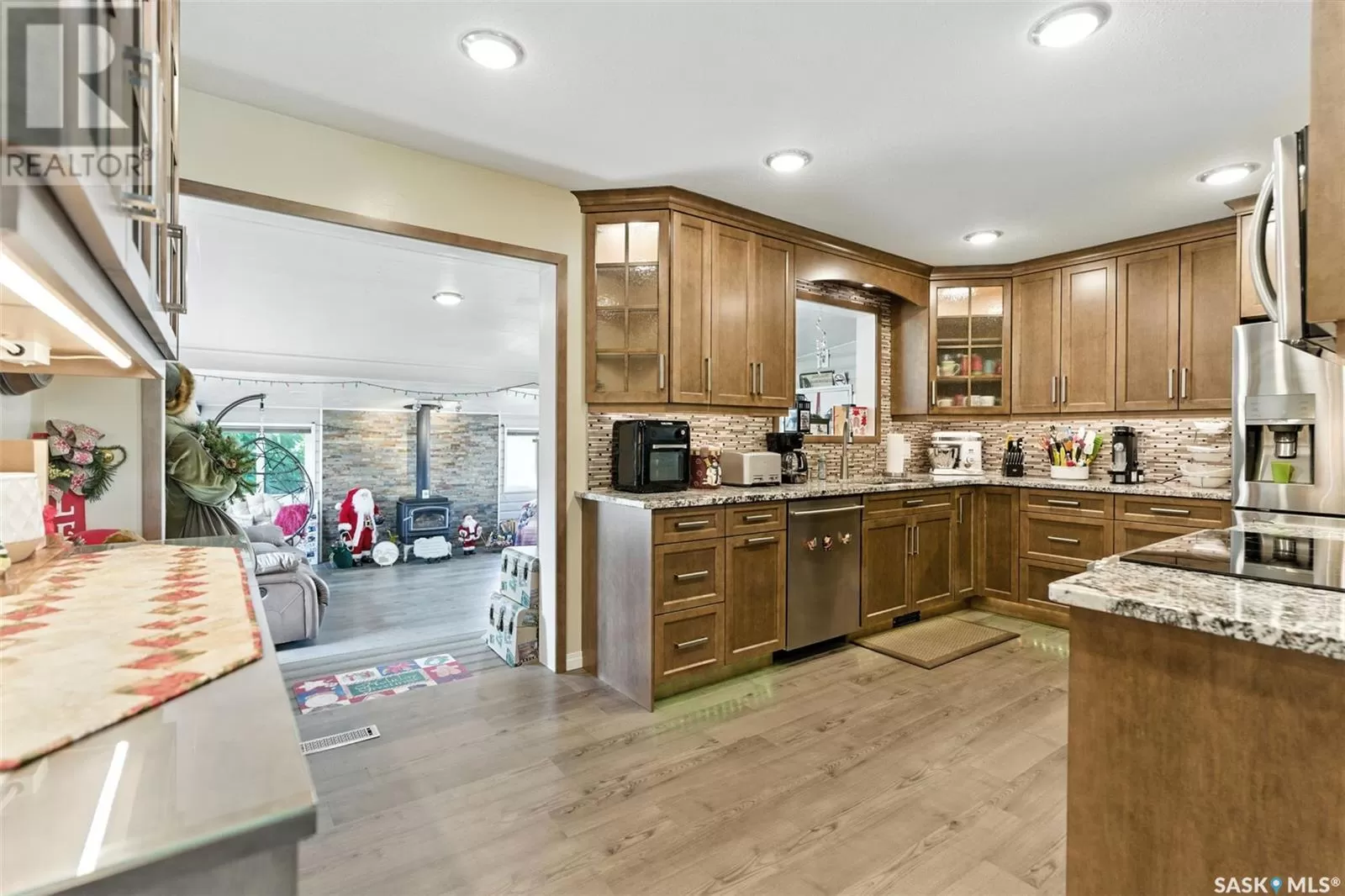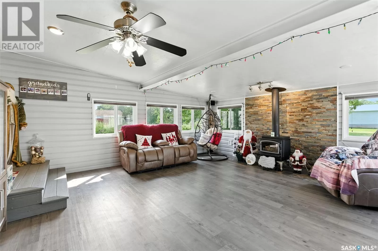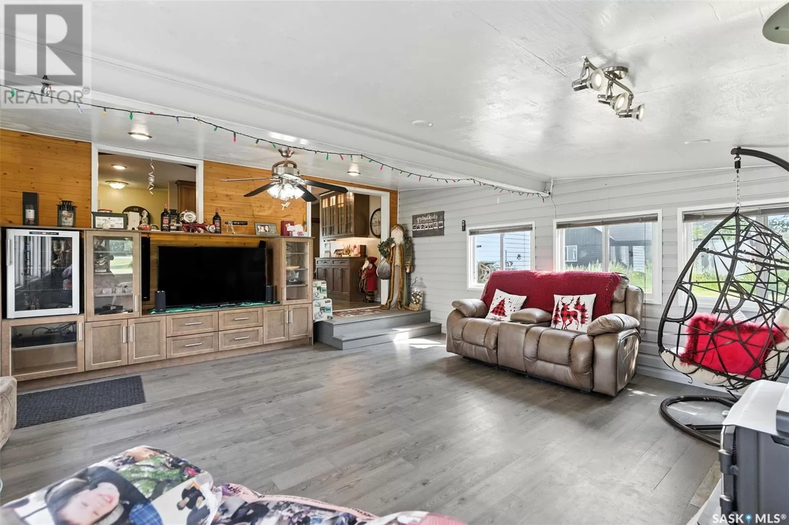Looking for acreage living with town convenience? This beautifully updated home in the hamlet of Guernsey is located on a double lot (almost 1/2 acre!) and is on municipal water and sewer. As you pull up, you'll notice the park like yard and the nicely kept exterior. Step in the front door to a foyer accessing the living room, which boasts hardwood floor and a gas fireplace. Kitchen is a cook's dream with tons of cupboards for work space and storage, granite counters, and stainless appliances. Down 2 steps is the former sunporch that has been finished and winterized with a gas stove for ambience. Upstairs is the primary bedroom, a full bath, and second bedroom. Basement is finished with an "office" (currently set up as bedroom) and a workshop that could easily be converted back to a 3rd bedroom. Laundry in the utility room plus some storage space completes the lower level. The double attached garage is fully insulated and heated with tons of room to park 2 vehicles and space to work on your latest project or store toys. Off the family room is a patio with natural gas bbq hookup. The yard has tons of room to play add another garage or granny pod. Watch the sun rise from the comfort of your front room. Guernsey is close to mining (Nutrien Lanigan, BHP Jansen or Mosaic Colonsay), just minutes from Lanigan and an easy drive to Humboldt. Call today for your viewing appointment! (id:27476)