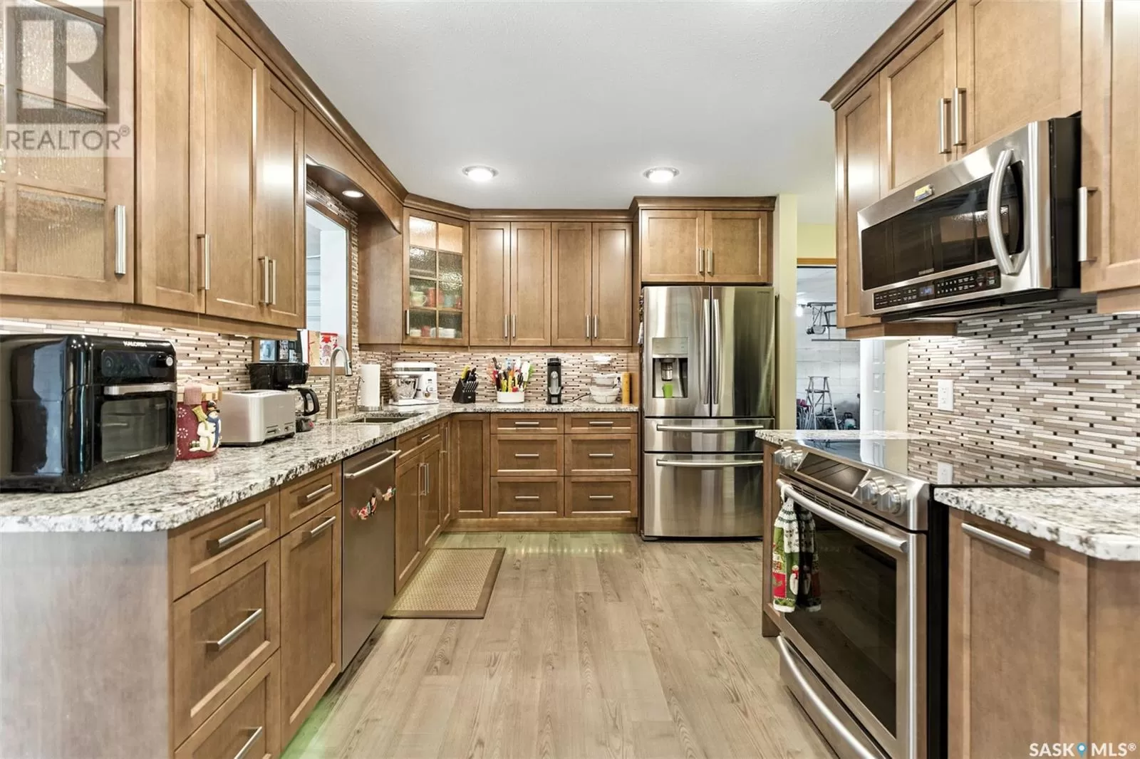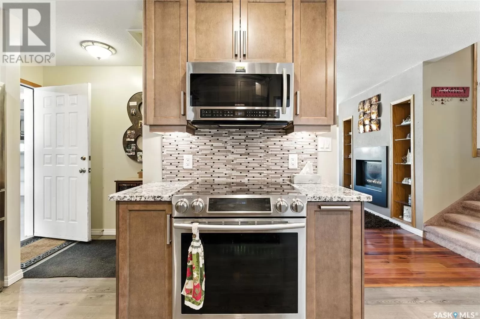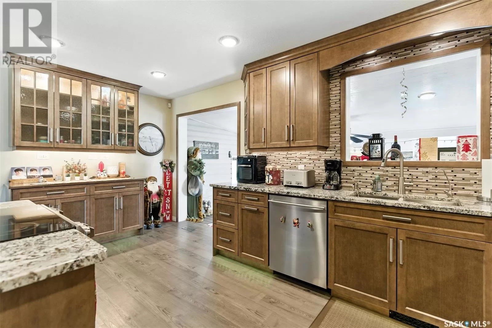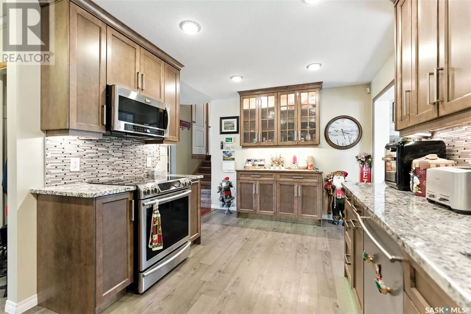 Looking for acreage living with town convenience? This beautifully updated home in the hamlet of Guernsey is located on a double lot (almost 1/2 acre!) and is on municipal water and sewer. As you pull up, you'll notice the park like yard and the nicely kept exterior. Step in the front door to a foyer accessing the living room, which boasts hardwood floor and a gas fireplace. Kitchen is a cook's dream with tons of cupboards for work space and storage, granite counters, and stainless appliances. Down 2 steps is the former sunporch that has been finished and winterized with a gas stove for ambience. Upstairs is the primary bedroom, a full bath, and second bedroom. Basement is finished with an "office" (currently set up as bedroom) and a workshop that could easily be converted back to a 3rd bedroom. Laundry in the utility room plus some storage space completes the lower level. The double attached garage is fully insulated and heated with tons of room to park 2 vehicles and space to work on your latest project or store toys. Off the family room is a patio with natural gas bbq hookup. The yard has tons of room to play add another garage or granny pod. Watch the sun rise from the comfort of your front room. Guernsey is close to mining (Nutrien Lanigan, BHP Jansen or Mosaic Colonsay), just minutes from Lanigan and an easy drive to Humboldt. Call today for your viewing appointment! (id:27476)