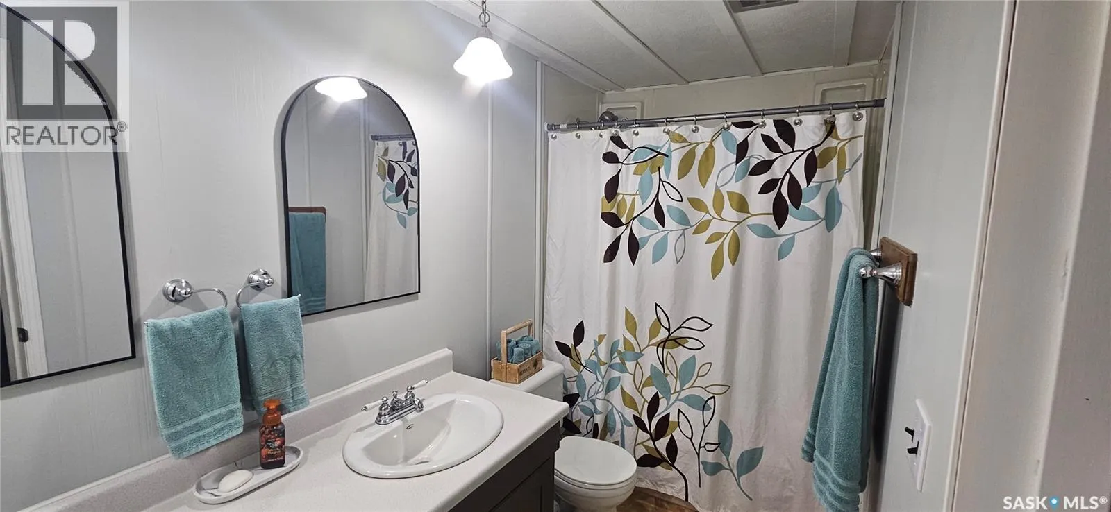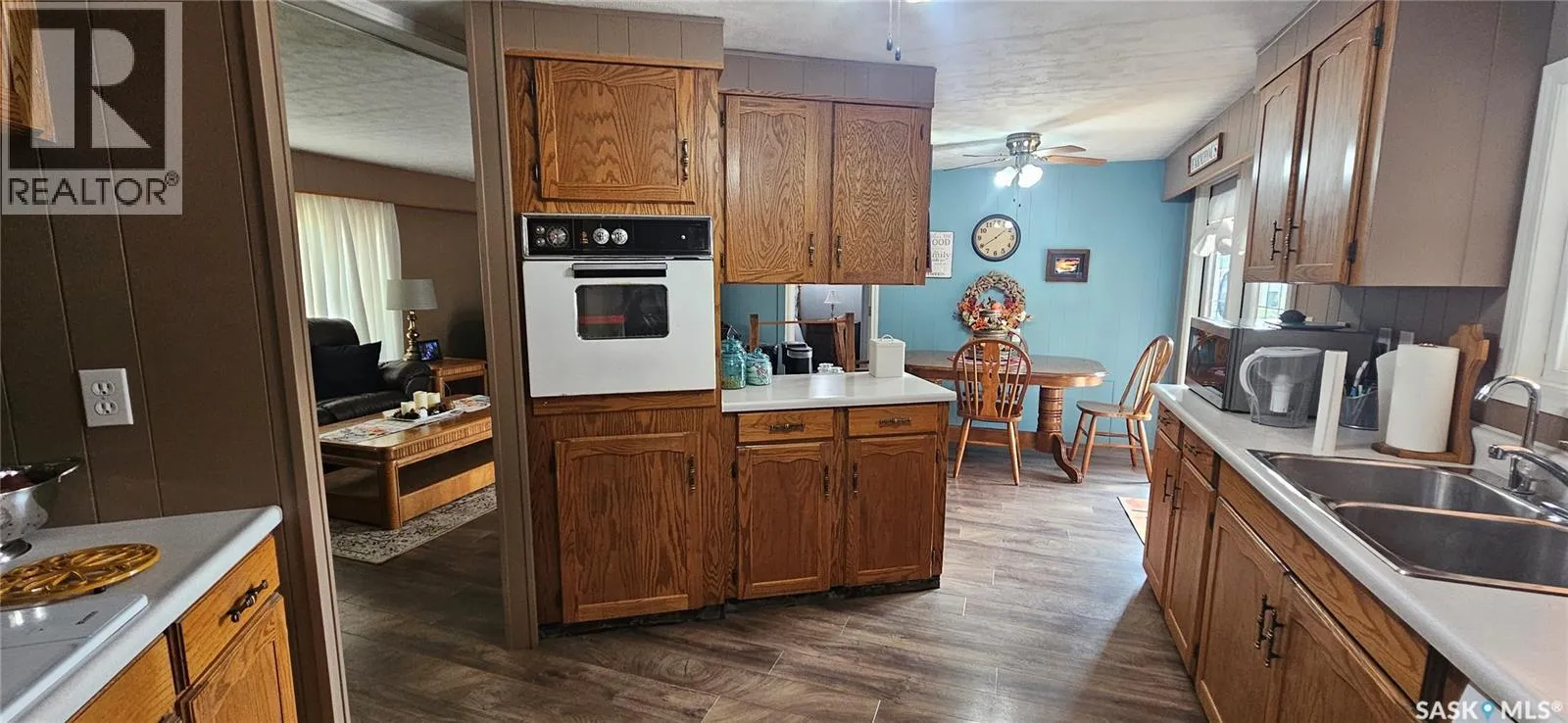 Enjoy small community living in the village of Vanguard with this beautiful 3 bed/ 2 bath mobile home with a full open basement, offering endless potential. This home has been well cared for, with many updates such as newer windows, doors and flooring. The kitchen offers a built- in oven, counter- top stove, and opens to the dining area with patio doors leading out to a covered deck. The spacious living room with with big front windows allows plenty of natural light and a view of the quiet street. The primary bedroom offers generous space with a step-up en-suite and expansive closet area while 2 more bedrooms give room for family and guests. A 4- piece bathroom, an office or bonus room, and the laundry area complete the main level. Outside you have the convenience of a double garage plus 8 lots, providing plenty of space for parking, storage, and outdoor entertainment. Vanguard has a K-12 school, Co-op, swimming pool, skating rink, library & post office. Call to book your personal showing . (id:27476)