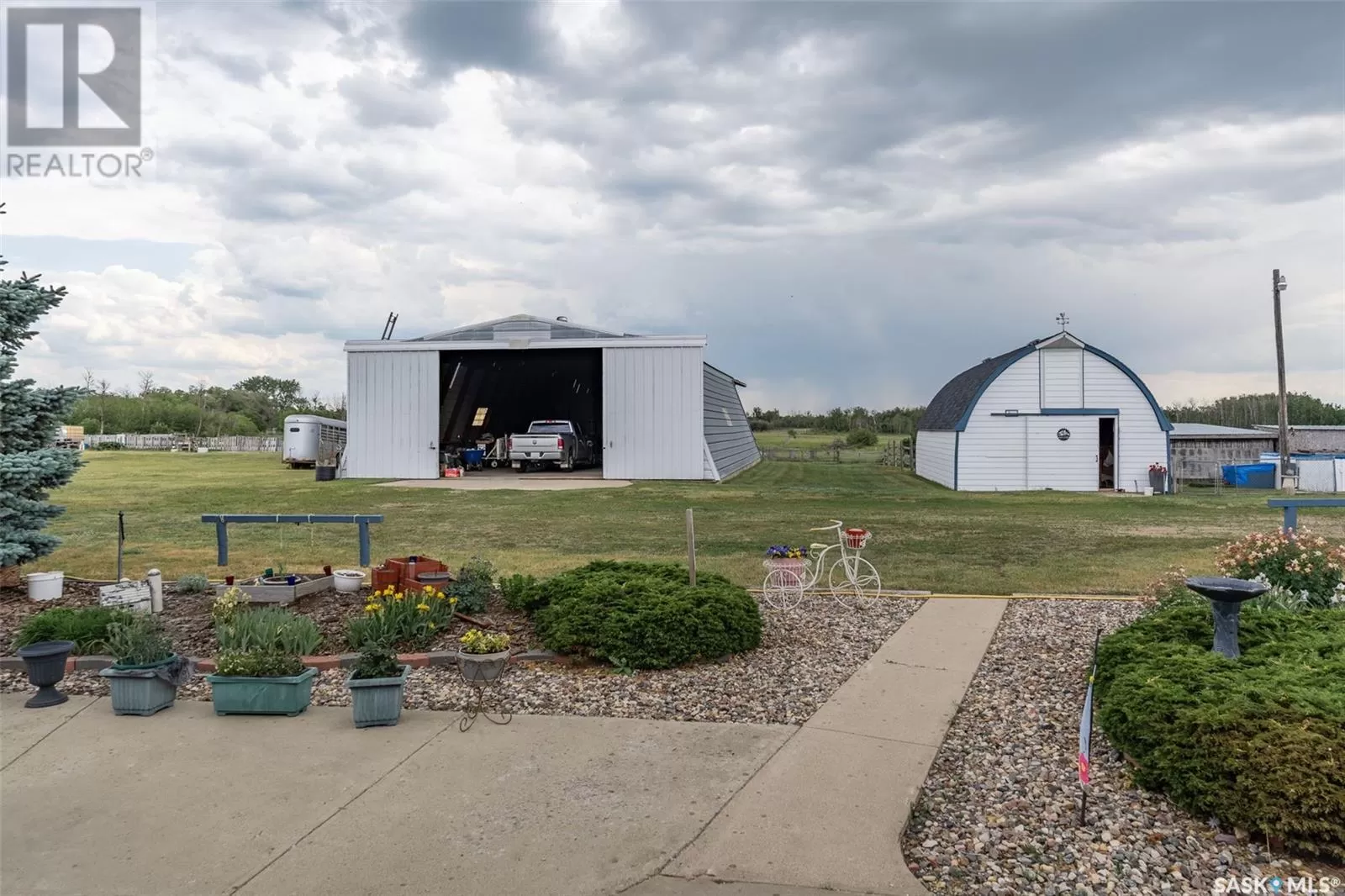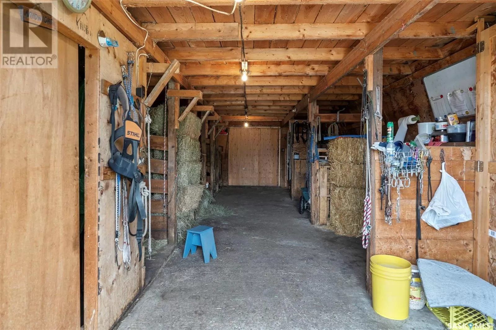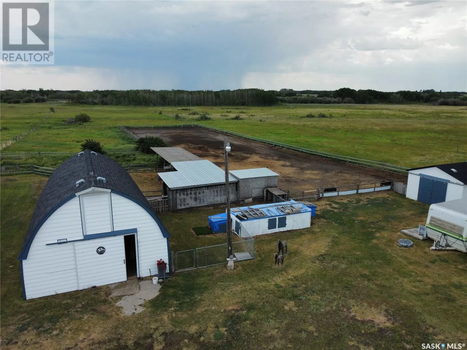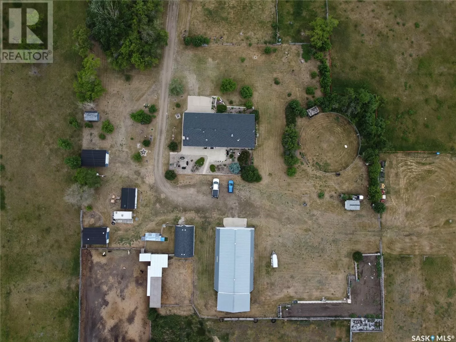 Private 55.92-Acre Retreat minutes from Saskatoon, Fully on PAVEMENT! This exceptional 55.92-acre property offers the perfect balance of space, privacy, and convenience, located just minutes from Saskatoon with pavement right to your driveway. No gravel roads, just smooth access year round. Set well back from the road, the 1,617 sq ft bungalow is surrounded by open skies and mature trees, with pride of ownership evident throughout. Bright, spacious, and move-in ready, itâs a peaceful place to call home. Perfect for horse enthusiasts or hobby farmers, the property includes a 40' x 66' Quonset with concrete floor, 2 barn's ,2 sheds, Welding Shop ,Multiple animal shelters in the pastures. Tack Shop and a round pen for all your horse needs. The land is fenced and cross-fenced, featuring two water bowls, a large garden, and a beautifully treed section with a private walking trail. A rare opportunity to enjoy acreage living with room to roam offering peace, functionality, and quick access to all Saskatoon amenities. (id:27476)