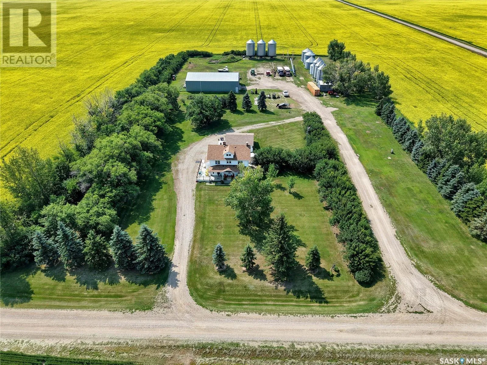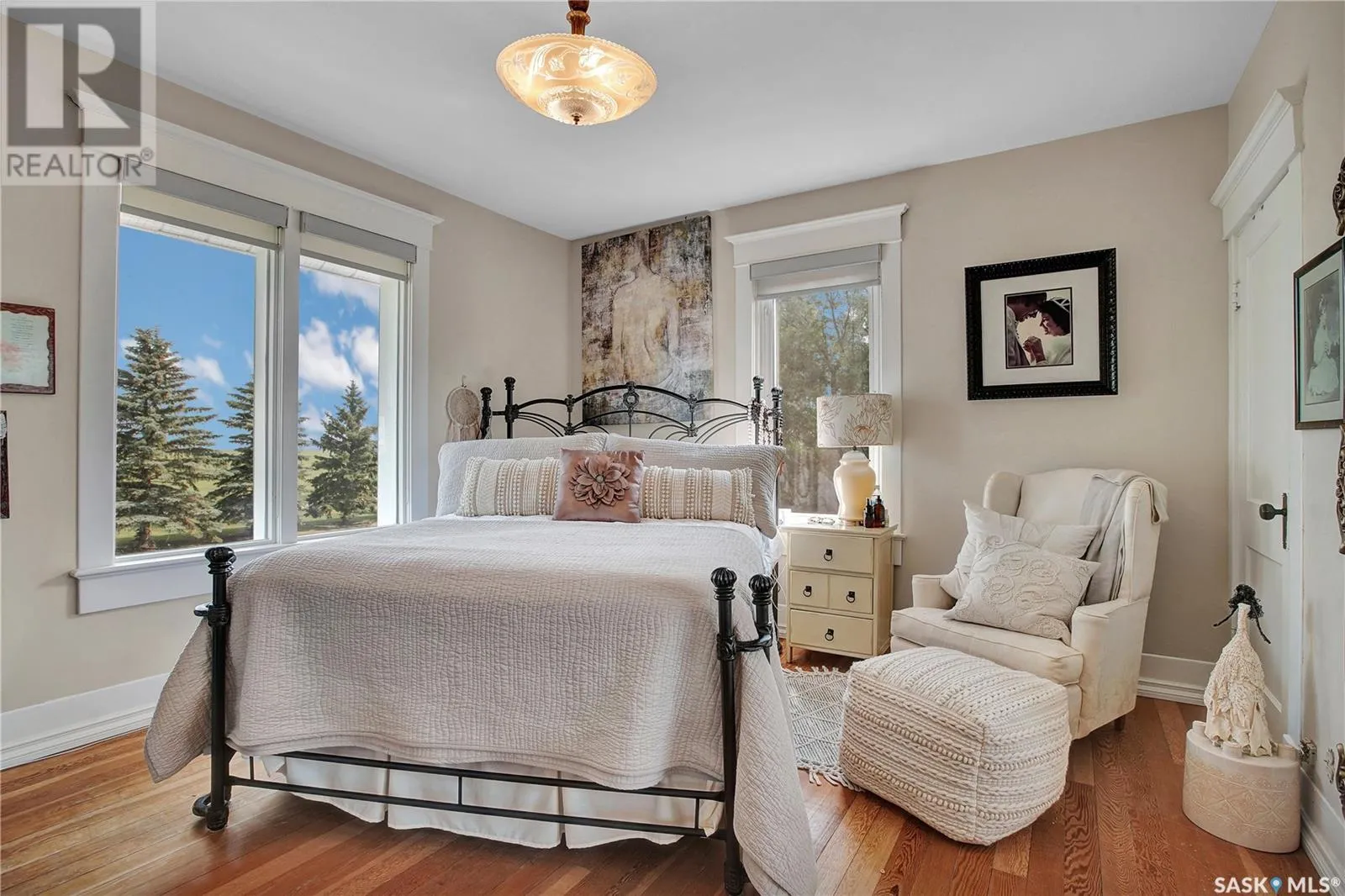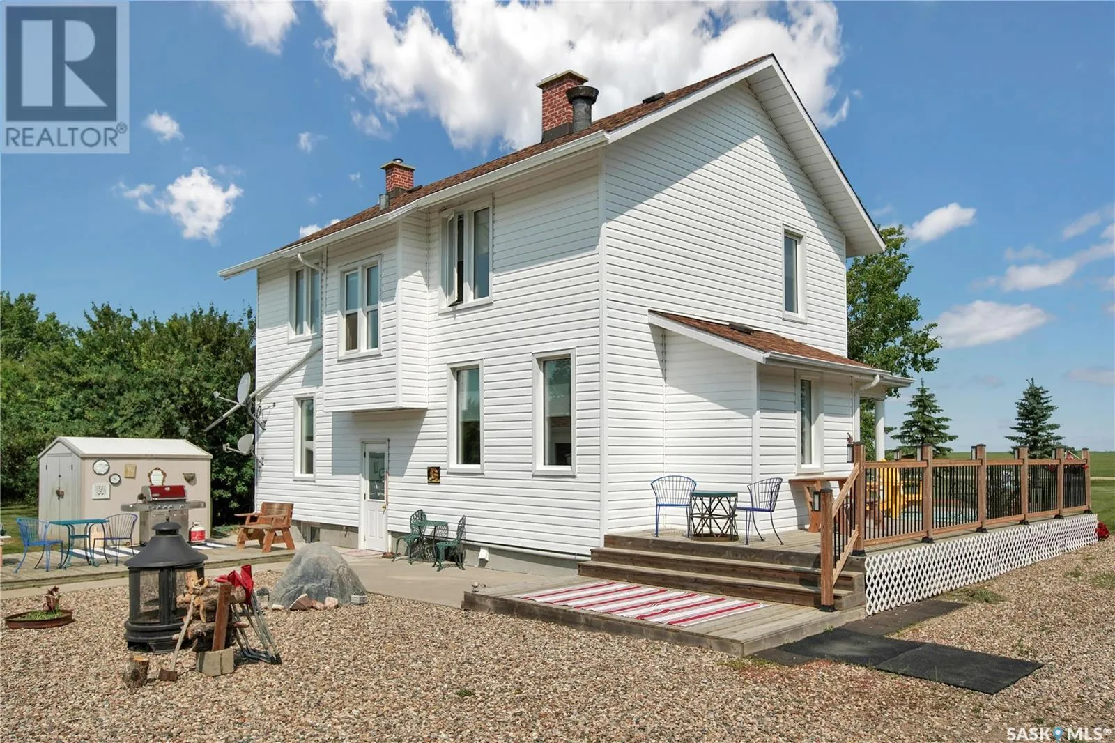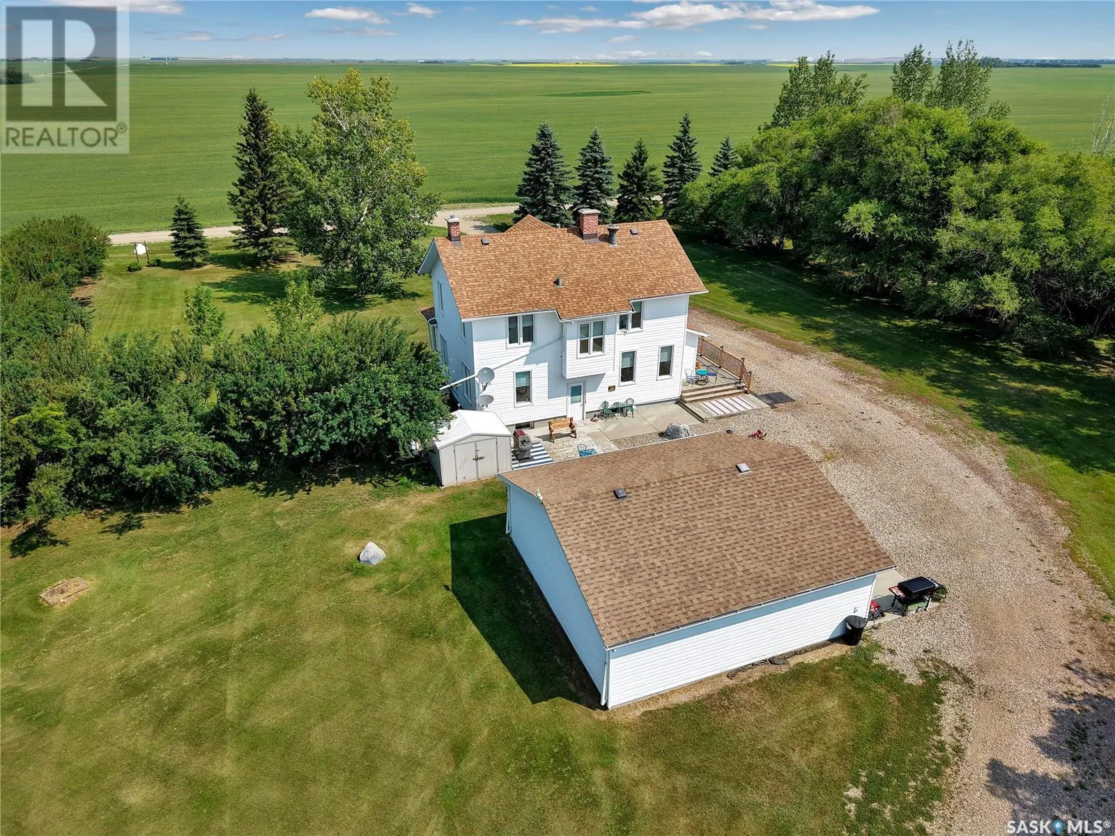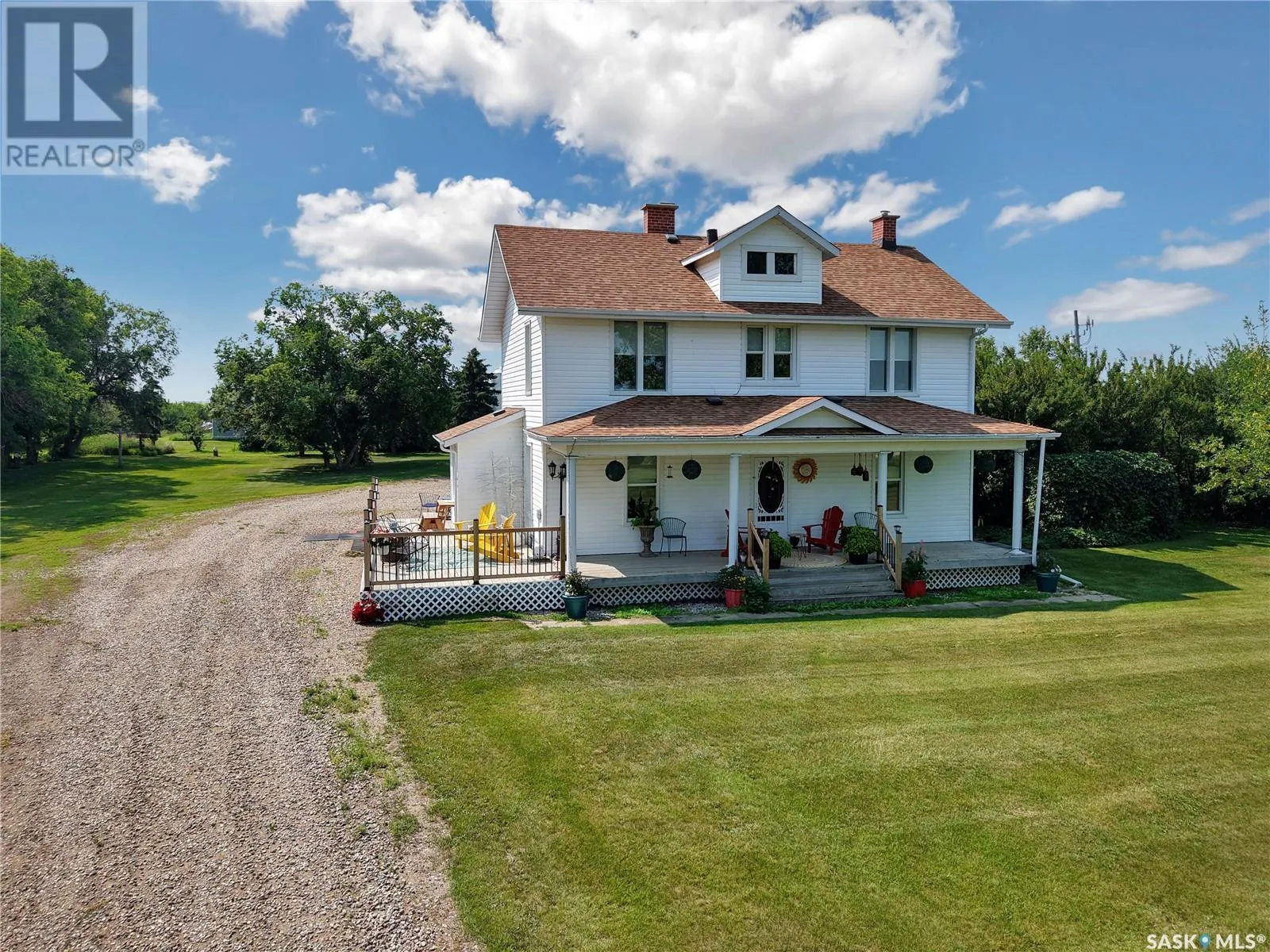 Here is your chance to own a part of Saskatchewan history in this beautiful Eaton catalogue home which was delivered by train to its homestead in 1916. This very clean and meticulously maintained two-storey home offers 1761sq/ft with four bedrooms and two bathrooms. Sitting on 11 acres of beautifully established yard site with mature shelter belts and garden areas. Majority of the house has original character and charm with original hard wood flooring, wood work and cabinetry. The kitchen offers a walk-in butlerâs pantry and an Island with a built in oven. Kitchen is open to dining area which is surrounded by windows. Very large living room offers a beautiful fireplace as a centrepiece surrounded by beauty and charm. On the way to the second level you will notice original wood banisters adding to the character of the home. All four bedrooms are on the second level and a three-piece bathroom with a clawfoot tub. Plenty of windows on this level allow beams of natural light to flow in. The partially developed basement offers a great recreation or family room with a second bath with shower. In general, this property has been updated with a long list of improvements made over the years including: 220 power outlets, power pole wired for generator(included), new well in 2013, septic tank in 1982 with new pump 5 years ago, forced air furnace replaced in 2012, new windows in 2006, shingles in 2015, exterior Styrofoam insulation and vinyl siding, newer paint throughout home. Outside will find a gorgeous veranda with wrap around deck. There is a double detached heated garage, a Quonset, lovely manicured yard with mature trees surrounded by peaceful farmland. Just 3.5 km from Delisle, a bustling community with schools and shopping just 30 min to the Saskatoon on double lane highway. Pride of ownership is evident, you will not be disappointed in viewing this incredible property. (id:27476)