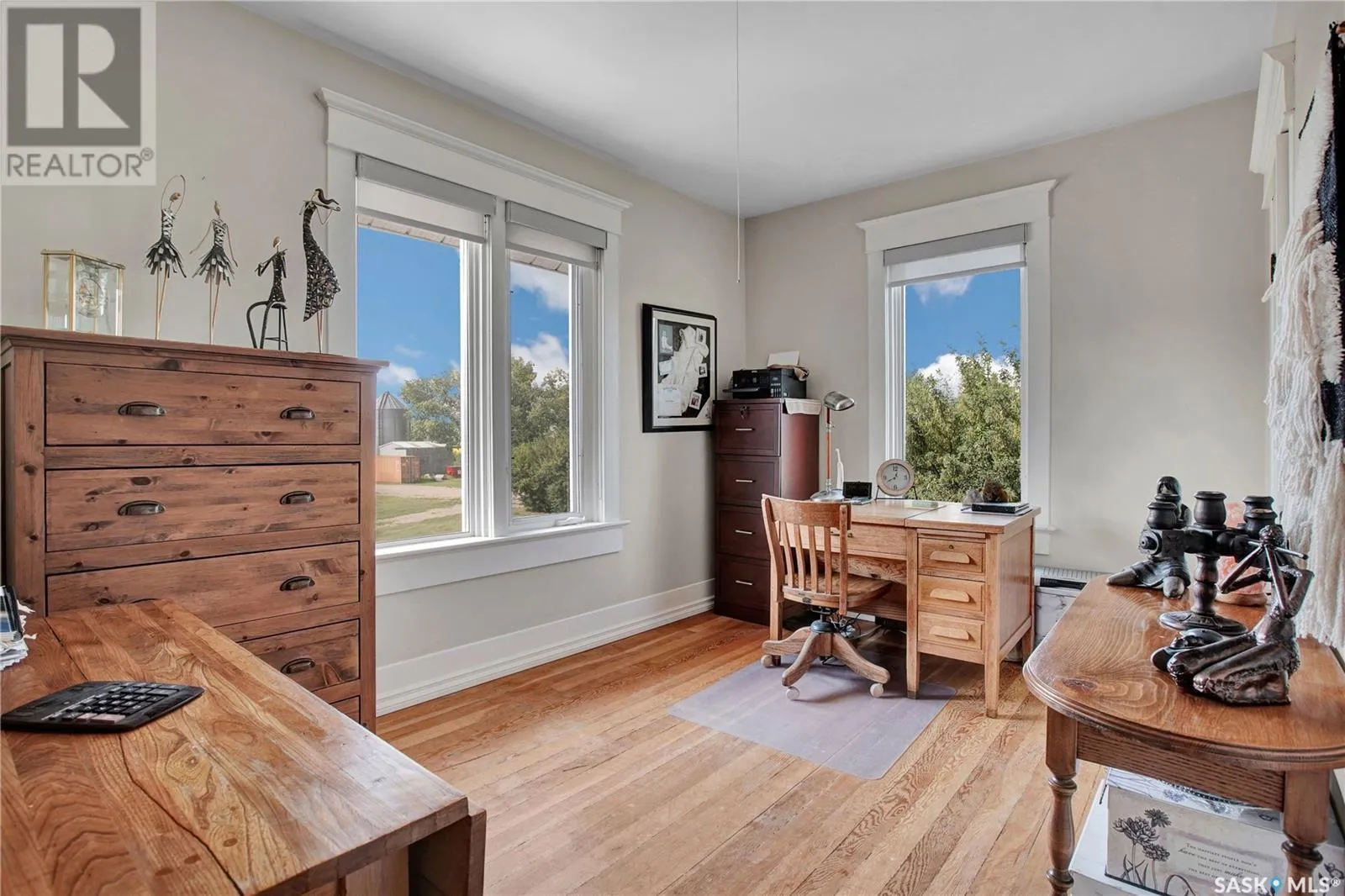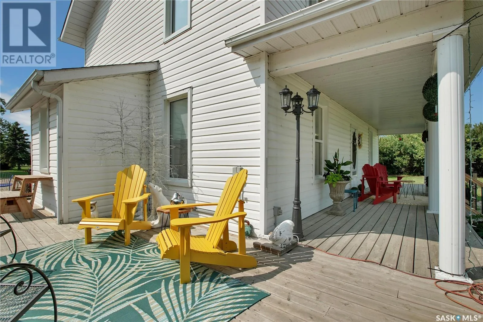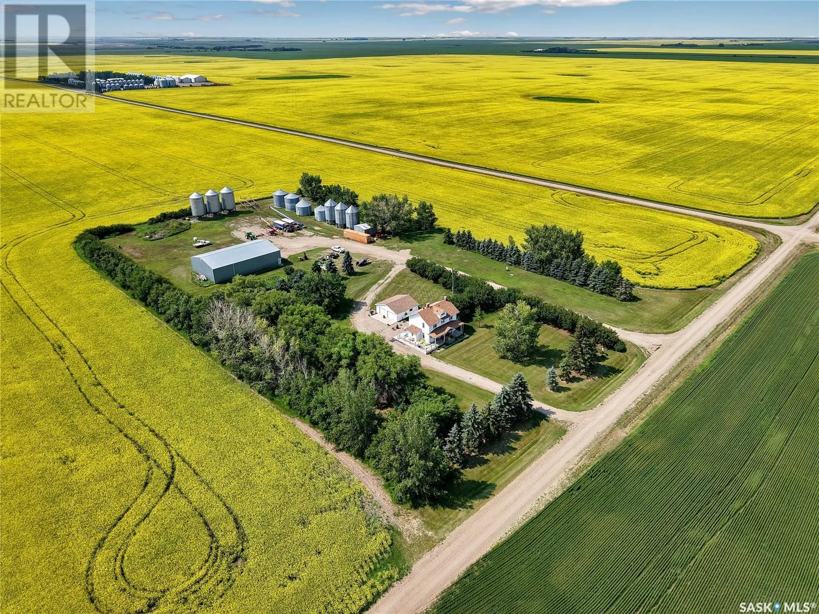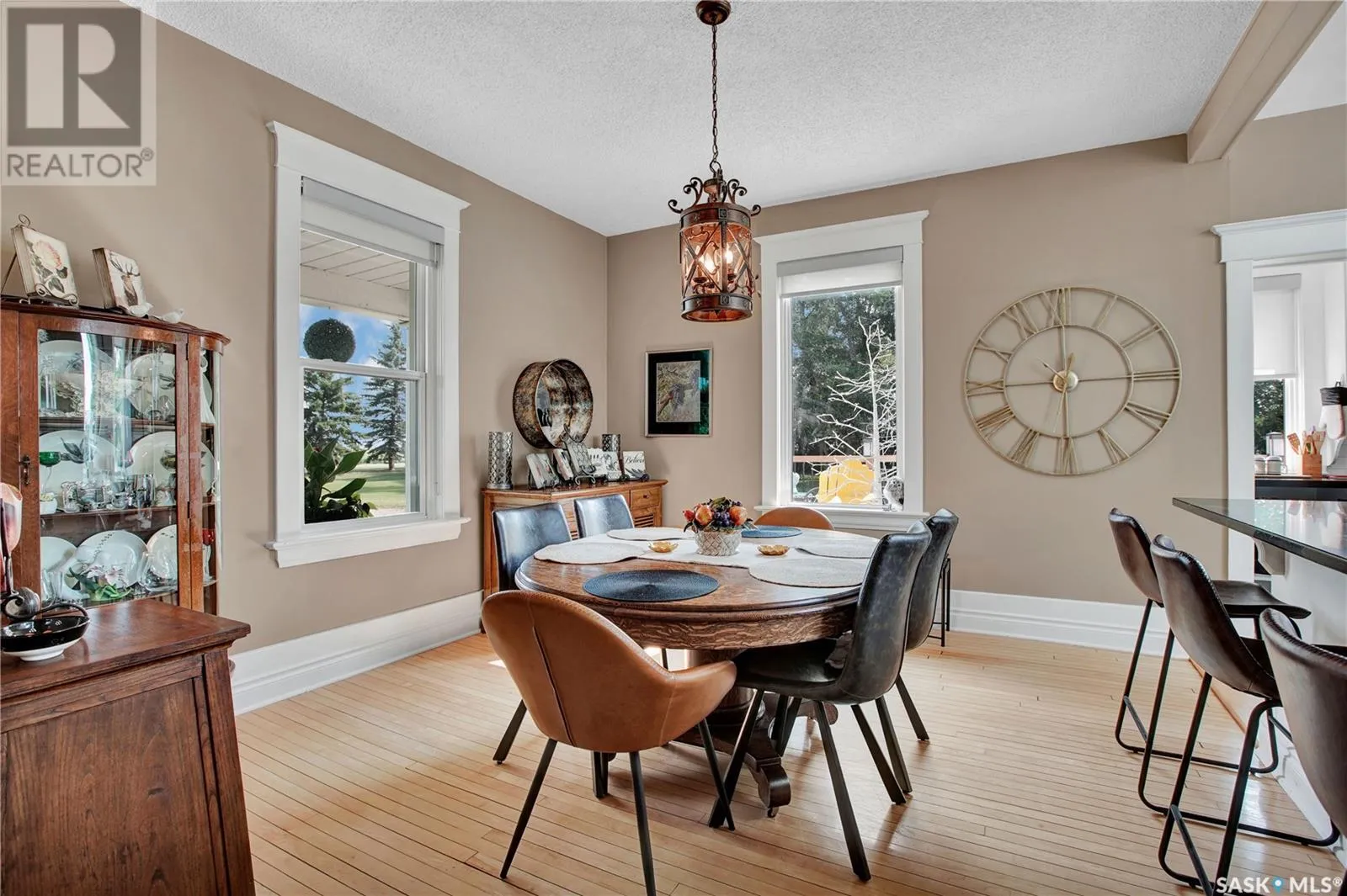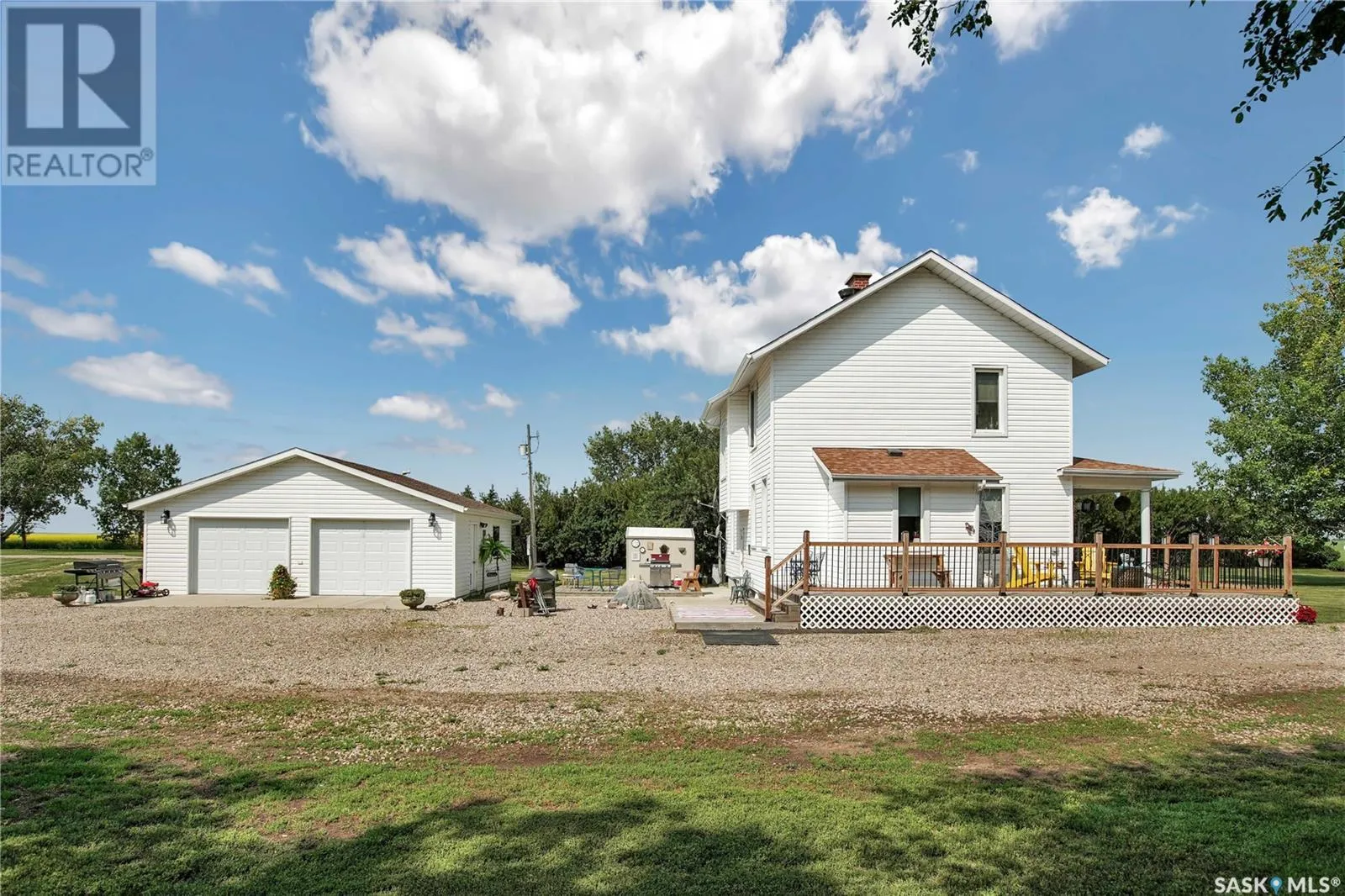 Here is your chance to own a part of Saskatchewan history in this beautiful Eaton catalogue home which was delivered by train to its homestead in 1916. This very clean and meticulously maintained two-storey home offers 1761sq/ft with four bedrooms and two bathrooms. Sitting on 11 acres of beautifully established yard site with mature shelter belts and garden areas. Majority of the house has original character and charm with original hard wood flooring, wood work and cabinetry. The kitchen offers a walk-in butlerâs pantry and an Island with a built in oven. Kitchen is open to dining area which is surrounded by windows. Very large living room offers a beautiful fireplace as a centrepiece surrounded by beauty and charm. On the way to the second level you will notice original wood banisters adding to the character of the home. All four bedrooms are on the second level and a three-piece bathroom with a clawfoot tub. Plenty of windows on this level allow beams of natural light to flow in. The partially developed basement offers a great recreation or family room with a second bath with shower. In general, this property has been updated with a long list of improvements made over the years including: 220 power outlets, power pole wired for generator(included), new well in 2013, septic tank in 1982 with new pump 5 years ago, forced air furnace replaced in 2012, new windows in 2006, shingles in 2015, exterior Styrofoam insulation and vinyl siding, newer paint throughout home. Outside will find a gorgeous veranda with wrap around deck. There is a double detached heated garage, a Quonset, lovely manicured yard with mature trees surrounded by peaceful farmland. Just 3.5 km from Delisle, a bustling community with schools and shopping just 30 min to the Saskatoon on double lane highway. Pride of ownership is evident, you will not be disappointed in viewing this incredible property. (id:27476)