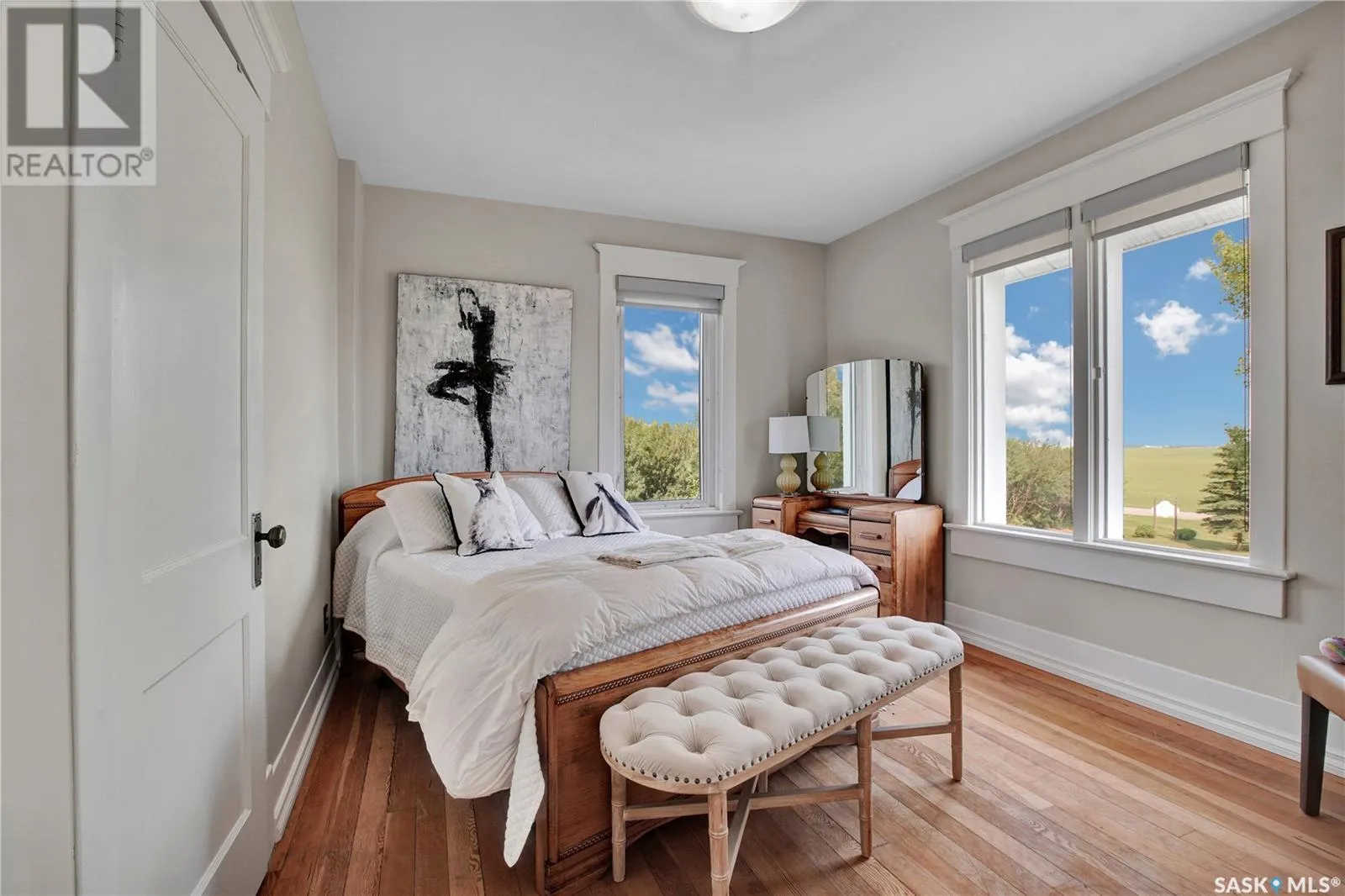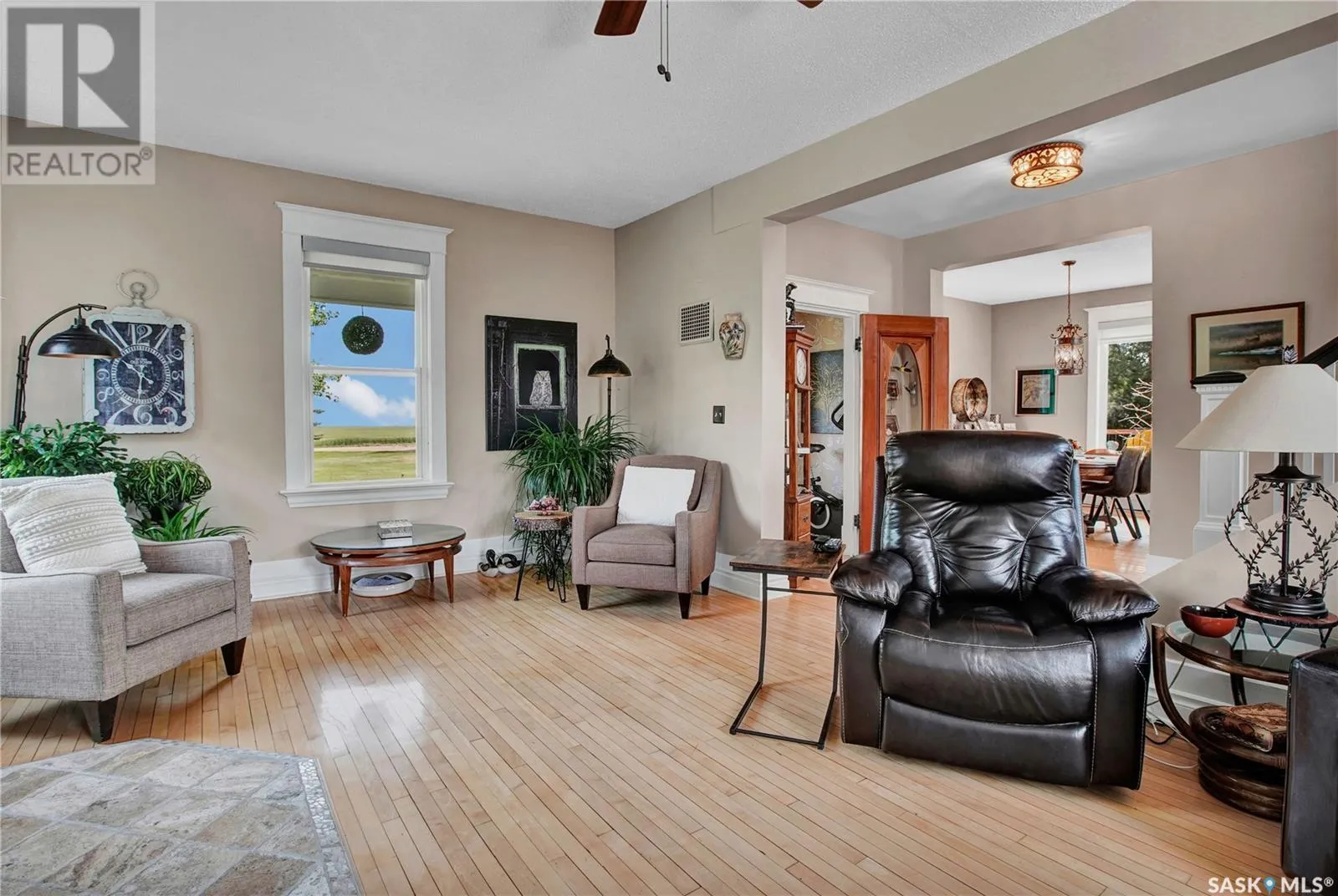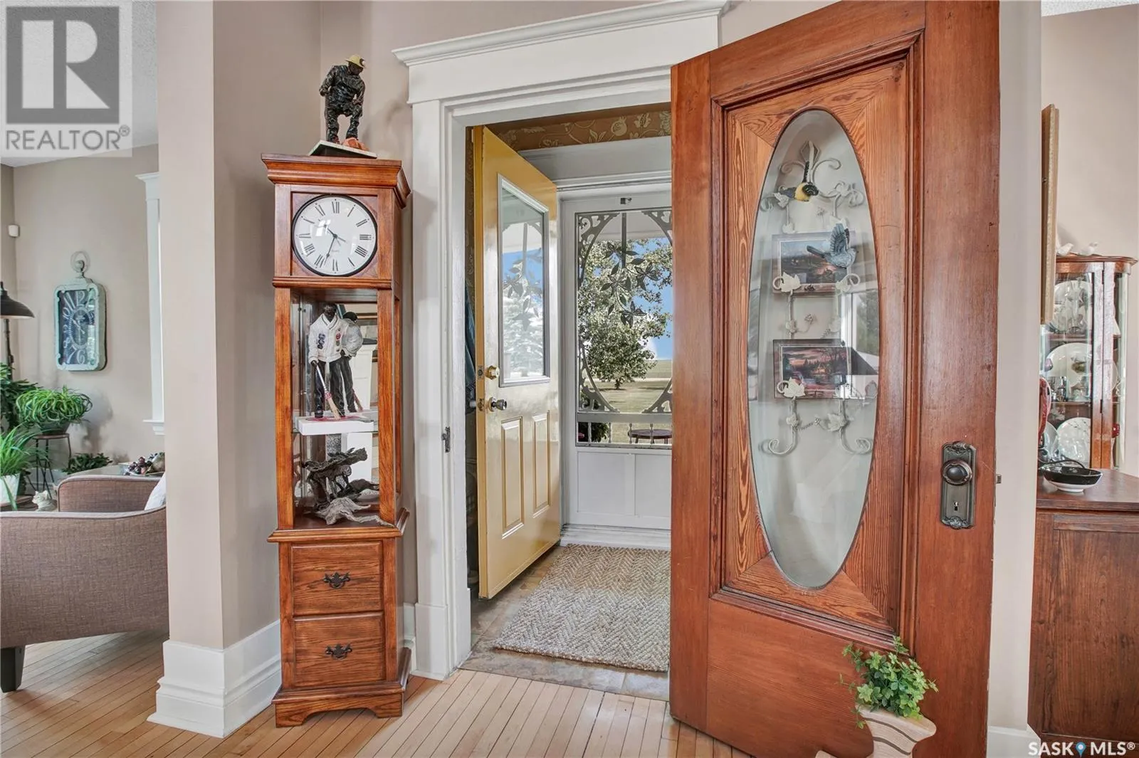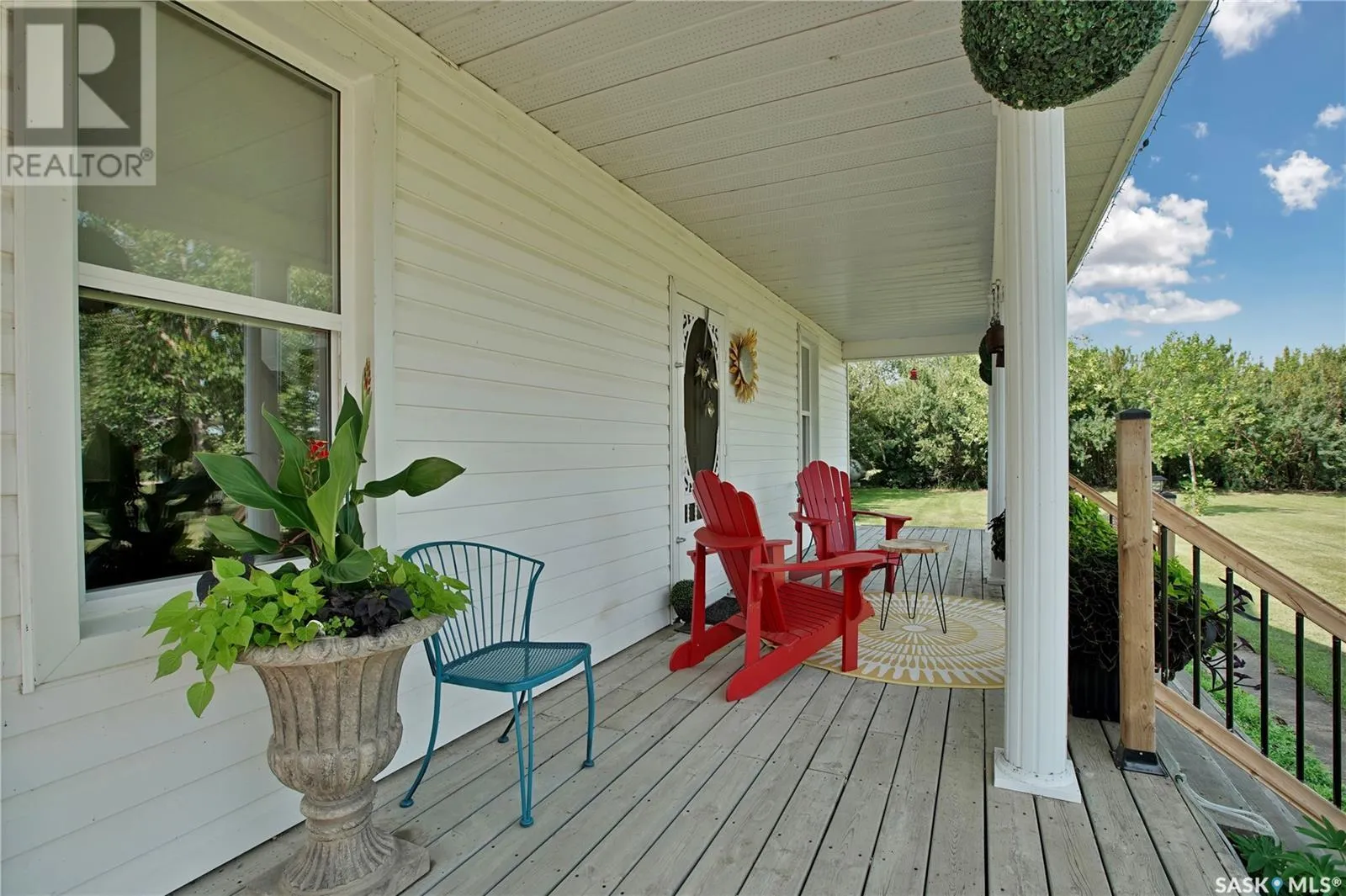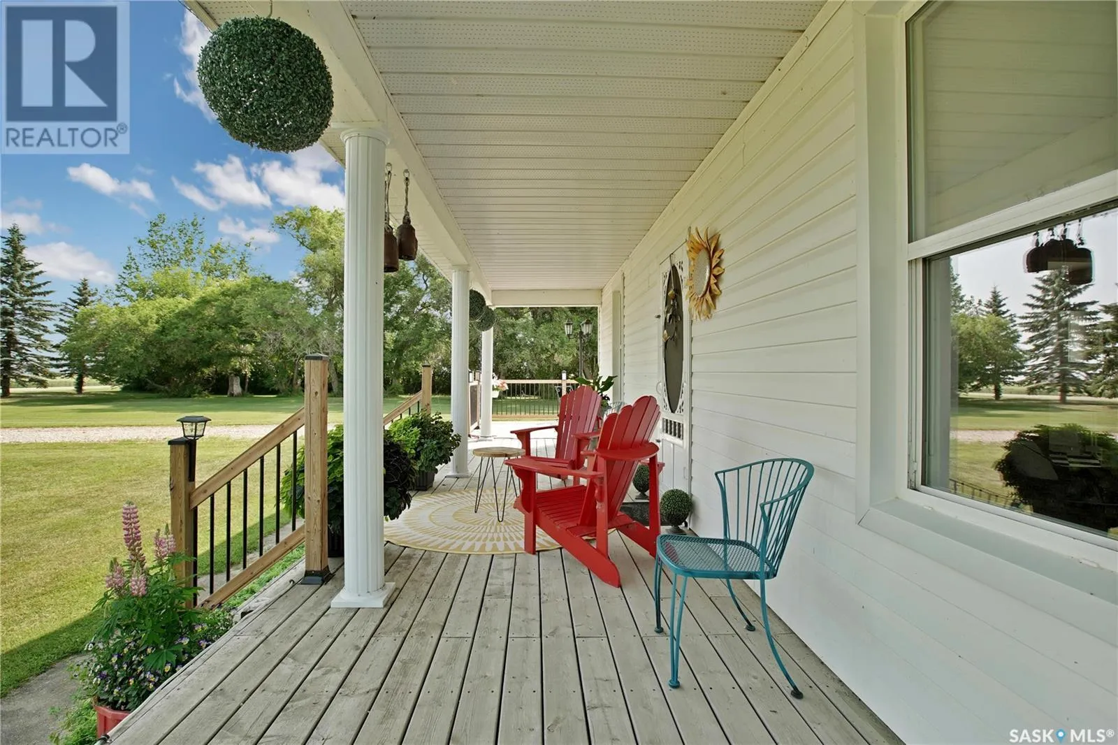 Here is your chance to own a part of Saskatchewan history in this beautiful Eaton catalogue home which was delivered by train to its homestead in 1916. This very clean and meticulously maintained two-storey home offers 1761sq/ft with four bedrooms and two bathrooms. Sitting on 11 acres of beautifully established yard site with mature shelter belts and garden areas. Majority of the house has original character and charm with original hard wood flooring, wood work and cabinetry. The kitchen offers a walk-in butlerâs pantry and an Island with a built in oven. Kitchen is open to dining area which is surrounded by windows. Very large living room offers a beautiful fireplace as a centrepiece surrounded by beauty and charm. On the way to the second level you will notice original wood banisters adding to the character of the home. All four bedrooms are on the second level and a three-piece bathroom with a clawfoot tub. Plenty of windows on this level allow beams of natural light to flow in. The partially developed basement offers a great recreation or family room with a second bath with shower. In general, this property has been updated with a long list of improvements made over the years including: 220 power outlets, power pole wired for generator(included), new well in 2013, septic tank in 1982 with new pump 5 years ago, forced air furnace replaced in 2012, new windows in 2006, shingles in 2015, exterior Styrofoam insulation and vinyl siding, newer paint throughout home. Outside will find a gorgeous veranda with wrap around deck. There is a double detached heated garage, a Quonset, lovely manicured yard with mature trees surrounded by peaceful farmland. Just 3.5 km from Delisle, a bustling community with schools and shopping just 30 min to the Saskatoon on double lane highway. Pride of ownership is evident, you will not be disappointed in viewing this incredible property. (id:27476)