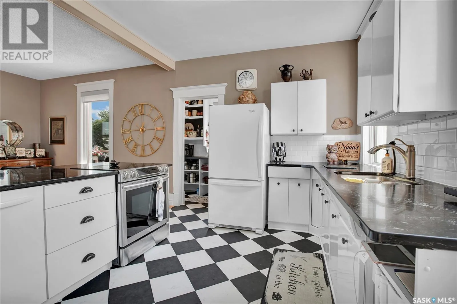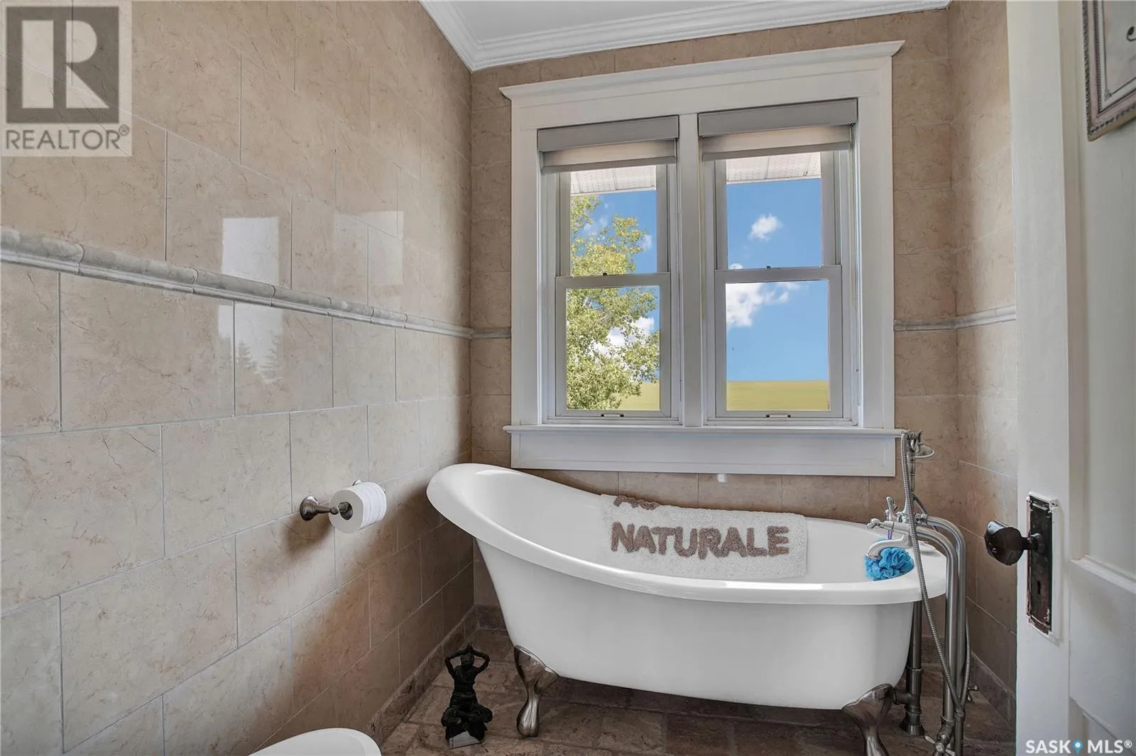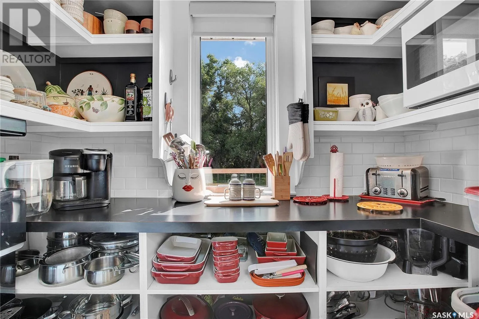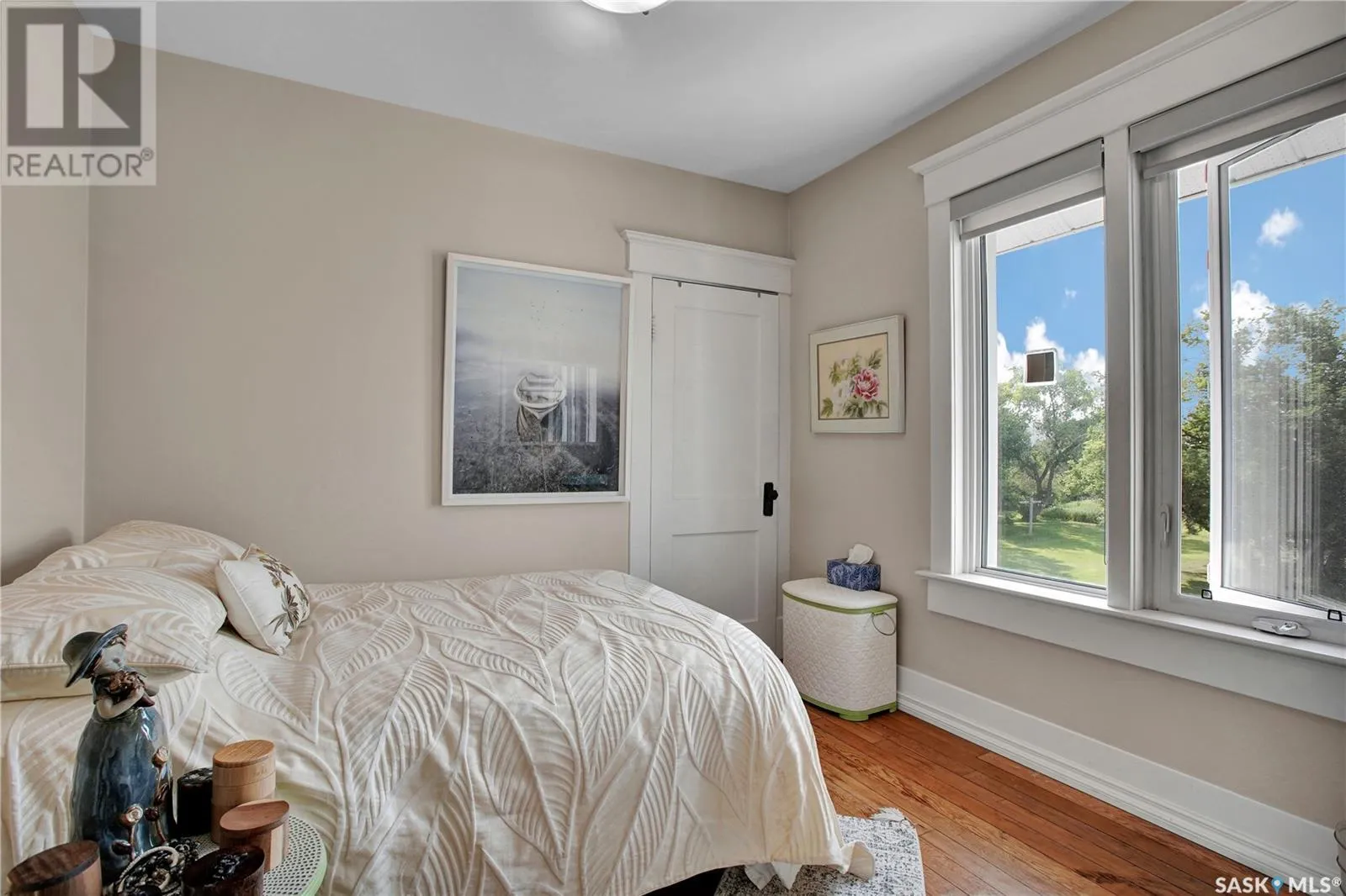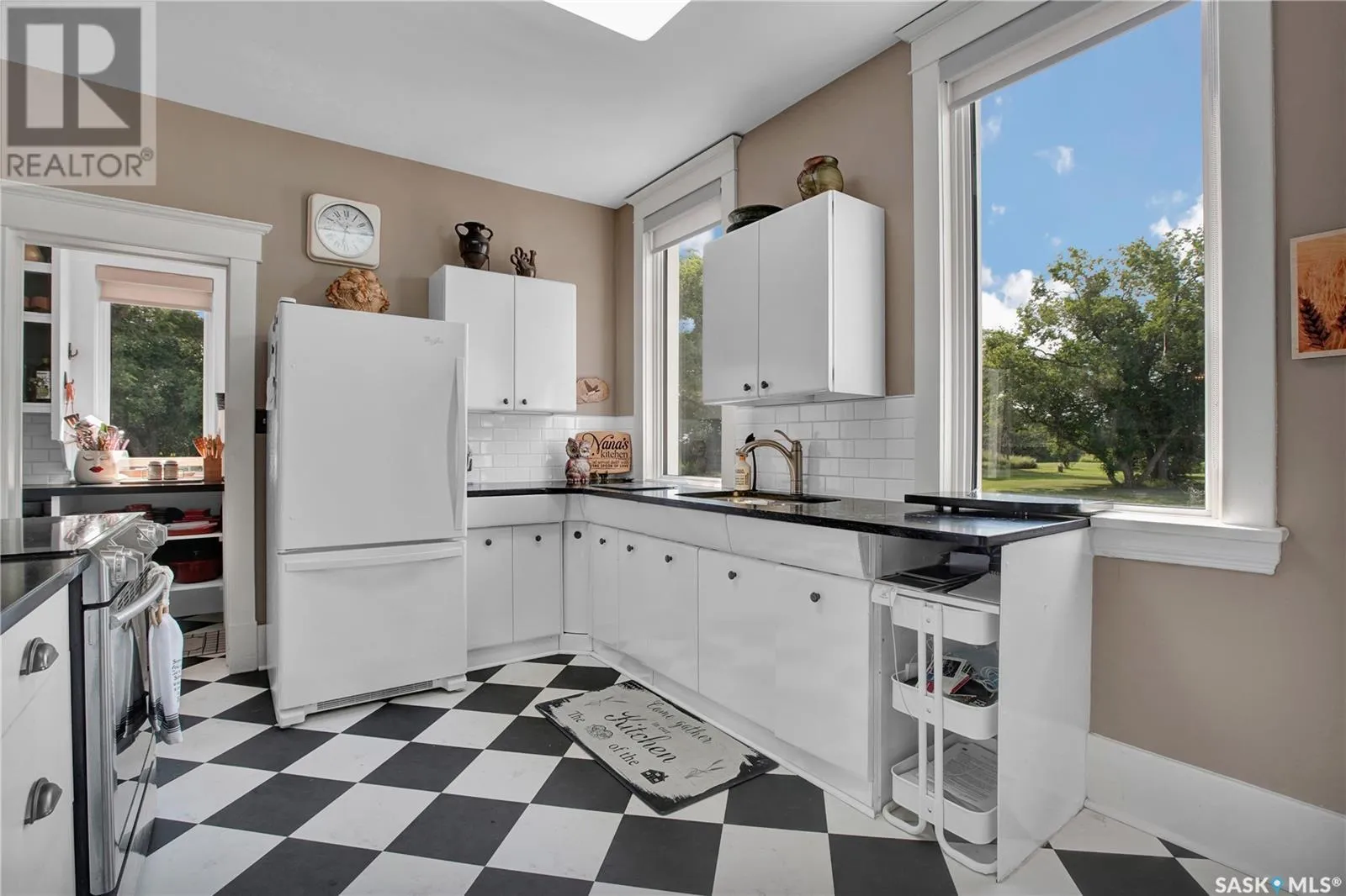 Here is your chance to own a part of Saskatchewan history in this beautiful Eaton catalogue home which was delivered by train to its homestead in 1916. This very clean and meticulously maintained two-storey home offers 1761sq/ft with four bedrooms and two bathrooms. Sitting on 11 acres of beautifully established yard site with mature shelter belts and garden areas. Majority of the house has original character and charm with original hard wood flooring, wood work and cabinetry. The kitchen offers a walk-in butlerâs pantry and an Island with a built in oven. Kitchen is open to dining area which is surrounded by windows. Very large living room offers a beautiful fireplace as a centrepiece surrounded by beauty and charm. On the way to the second level you will notice original wood banisters adding to the character of the home. All four bedrooms are on the second level and a three-piece bathroom with a clawfoot tub. Plenty of windows on this level allow beams of natural light to flow in. The partially developed basement offers a great recreation or family room with a second bath with shower. In general, this property has been updated with a long list of improvements made over the years including: 220 power outlets, power pole wired for generator(included), new well in 2013, septic tank in 1982 with new pump 5 years ago, forced air furnace replaced in 2012, new windows in 2006, shingles in 2015, exterior Styrofoam insulation and vinyl siding, newer paint throughout home. Outside will find a gorgeous veranda with wrap around deck. There is a double detached heated garage, a Quonset, lovely manicured yard with mature trees surrounded by peaceful farmland. Just 3.5 km from Delisle, a bustling community with schools and shopping just 30 min to the Saskatoon on double lane highway. Pride of ownership is evident, you will not be disappointed in viewing this incredible property. (id:27476)