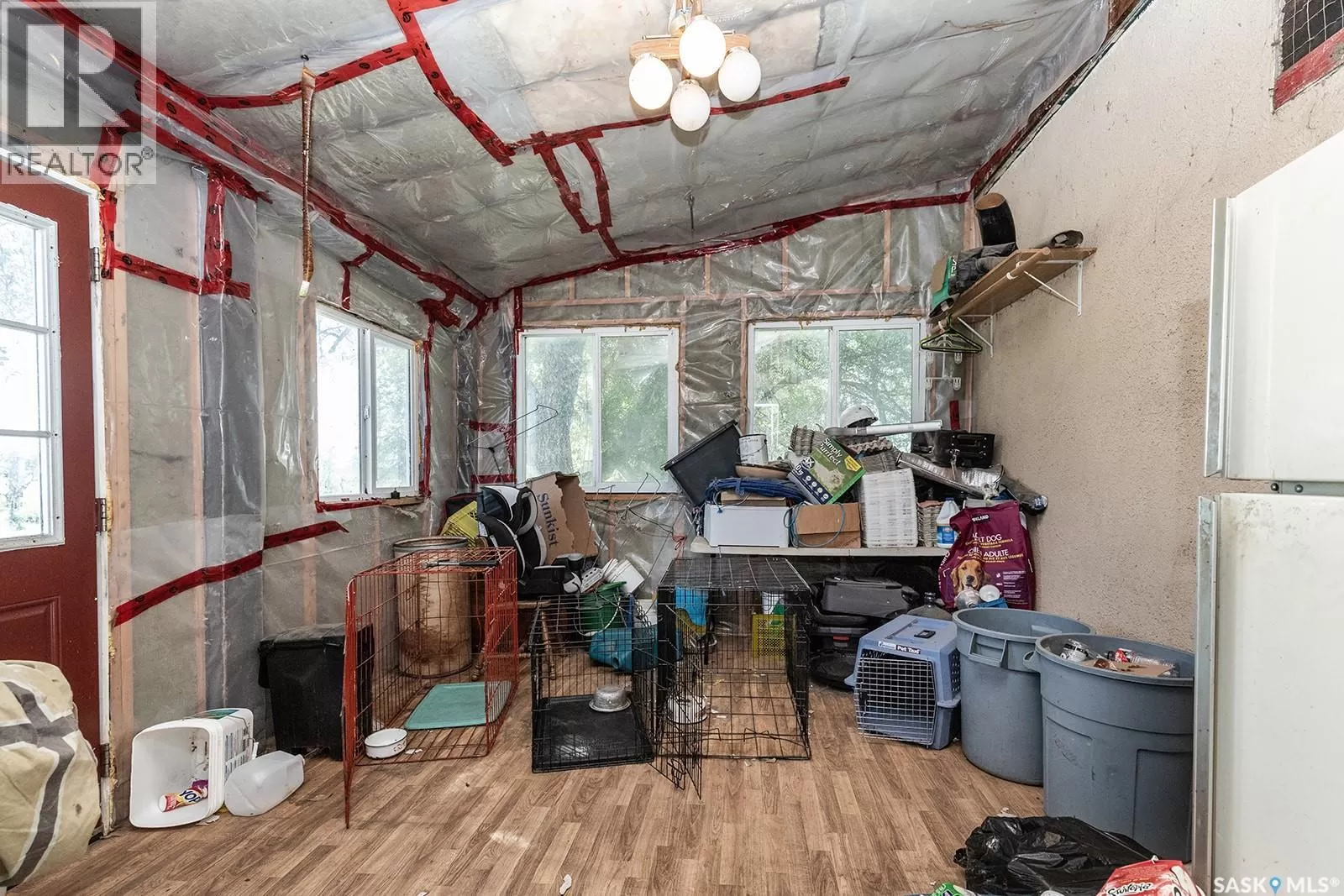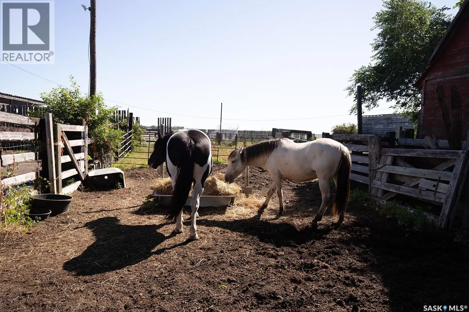 Located 28 km West of Saskatoon at corner of Hwy 14 and Range Road 3091. This could be your perfect oasis, just 28 Kms West of Saskatoon on pavement - 4 Kms East of Asquith at the corner of Hwy 14 and Range Road 3091. It is comprised of a 6-bedroom home with outbuildings on 77.5 acres of cross fenced property. Saskatoon is your nearest full-service centre, while the nearest limited service center is only 4 Km away at Asquith, offering school and Co-op Store. The main floor features a large kitchen / dining area, living / sitting room and a secluded master bedroom with its own private bathroom; plus, a half bath, with laundry sink in the mudroom ... great for cleaning up after chores. s ... the main floor âsuiteâ has two large bedrooms, a limited kitchenette and a bathroom. The upstairs offers 3 finished and 1 unfinished bedroom, along with an office space and a bathroom. The fenced-in area behind the house has kennels once used for breeding dogs. The shelter belt behind the house provides a large private yard. Included is the old dairy barn (with 2500-gal water tank) now used for hay storage, an old insulated calf barn, and an approx 100-year-old horse barn with stalls. The upstairs in the old barn could potentially be a secluded play room or host a Barn Dance â check structural integrity first! Bring your hobbies to the two-bay 40 x 40 shop. One side is heated and with storage mezzanine, the other not heated, good for storing farm equipment (or Sleds and Atvâs). With some fencing and coral maintenance you could house any myriad of animals, as has been in the past - pigs, goats, sheep, cattle and horses. This yearâs crop is seeded to Timothy brome and orchard grasses, great for horses all year round, and hay sales have always produced happy customers. Fowl can be raised here too in the several pens and enclosures. All in all, this is 77.5 acres of potential wrapped in a peaceful retreat away from city life. (Looking for Land only nearby to Asquith / check out SK012247). (id:27476)