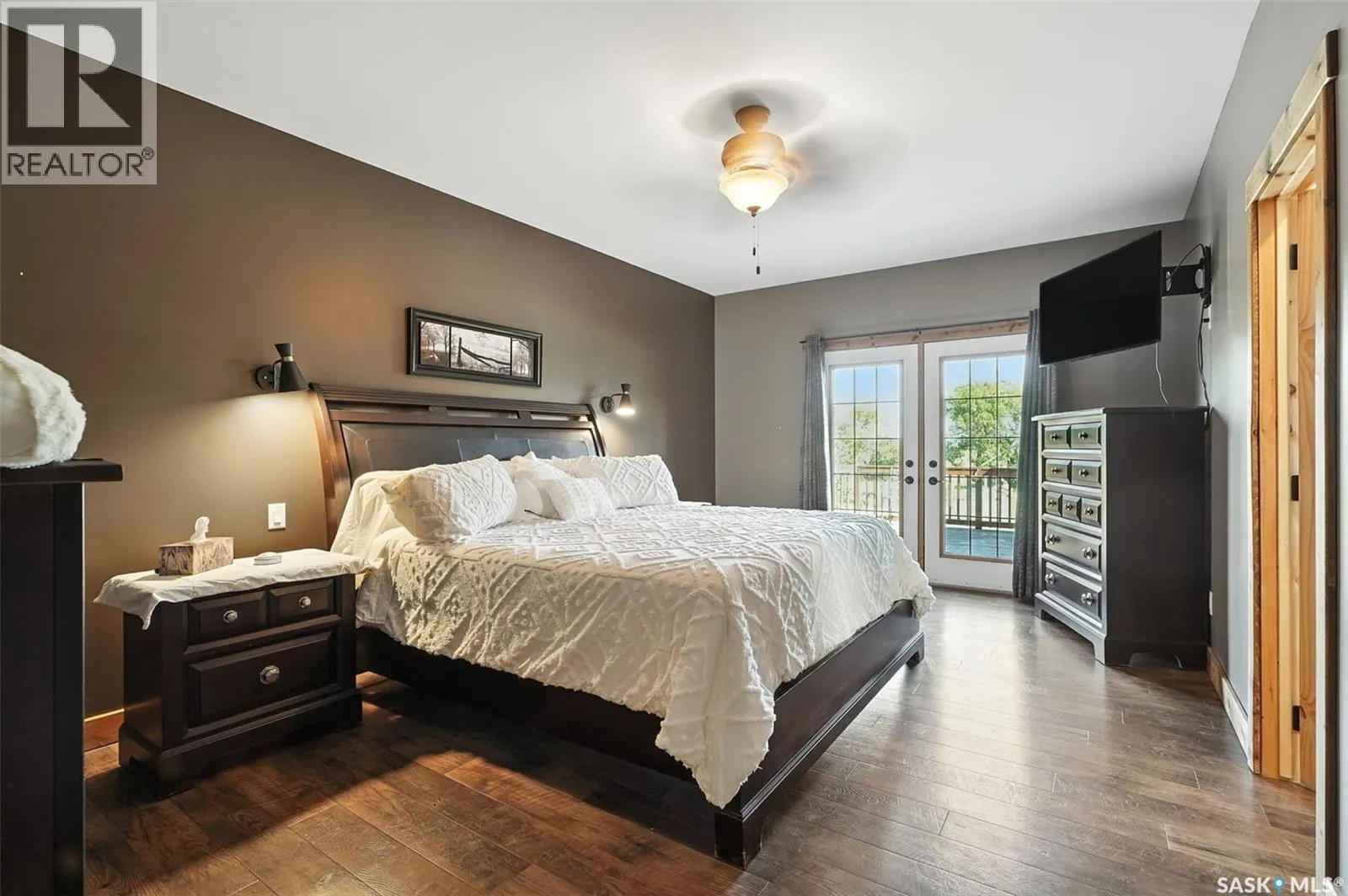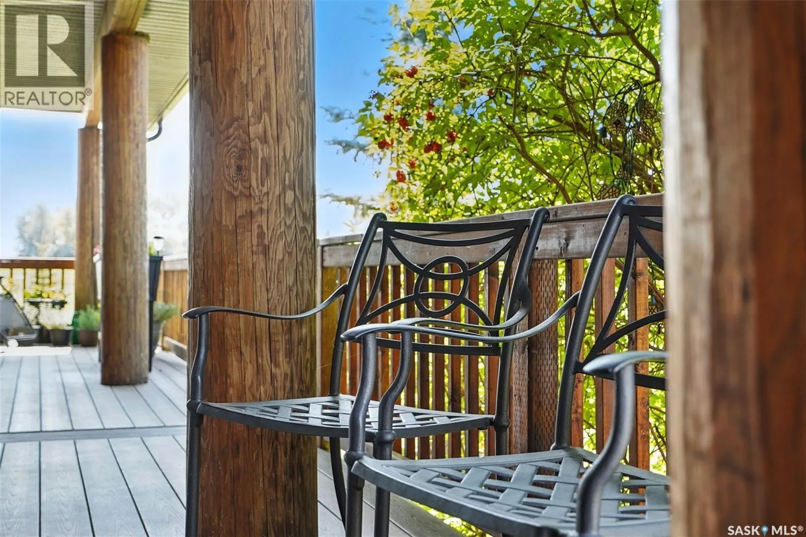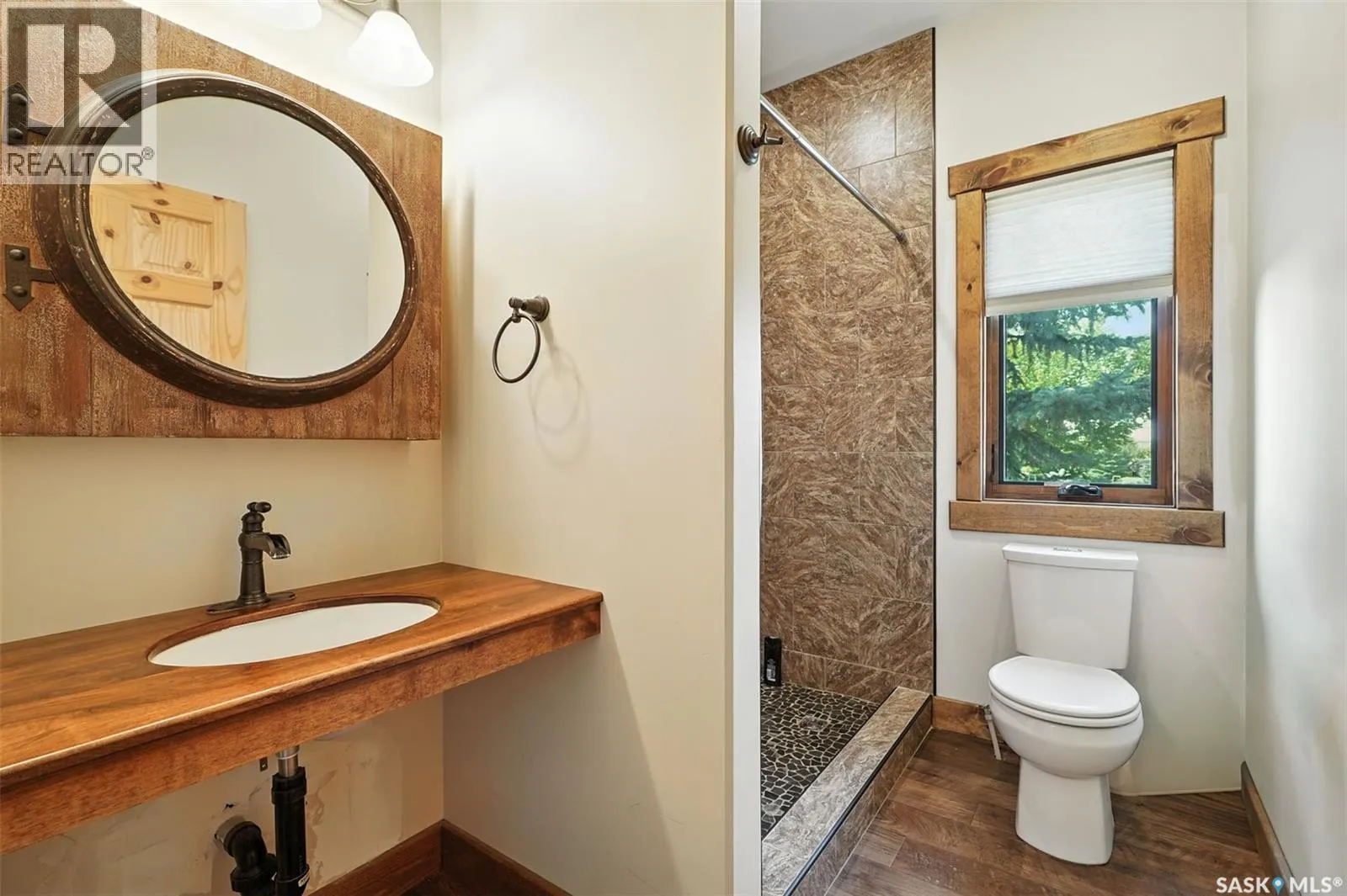 Just south of Vanscoy, and only a short drive from the city, this stunning 2,514 sq. ft. custom home sits on 8.86 acres in a beautifully mature yardsite. Designed with ease of living in mind, it combines rural tranquility with modern luxuryâperfect for those looking take a break from the city without sacrificing comfort and quality. The main floor offers true one-level living with 3 spacious bedrooms and 3 baths, including a spa-inspired ensuite with a custom tile shower and jacuzzi tub. Wide 4-ft hallways, solid pine doors, and thoughtful layout make the home easy to move through, while large windows fill the space with natural light. A cozy wood-burning fireplace framed in granite stone with a live-edge mantle brings warmth and charm. A chefâs kitchen awaits with cherry wood cabinetry, quartz countertops, and high-end appliances including a Thor 6-burner gas range, Wolfe hood fan & Miele dishwasher. The oversized laundry room provides abundant storage and organization, keeping daily routines hidden and stress-free. The ICF basement with 9-ft ceilings is nearly complete and ready for your personal touchâfamily recreation room, home theatre, fitness space, 2 more bedrooms & bathroom. In-floor heating lines are already in place should you prefer a radiant heat. Outdoors, enjoy expansive front and back decks with timber accents. A luxury saltwater hot tub invites you to unwind, and a convenient dog run right out the back door makes life easier for pet owners. The oversized triple-car garage provides plenty of space for any need. A large barn adds versatilityâequipped with furnace, water, kitchen, bath, and loft with bedrooms and a family room. Itâs perfect for extended family visits, ranch hand, or hobbies, with the option to convert for animals if you choose. Additional energy highlights include triple-pane windows, spray foam insulation for efficiency & upgraded fixtures. Create your legacy hereâwhere comfort, practicality, and rural beauty come together. (id:27476)