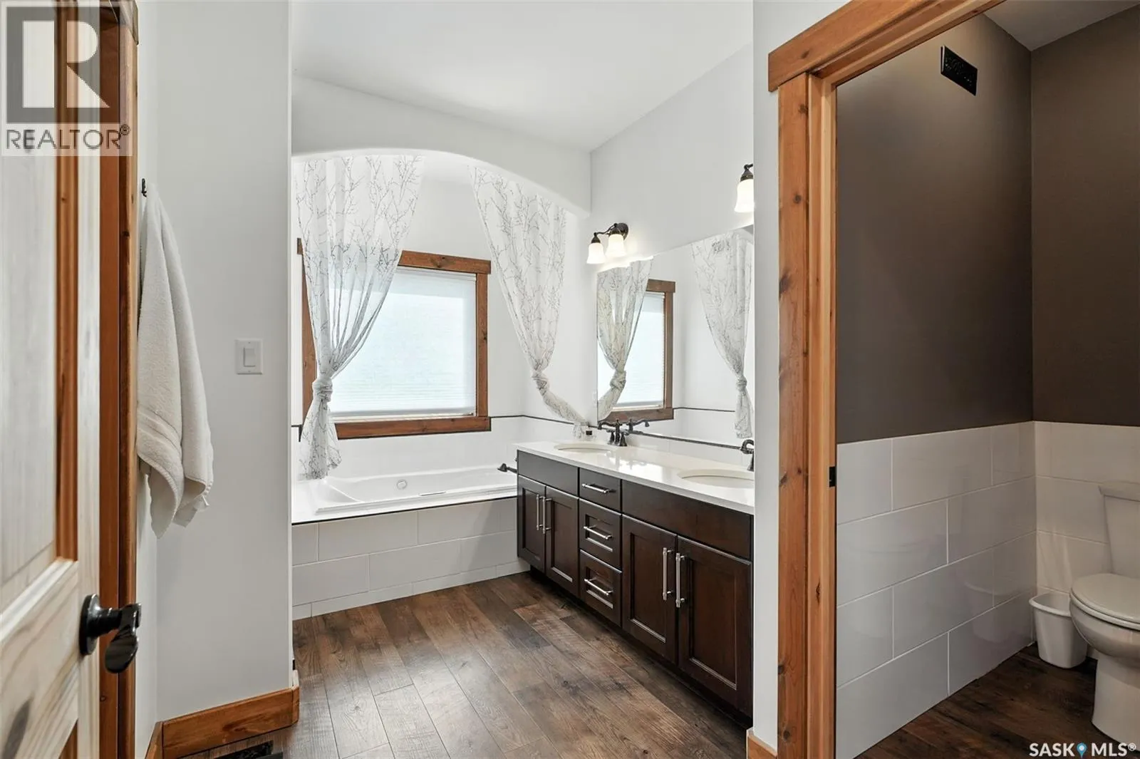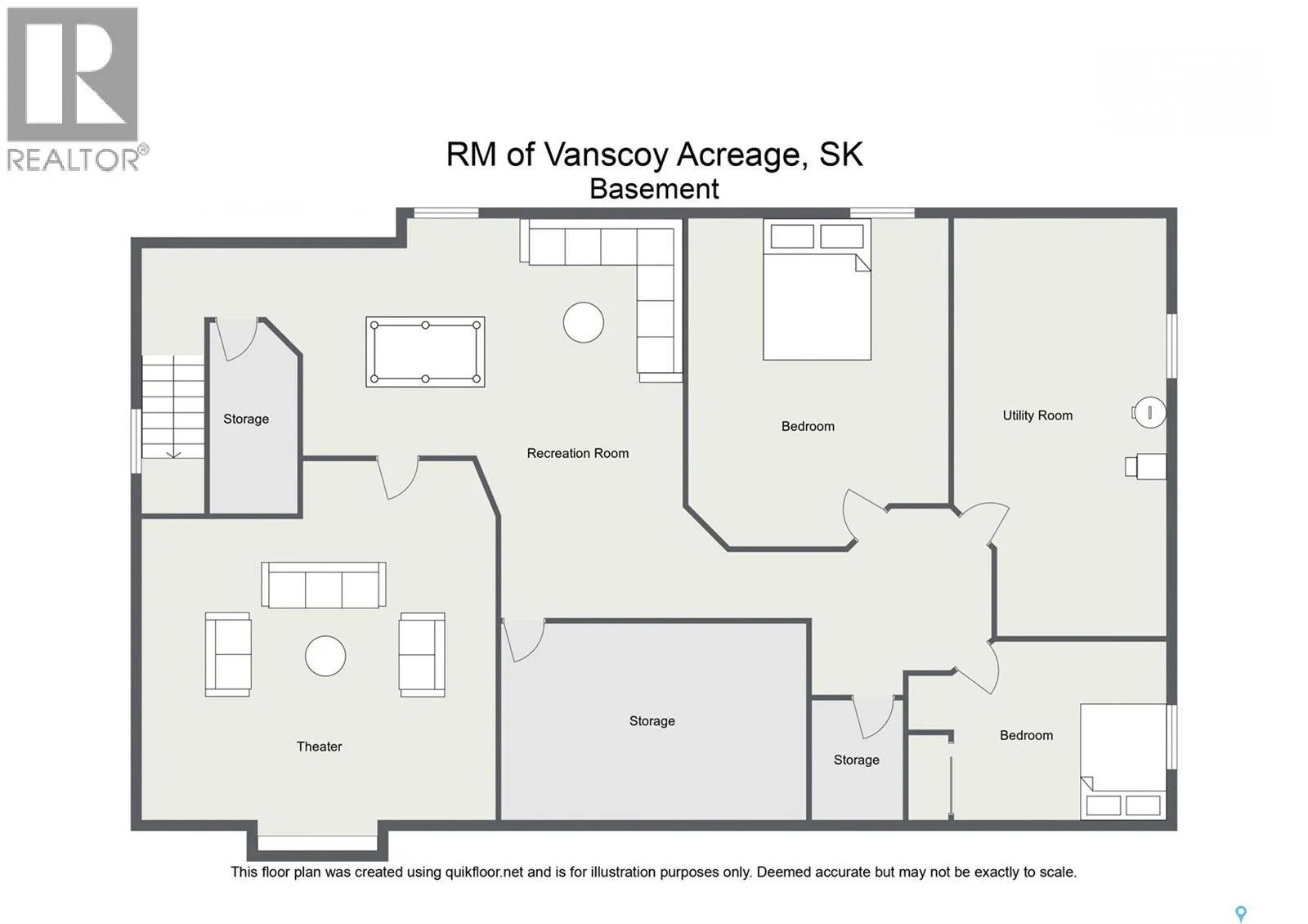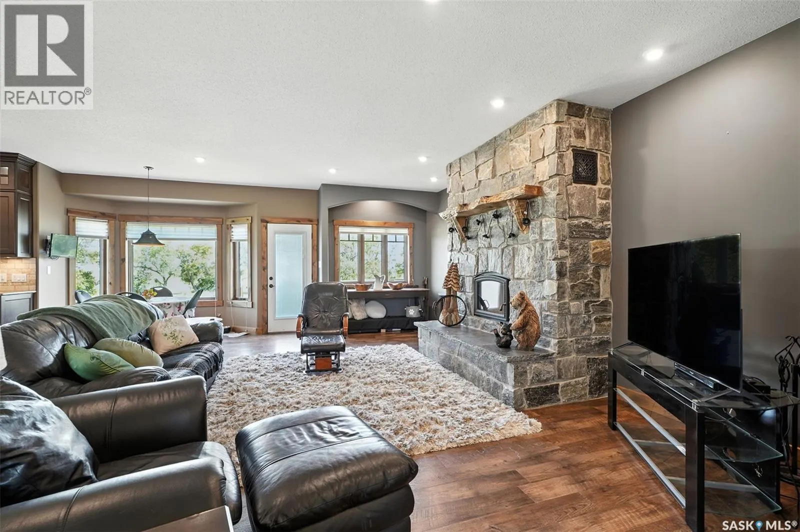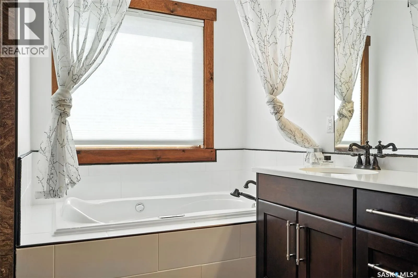 Just south of Vanscoy, and only a short drive from the city, this stunning 2,514 sq. ft. custom home sits on 8.86 acres in a beautifully mature yardsite. Designed with ease of living in mind, it combines rural tranquility with modern luxuryâperfect for those looking take a break from the city without sacrificing comfort and quality. The main floor offers true one-level living with 3 spacious bedrooms and 3 baths, including a spa-inspired ensuite with a custom tile shower and jacuzzi tub. Wide 4-ft hallways, solid pine doors, and thoughtful layout make the home easy to move through, while large windows fill the space with natural light. A cozy wood-burning fireplace framed in granite stone with a live-edge mantle brings warmth and charm. A chefâs kitchen awaits with cherry wood cabinetry, quartz countertops, and high-end appliances including a Thor 6-burner gas range, Wolfe hood fan & Miele dishwasher. The oversized laundry room provides abundant storage and organization, keeping daily routines hidden and stress-free. The ICF basement with 9-ft ceilings is nearly complete and ready for your personal touchâfamily recreation room, home theatre, fitness space, 2 more bedrooms & bathroom. In-floor heating lines are already in place should you prefer a radiant heat. Outdoors, enjoy expansive front and back decks with timber accents. A luxury saltwater hot tub invites you to unwind, and a convenient dog run right out the back door makes life easier for pet owners. The oversized triple-car garage provides plenty of space for any need. A large barn adds versatilityâequipped with furnace, water, kitchen, bath, and loft with bedrooms and a family room. Itâs perfect for extended family visits, ranch hand, or hobbies, with the option to convert for animals if you choose. Additional energy highlights include triple-pane windows, spray foam insulation for efficiency & upgraded fixtures. Create your legacy hereâwhere comfort, practicality, and rural beauty come together. (id:27476)