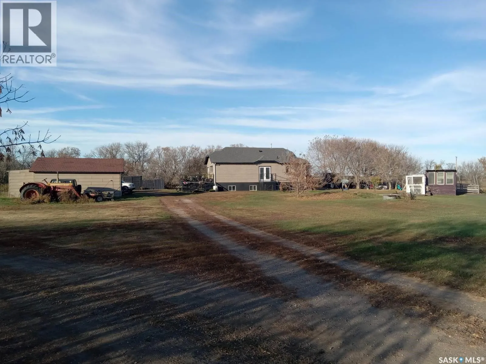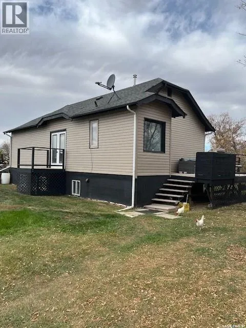 48km to Saskatoon.Very affordable 39 acre acreage East of Delisle and South of Pike Lake highway. 950 sq.ft. bungalow moved to the acreage and placed on a brand new ICF basement. The house has many nice updates yet retains character including glass door knobs and original hardwood floors with 2 bedrooms up and 2 down this comfortable home has fully developed basement. Owner states very good well. Oversized single garage has been used as shop. Neat chicken coop and storage building plus raised garden and still more space. Mature shelter belt surrounding the yard and the 39 acres is quality land with little waste. Currently in grass. The acreage is located in a very quiet private location and can have possession on very short timeline. Call for your viewing appointment now! (id:27476)