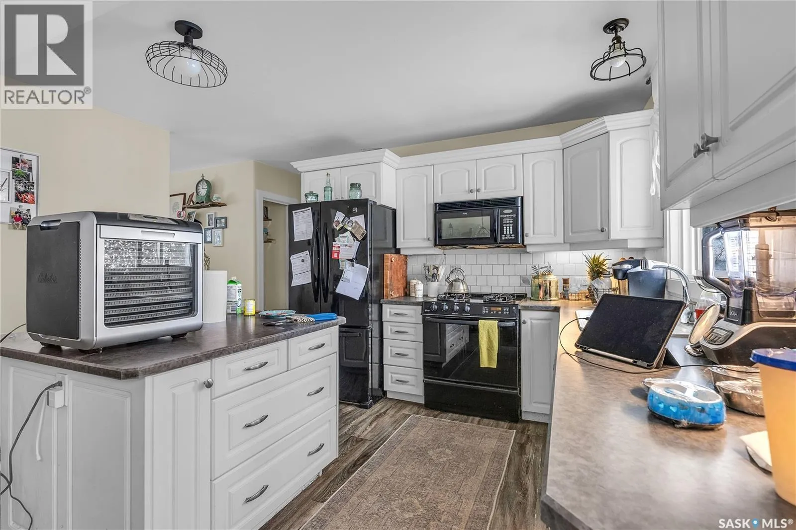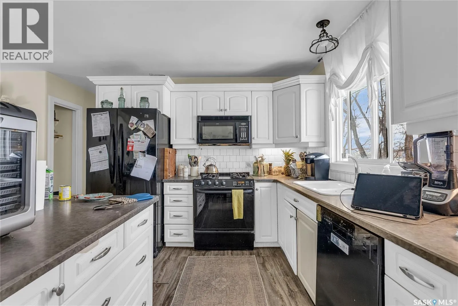 Hwy 7 South past Nutrien Cory Mine, turn right onto Thomas Rd, next right onto Sitina Access Rd, 1st prop on LHS NEW LOW PRICE! Affordable Acreage living calls! Great opportunity in a prime location. Nice 3+1 Bedroom Raised bungalow just 7 minutes from town south on Highway 7 and adjacent to popular Sitina Estates!. Nice raised bungalow, new Vinyl plank in Kitchen being installed. Lots of potential for upgrades. Great yard setting with Shelter belt, Firepit, mature trees, and west facing deck. Good L-shaped layout with laminate floor, large main bath with jetted tub. White Heritage Kitchen, nice Eating area with Garden doors to deck. Basement offers loads of potential with family room, Bedroom, and direct access to finished and heated oversized single attached garage. Septic tank and holding tank for water. Build equity and your future with this great acreage! Call today! (id:27476)