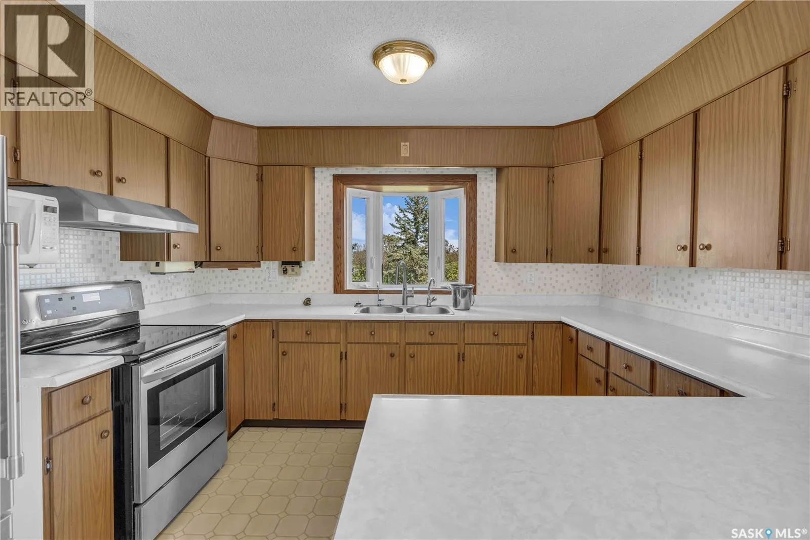 10 Acre Acreage with Spacious Bungalow & Outbuildings. This 10-acre property offers the perfect blend of prairie views, mature trees, and a well-kept home with plenty of space for the whole family. The 1,600 sq. ft. bungalow was originally built in 1970 and moved onto a new basement in 1998, giving it a solid foundation and great potential for further development. Inside, youâll find a bright and functional floor plan. The spacious entryway includes a convenient 2-piece bathroom and laundry area just steps from the door. The kitchen and dining area are well-appointed and flow into a huge living room perfect for family gatherings. Three bedrooms and a full bathroom complete the main floor, along with excellent storage throughout. The basement is boarded and ready for finishing, with plenty of space to add bedrooms or a rec room. A completed 4-piece bathroom is already in place, making it easy to customize the lower level to your needs. Additional features include an oversized double attached garage, well water, and natural gas service. The yard site is well-equipped with a 38â x 40â Quonset (with overhead door and water), a spacious shed with hydrant, and room to enjoy both treed areas, spacious deck, and open prairie views. Located central to Bruno, Viscount, and Humboldt, and less than an hour to Saskatoon, this acreage offers the best of both privacy and accessibility. The yard is currently in the process of subdivision, with completion set for January. (id:27476)