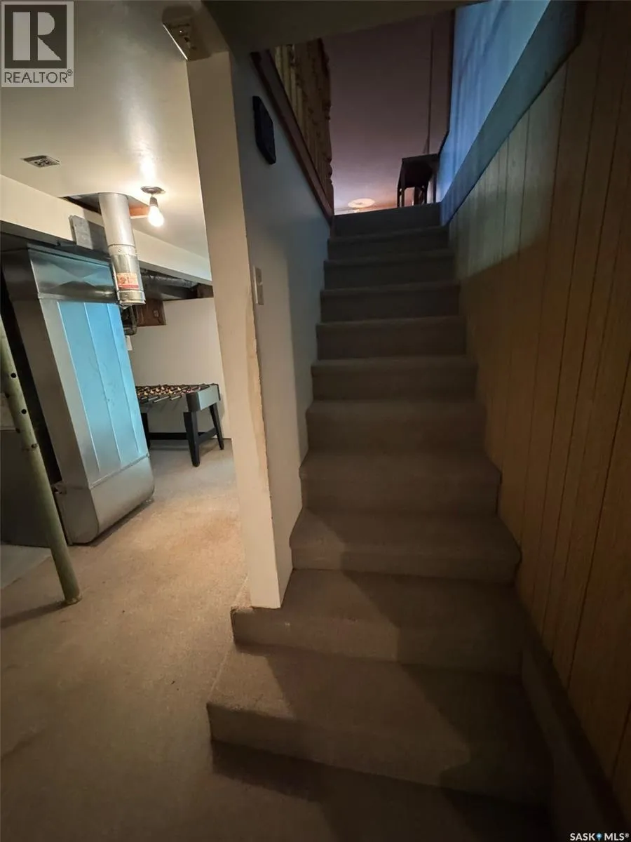 This property is two lots backing a park in Wadena, SK. The home is a 3 bedroom bungalow with a nice eat in kitchen, and large living room overlooking the park. The bedrooms are good size and main floor is rounded out by a porch and laundry/4-piece bathroom. The yard has a deck 1-car garage with a covered patio area, and a large back yard overlooking the park. The basement is partially finished with a den, the former laundry area, 2-piece bath, utility area, and two large rooms ready to make what you want. (id:27476)