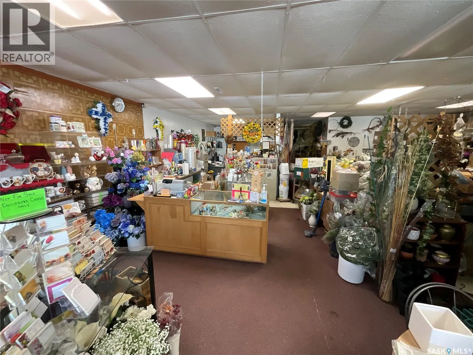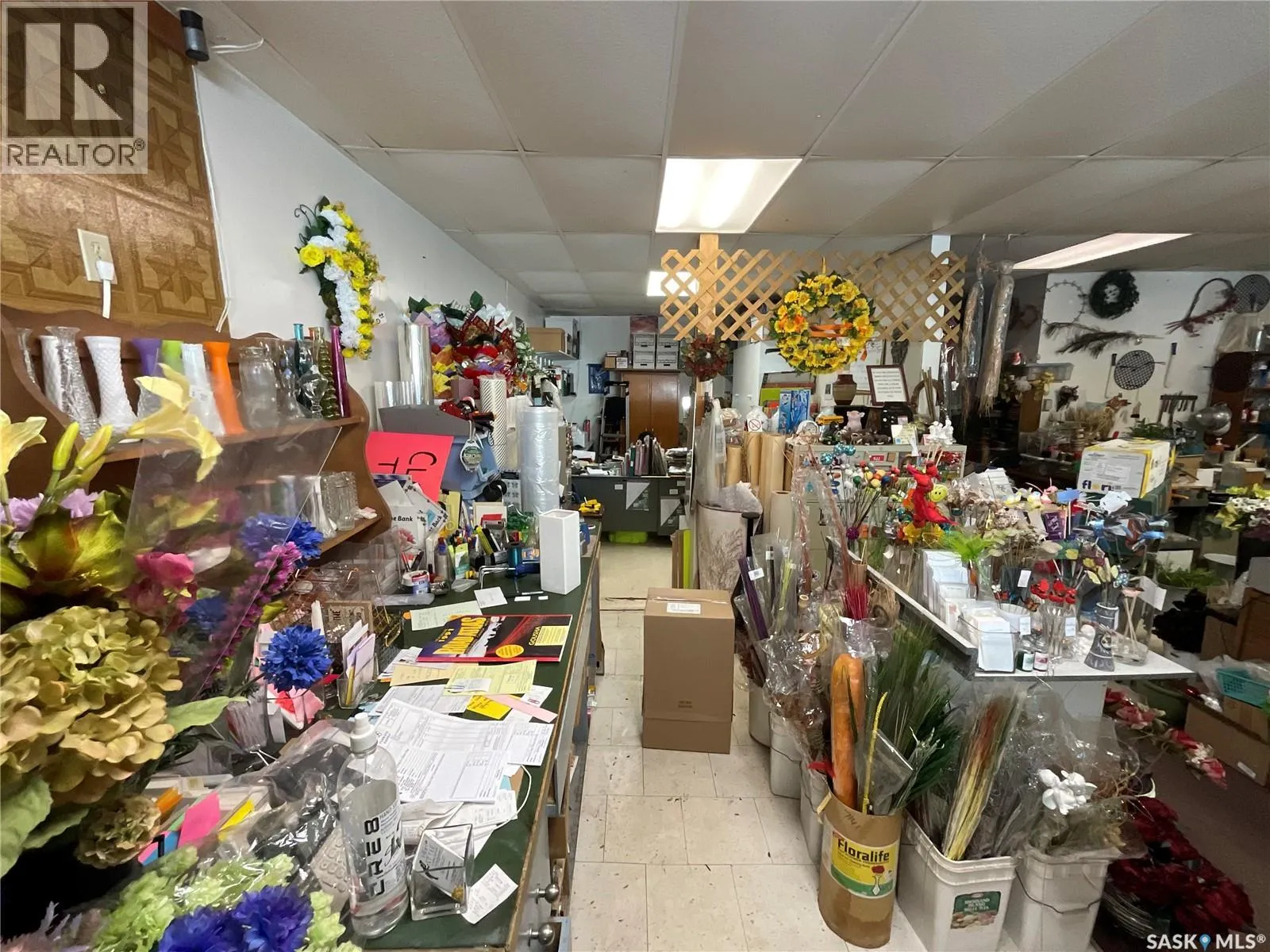 Welcome to a well established property on the corner of First Street and First Avenue. With over 2000 square feet of building there is plenty of room to start your business and space south of the building for expansion! Built on slab, this property has everything on the main floor including a office space, 2 piece bathroom, lots of storage, a large man door on the back side of the building for easy deliveries, and the mechanical/electrical room. Tin roof. Lots of space behind the building for parking but customers usually park on the street. This property is currently listed as building and lot only but can be sold as a flower shop business and the price would be reflected on the previous 3 years sales and current inventory. For more information please contact your agent. (id:27476)