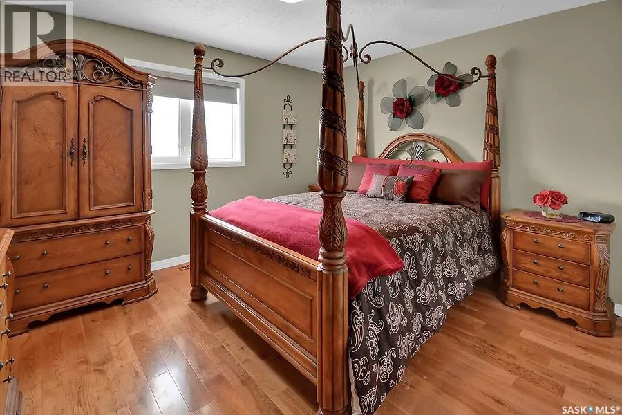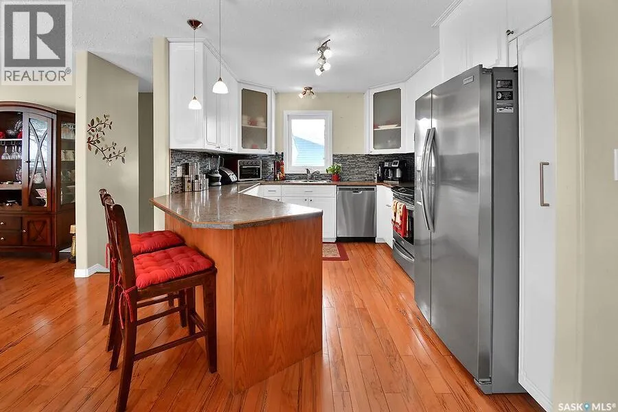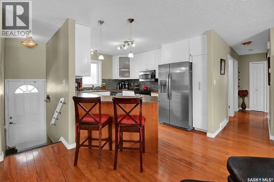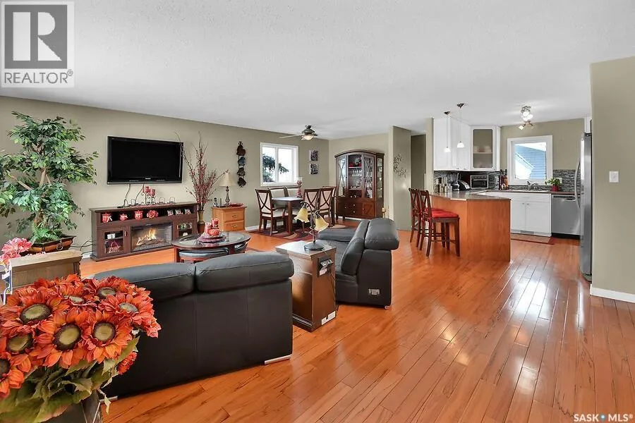This one is sure to impress! Step inside to a warm and inviting front entrance featuring in-floor heat. The open-concept layout is highlighted by beautiful hardwood floors and a spacious living area, perfect for both entertaining and family time. The large primary bedroom features a private ensuite, creating a relaxing retreat at the end of the day. The main floor offers the ease of laundry and direct access to the garage, making everyday living a breeze. Downstairs, youâll find a generous family room complete with a cozy gas fireplace, along with two additional bedroomsâideal for growing families or guests. The 3pc bathroom features heated floor and walk in shower. The basement has been thoughtfully planned with plumbing for a sink or convert the basement to a suite. Outside, enjoy not one but two 12x16 decks, offering plenty of space for outdoor living and entertaining. The impressive 26x26 heated shop provides excellent workspace or storage options for vehicles or toys year-round. Situated close to all amenities, this excellent family home truly has it allâspace, comfort, and functionality in a fantastic location. Just minutes to Wakaw Lake, 50 minutes to Saskatoon and 45 minutes to Prince Albert. Call today to view (id:27476)
