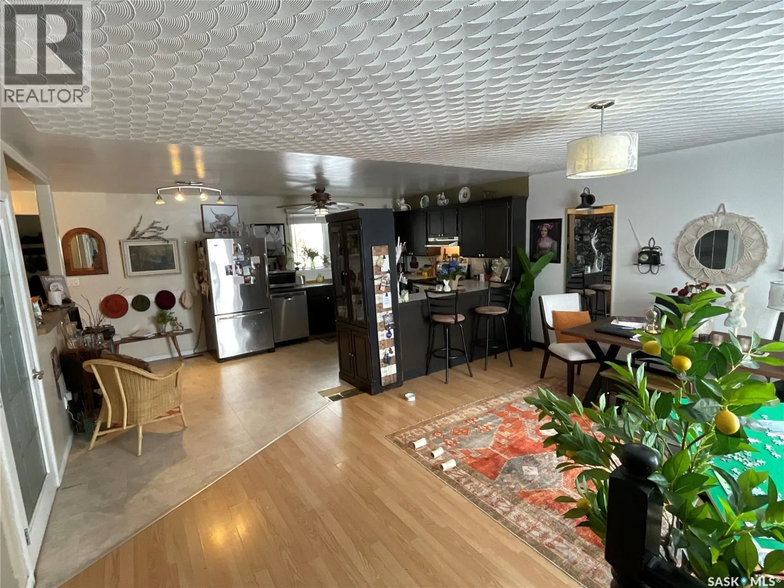 Welcome to the town of Wakaw! Here you will find an amazing 1600 square foot bungalow. A massive sunken living room with a wood burning fireplace. The kitchen and dining provide an abundance of space for a large family or for anyone that loves to entertain. 3 bedrooms upstairs and in floor heat in the 4 piece bathroom. Downstairs you will see 2 bedrooms with another bathroom with a walk in tiled shower. A huge space for a recreation room or large family room. There is a 16 X 24 detached garage in the developed backyard. A nice covered deck with natural gas bar b q hookup! There is also a 2 space front driveway. Call you agent today to view this fantastic property. (id:27476)