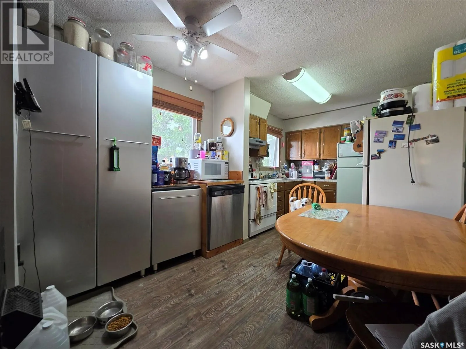 Welcome to the community of Waldeck, the main floor of this great family home offers 3 bedrooms and a 4 piece bath, an eat-in kitchen with newer vinal plank flooring and extra storage, and inviting living room with a wood stove. Check out the basement where you will find a rec room, the large 4th bedroom and 3 piece bath and the laundry/utility area! Head out to the yard to the 18' X 28' mechanics dream shop with a pit. There is a fire pit, greenhouse, garden area, wood shed and a storage shed along with back alley access to more parking. Waldeck offers the small community feel with a K-8 school, and only a 10 min commute to the city of Swift Current. (id:27476)