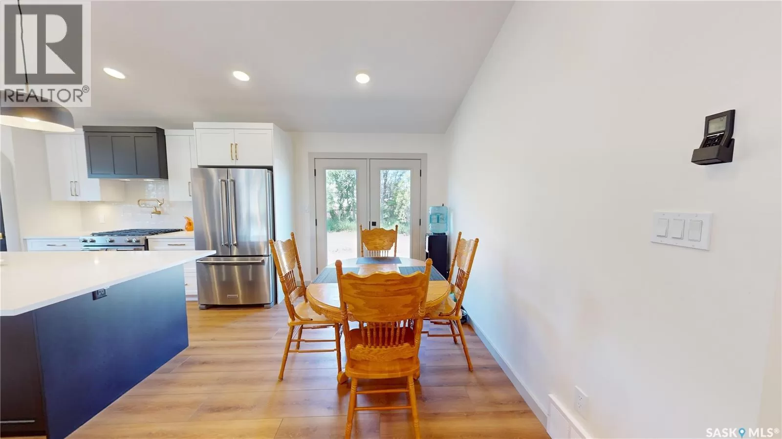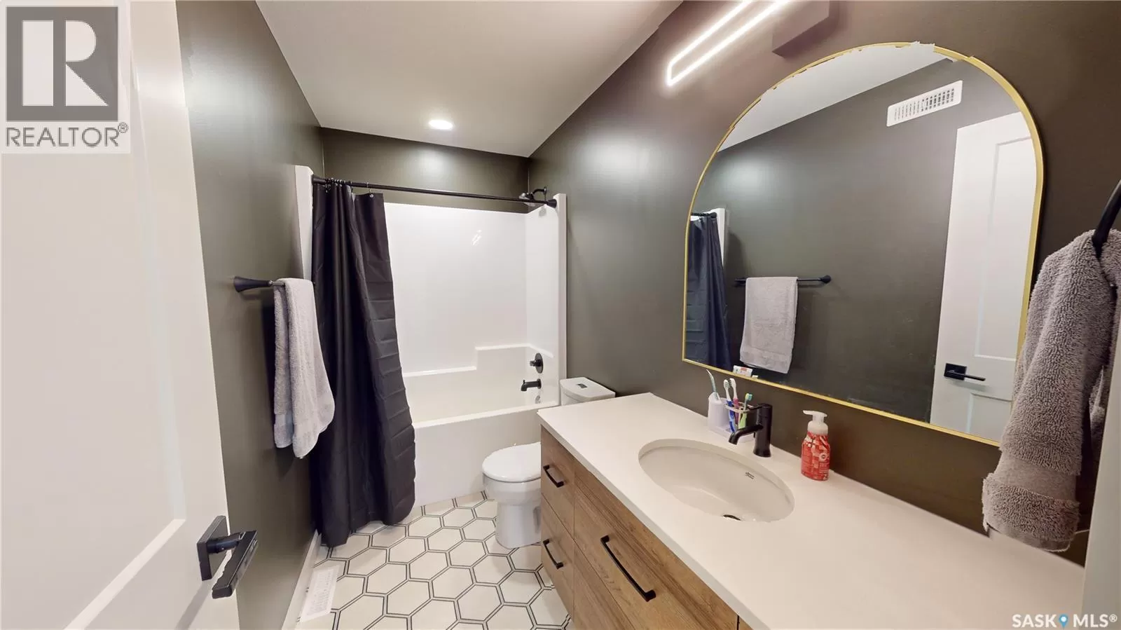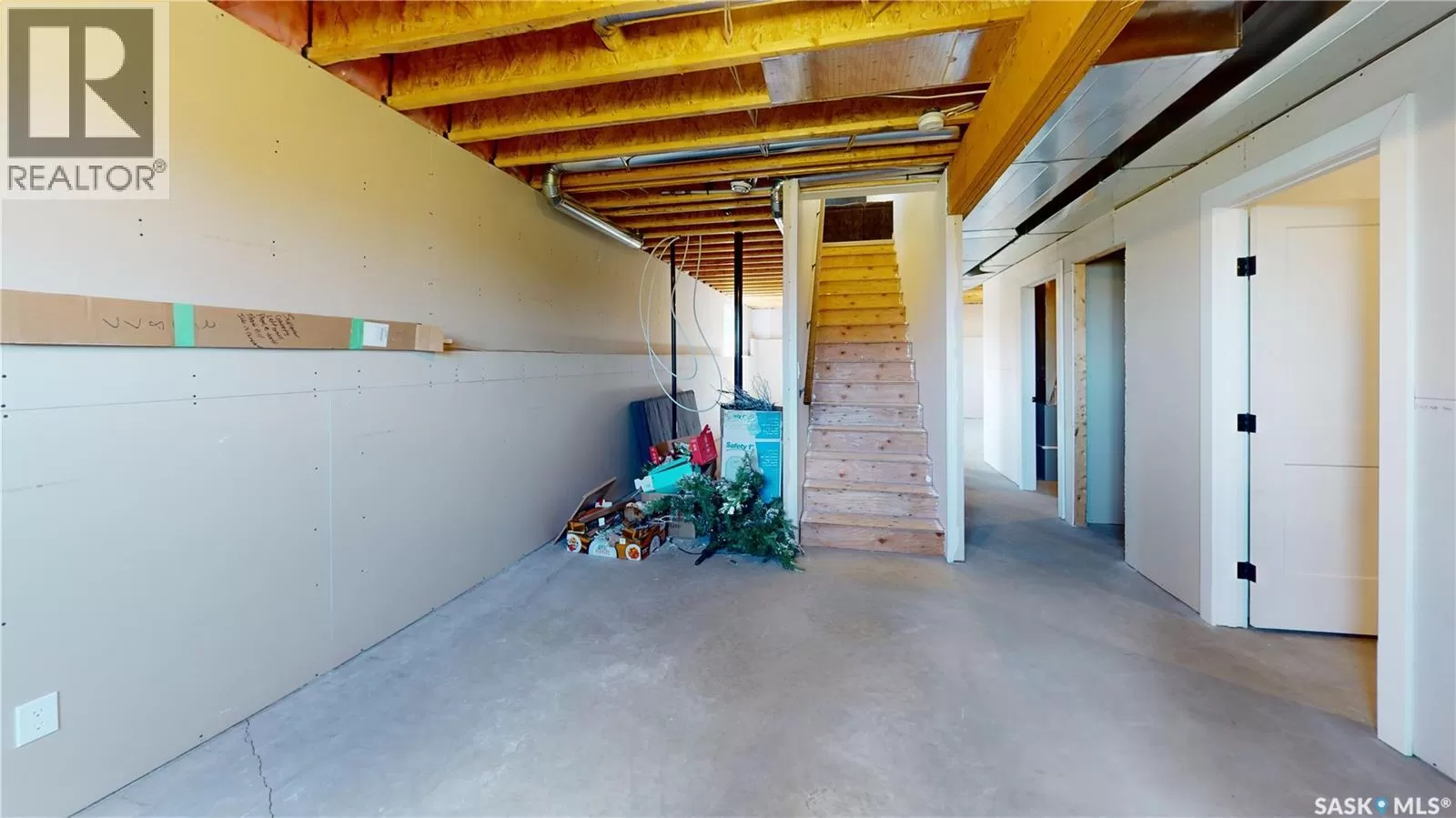 Welcome to a more relaxed and enjoyable lifestyle in the wonderful and safe Town of Waldheim where this stunning raised bungalow on a 60'x140' lot with an attached garage awaits you. 2 bedrooms on the main floor allow for a wonderfully spacious open concept in this 1,241 square foot home with a gorgeous two-tone kitchen. High-end finishes such as quartz countertops with an eating ledge, an attractive tile backsplash, a gas range, and a stylish pot-filler will make meal prep and entertaining a pleasure. Vaulted ceilings float above the kitchen and living room where a warm gas fireplace will keep you warm. The primary bedroom has a beautiful 3pc ensuite with a large tiled shower and an oversized walk-in closet and laundry service. There's a head start on the basement development where a 3rd bedroom is almost complete and the outside walls are boarded. Large windows, and rough-ins for a 3rd bathroom and a 2nd laundry service provide loads of potential in the lower level. A huge double garage has direct entry to the home and high ceilings for additional storage options. Other extras include a corner kitchen pantry with custom round-top door, central air conditioning, front and back top-soil, a Heat Recovery Ventilation system for premium air quality, double garden doors to the future deck, and more. Call now for your own private viewing! (id:27476)